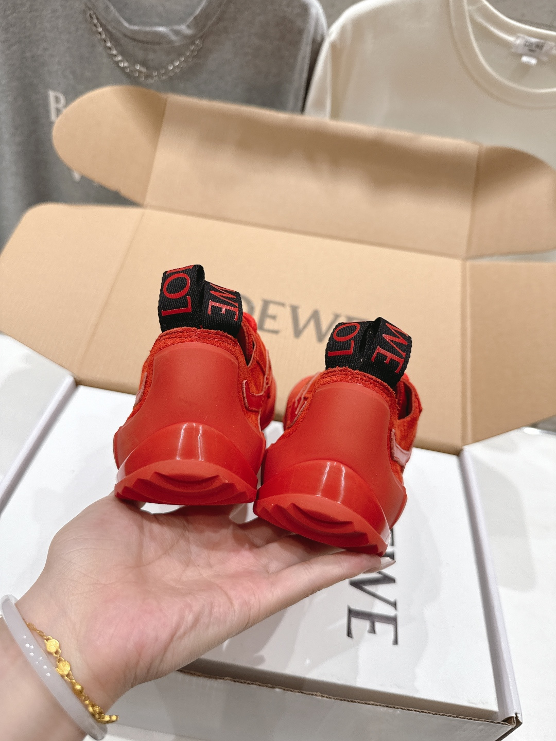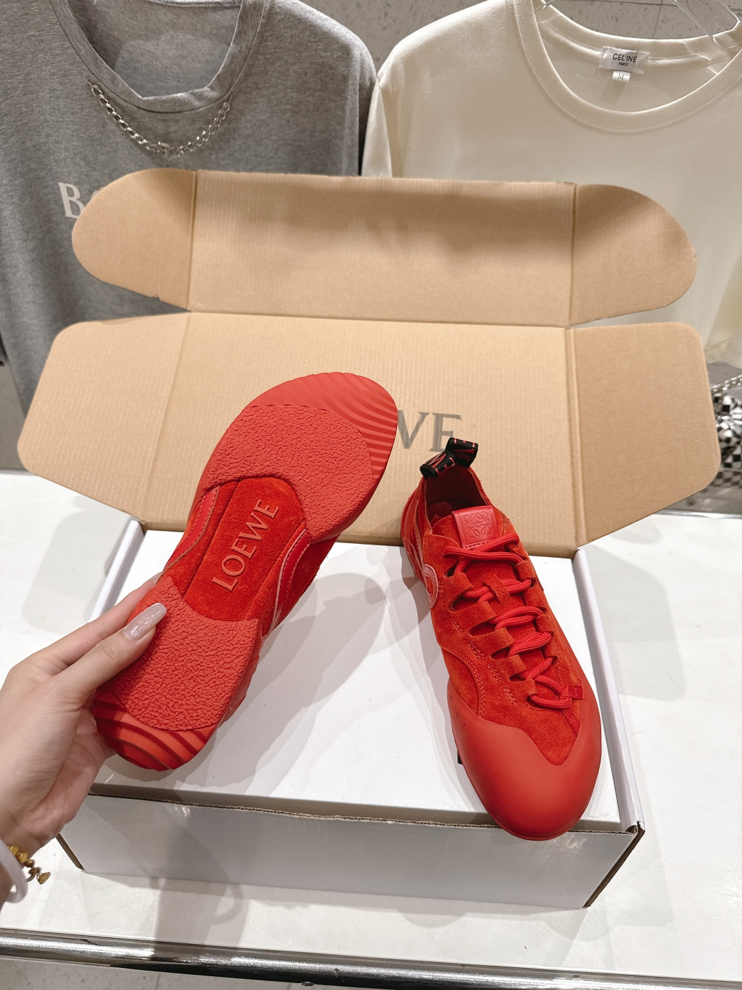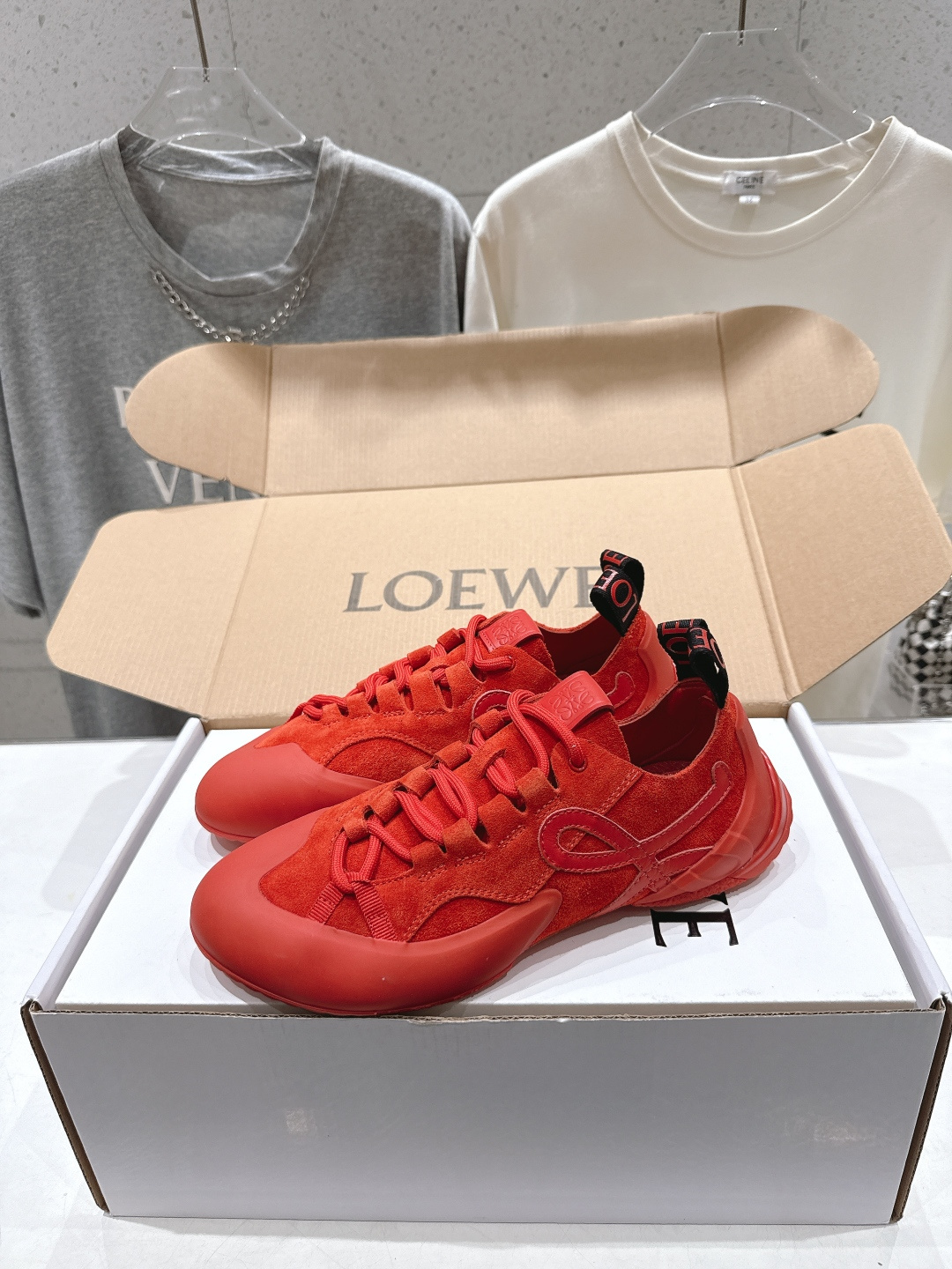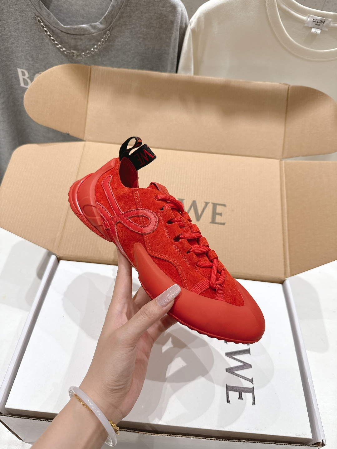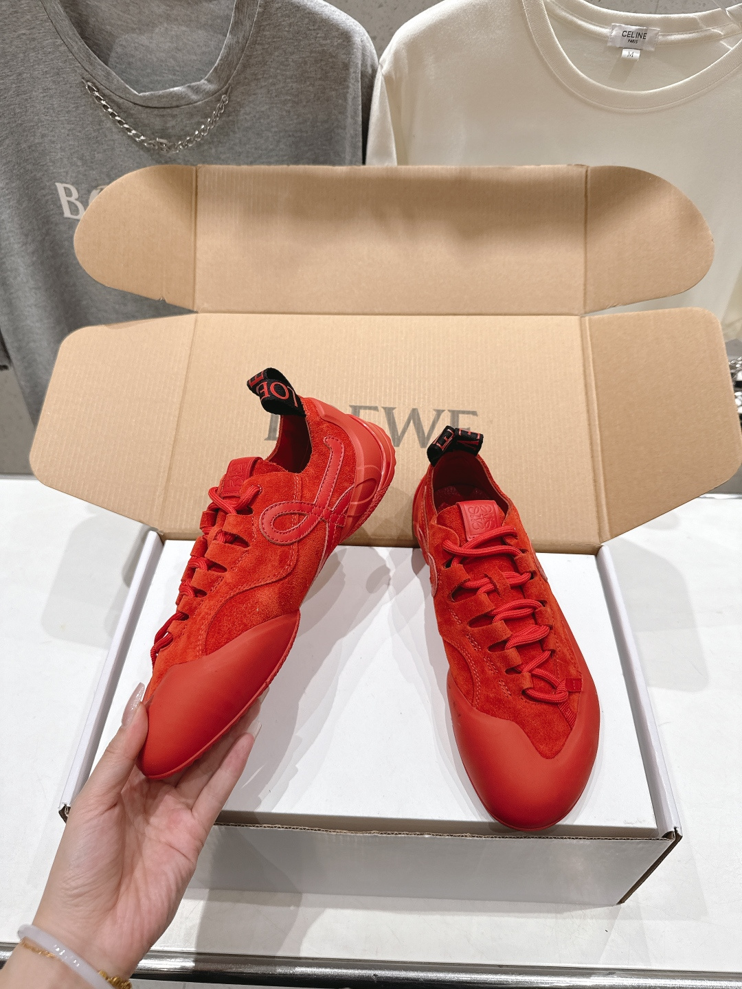 這款鞋子是AAAAA 1:1 質量(非常棒). 使用了和原版一模一樣的材料. 商標部分也保持了和Loewe一樣. 圖片拍攝是實物鞋子拍攝, 您所收到的實物保證和我們圖片一模一樣.