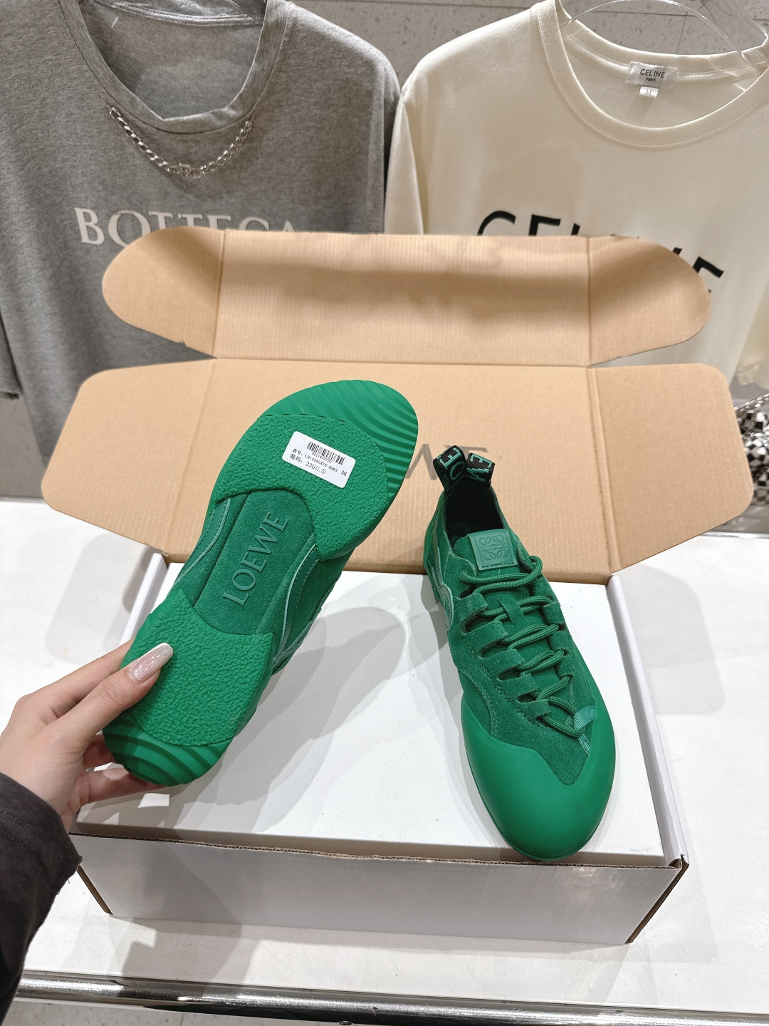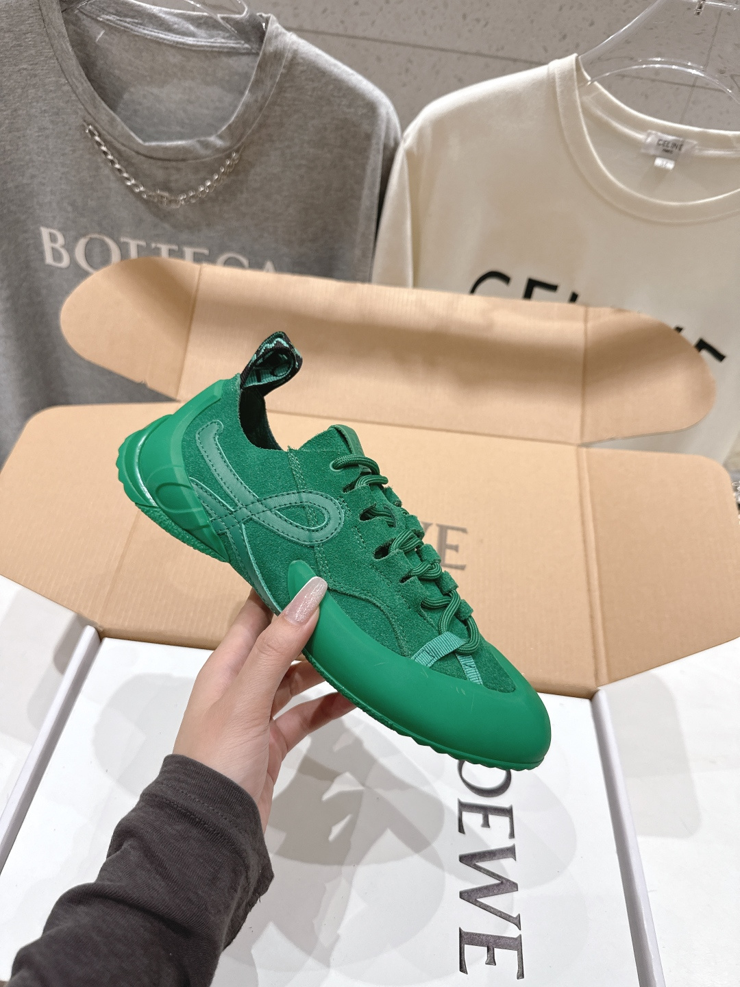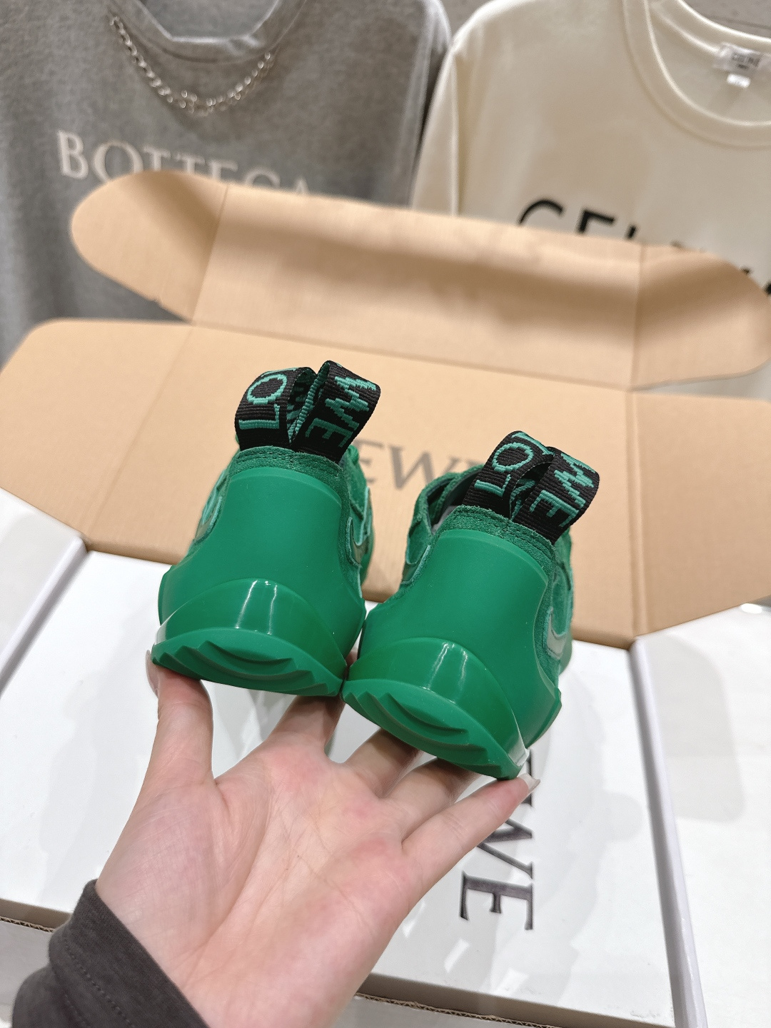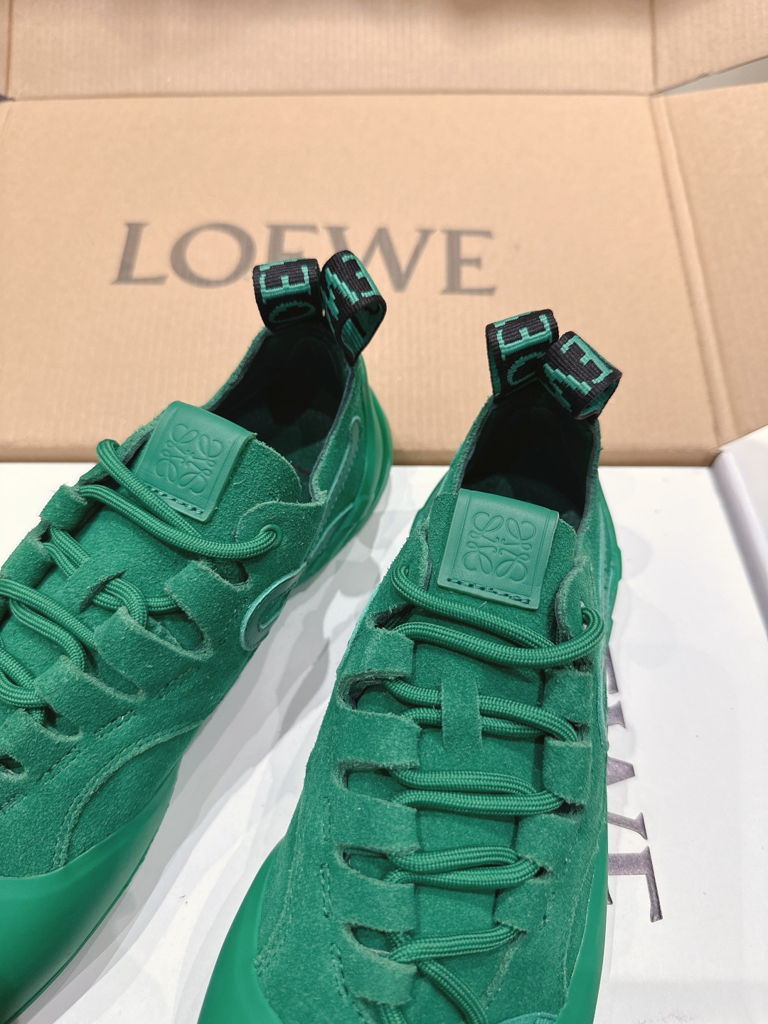 這款鞋子是AAAAA 1:1 質量(非常棒). 使用了和原版一模一樣的材料. 商標部分也保持了和Loewe一樣. 圖片拍攝是實物鞋子拍攝, 您所收到的實物保證和我們圖片一模一樣.