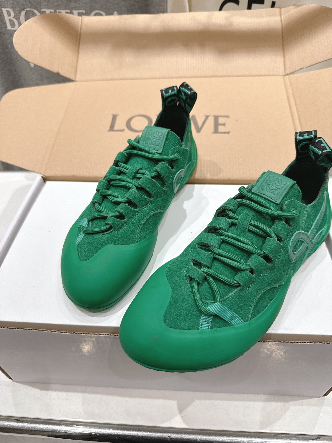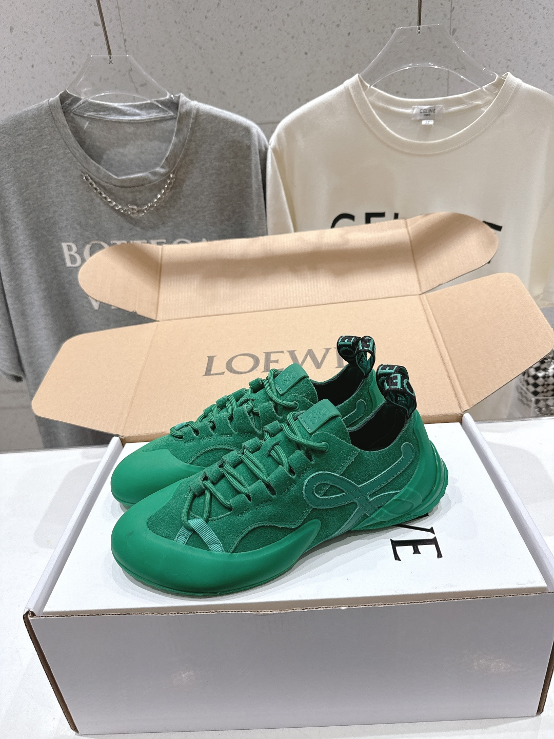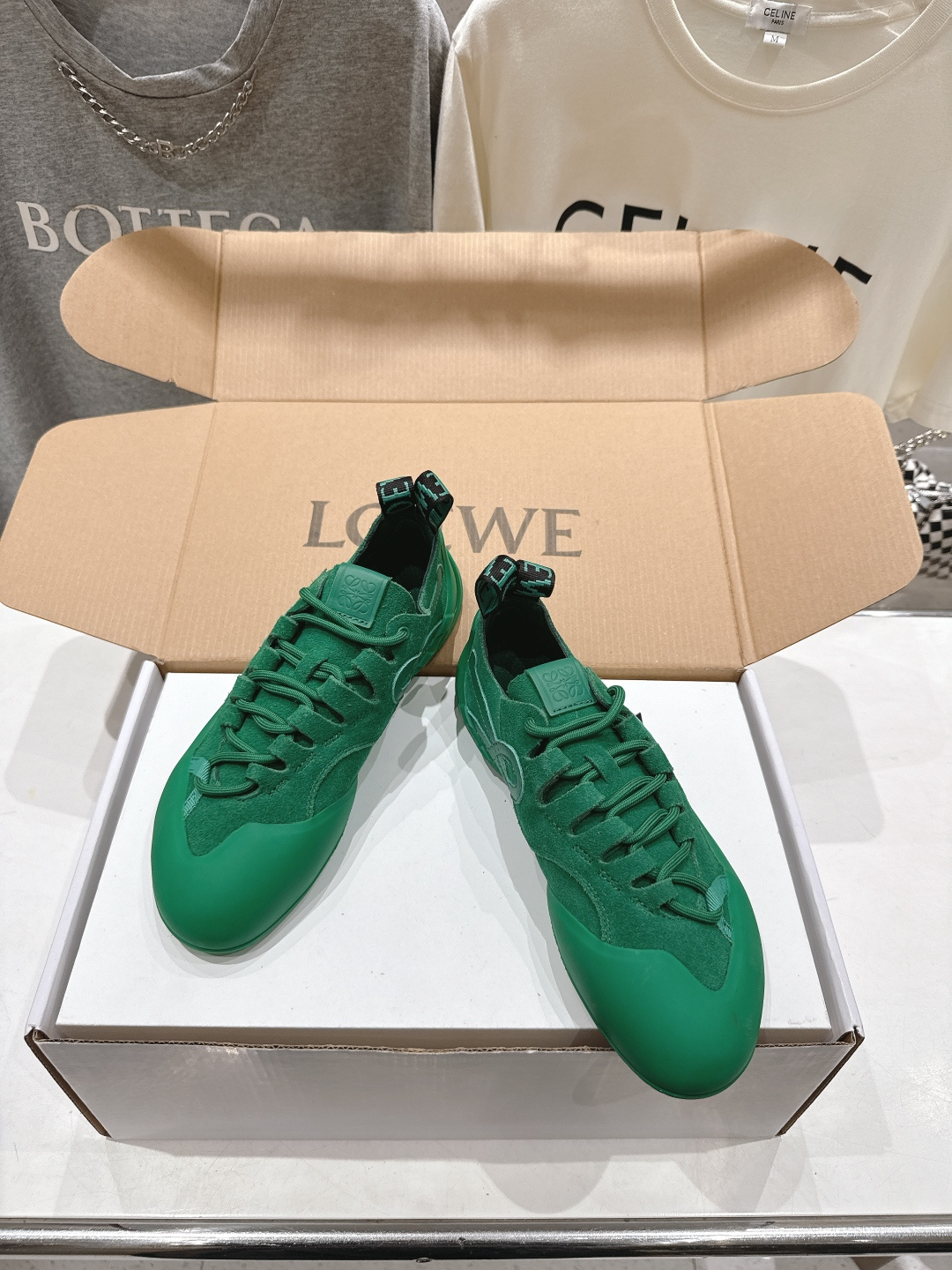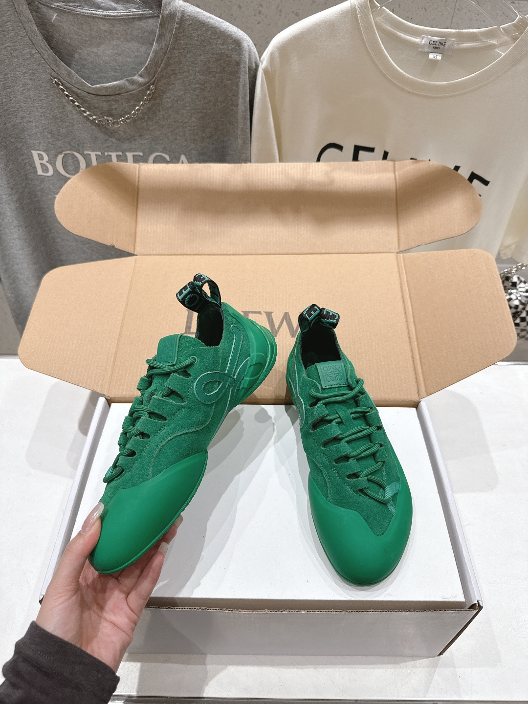 這款鞋子是AAAAA 1:1 質量(非常棒). 使用了和原版一模一樣的材料. 商標部分也保持了和Loewe一樣. 圖片拍攝是實物鞋子拍攝, 您所收到的實物保證和我們圖片一模一樣.