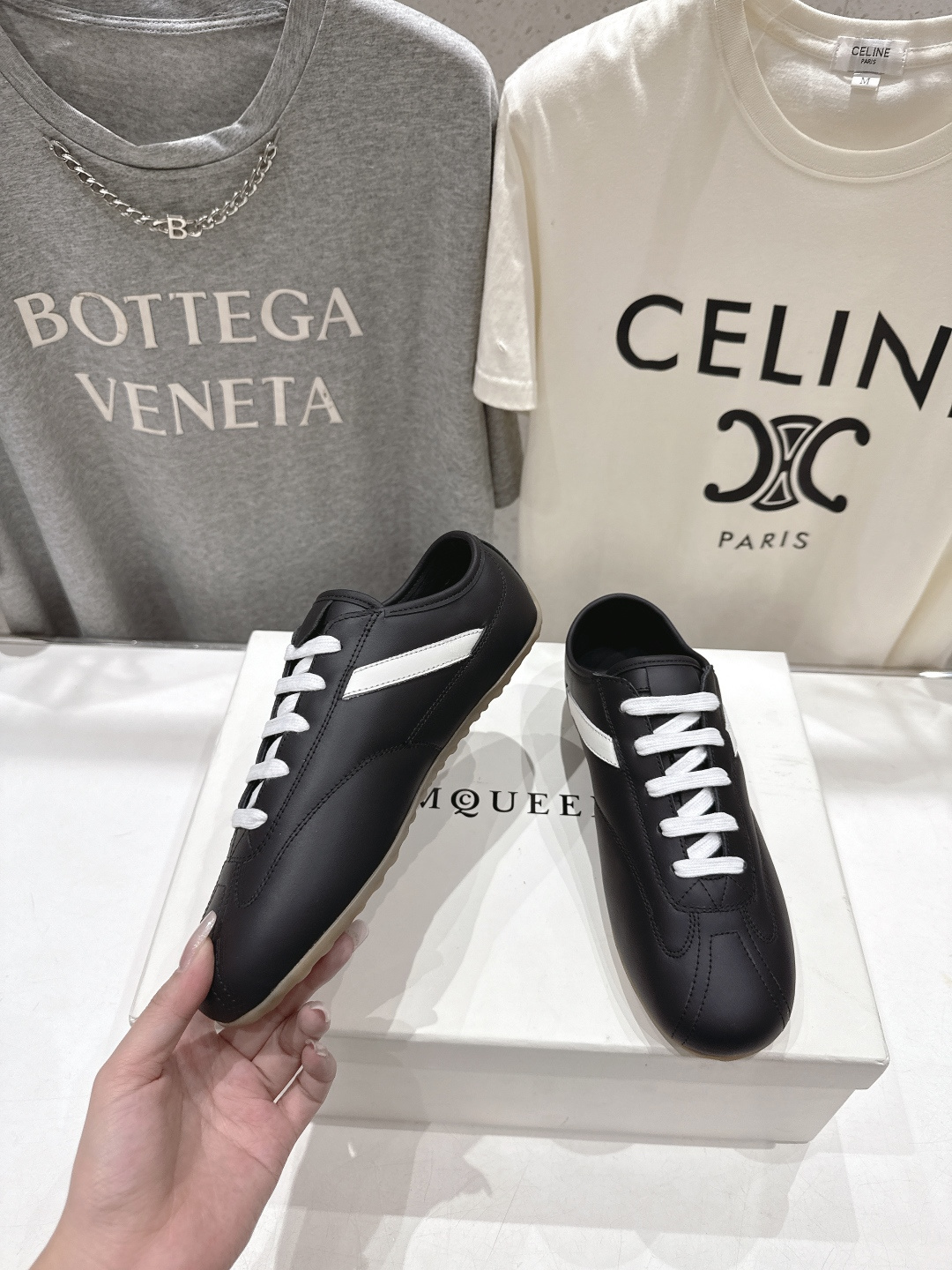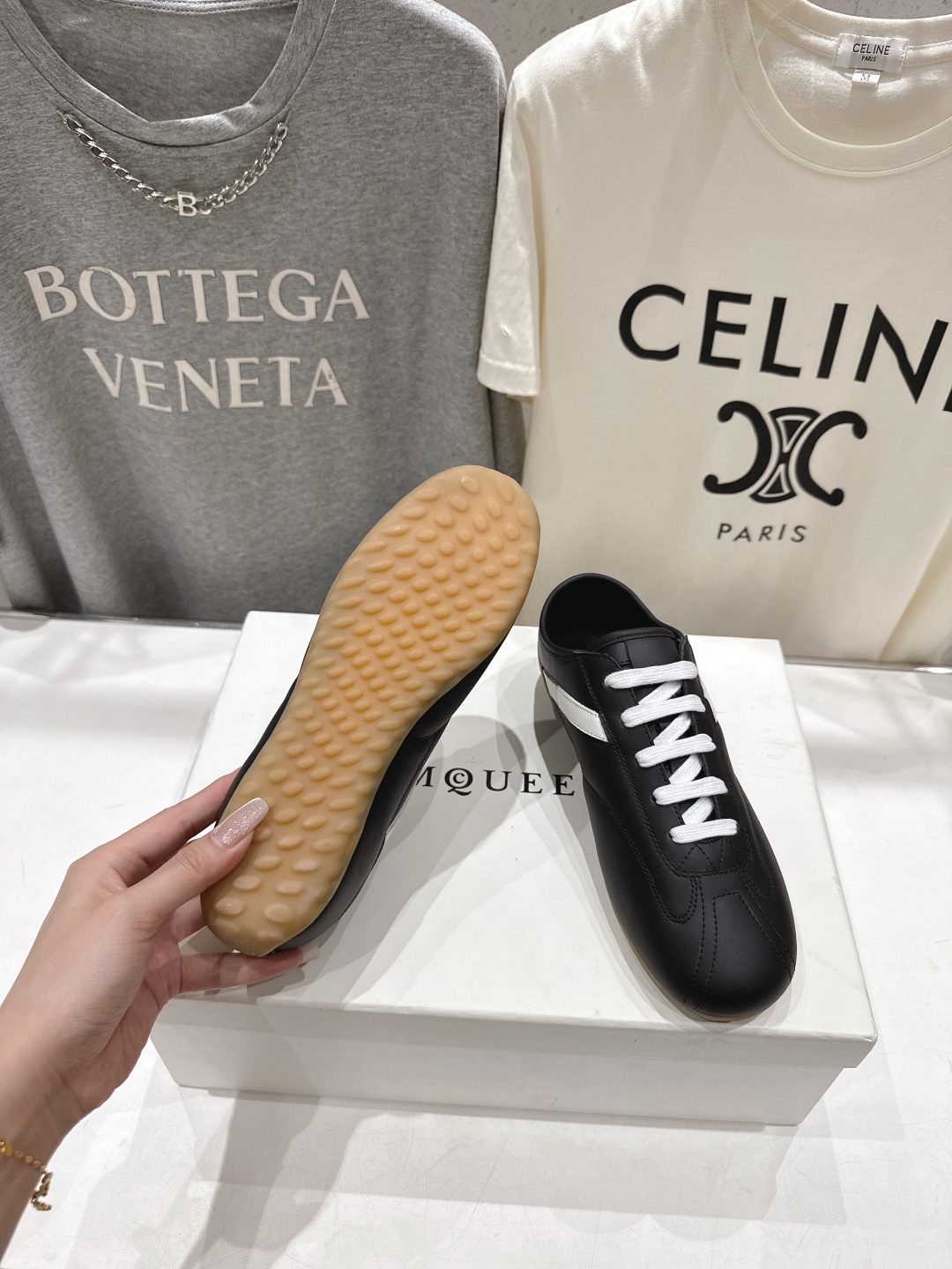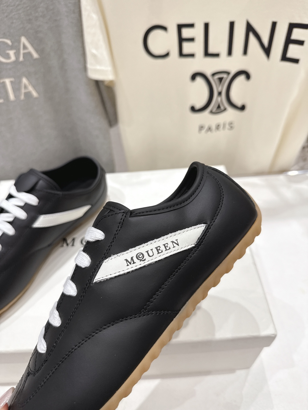 這款鞋子是AAAAA 1:1 質量(非常棒). 使用了和原版一模一樣的材料. 商標部分也保持了和麥奎恩/McQueen一樣. 圖片拍攝是實物鞋子拍攝, 您所收到的實物保證和我們圖片一模一樣.