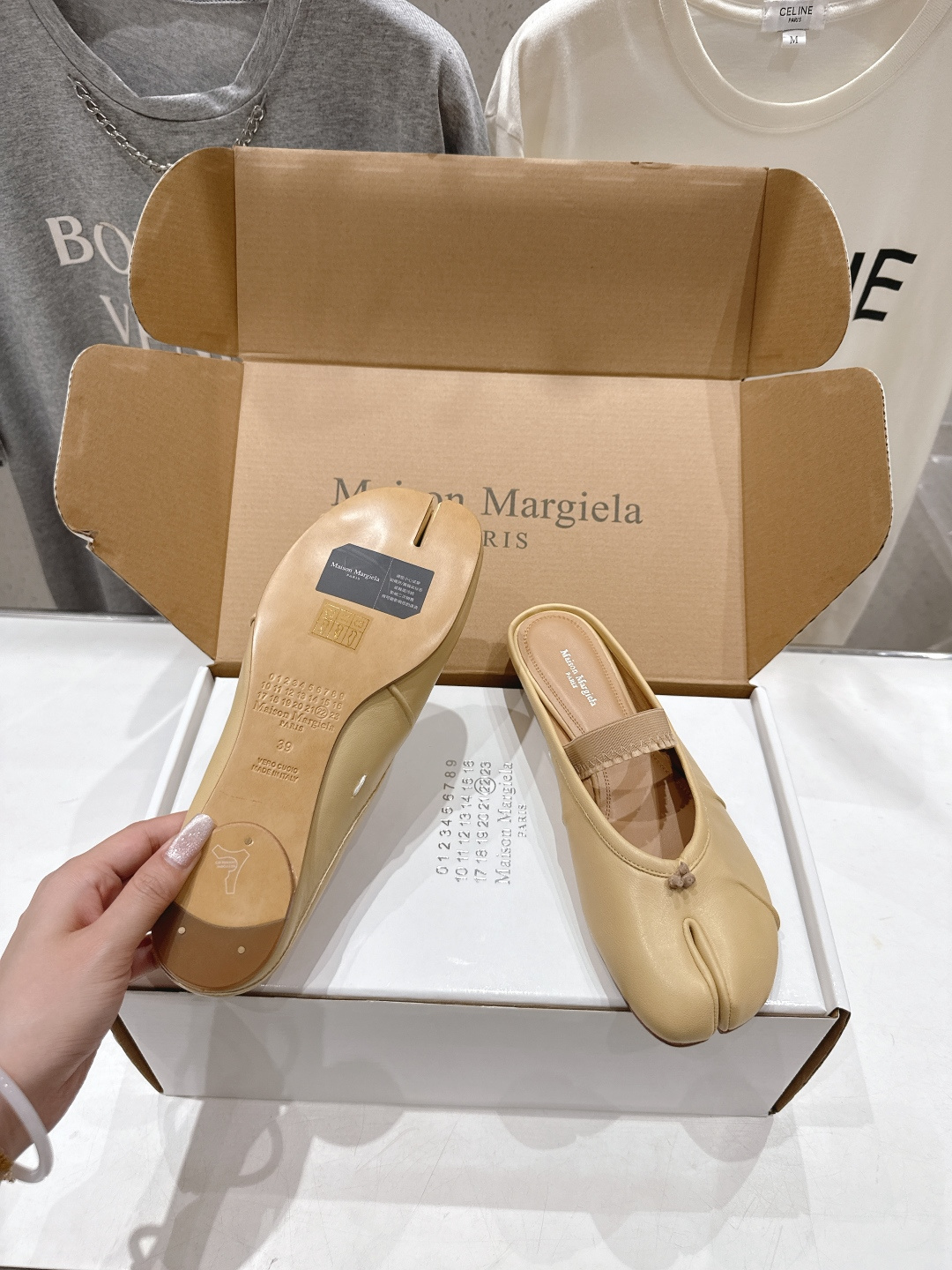 這款鞋子是AAAAA 1:1 質量(非常棒). 使用了和原版一模一樣的材料. 商標部分也保持了和Maison Margiela一樣. 圖片拍攝是實物鞋子拍攝, 您所收到的實物保證和我們圖片一模一樣.