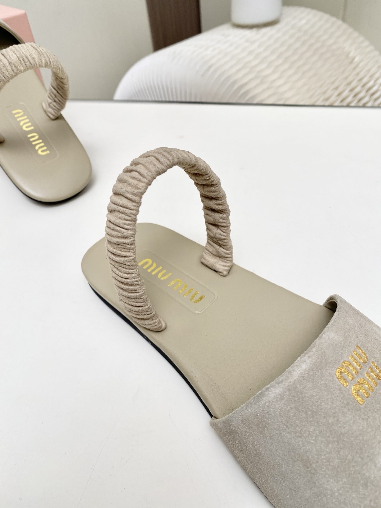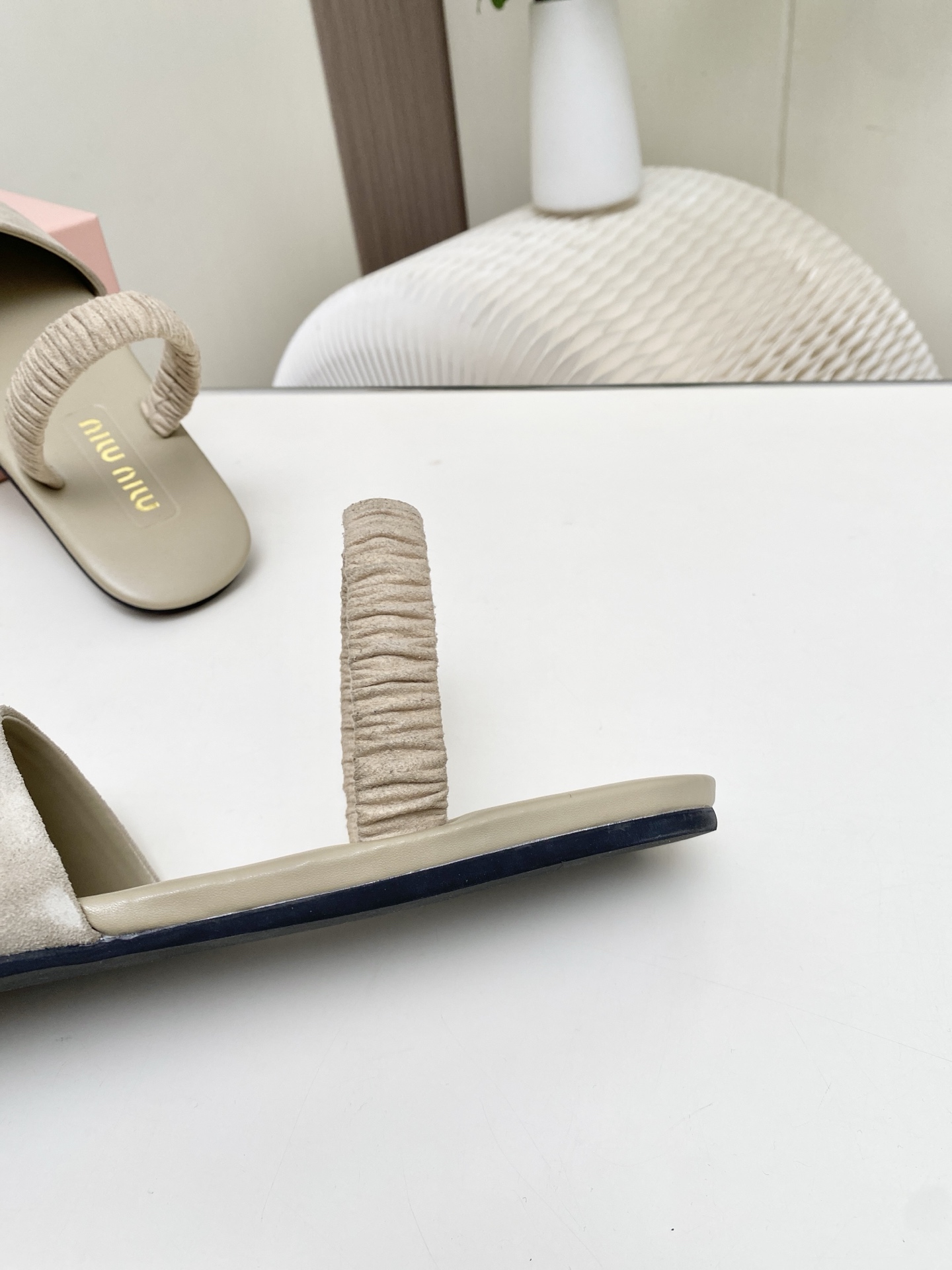這款鞋子是AAAAA 1:1 質量(非常棒). 使用了和原版一模一樣的材料. 商標部分也保持了和繆繆/Miu Miu一樣. 圖片拍攝是實物鞋子拍攝, 您所收到的實物保證和我們圖片一模一樣.