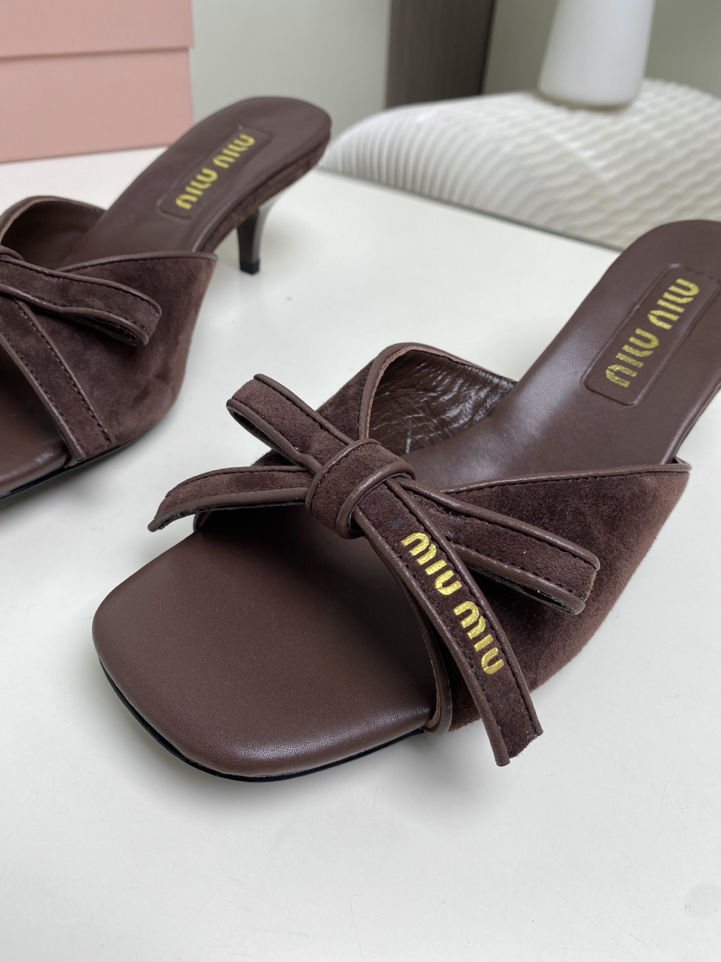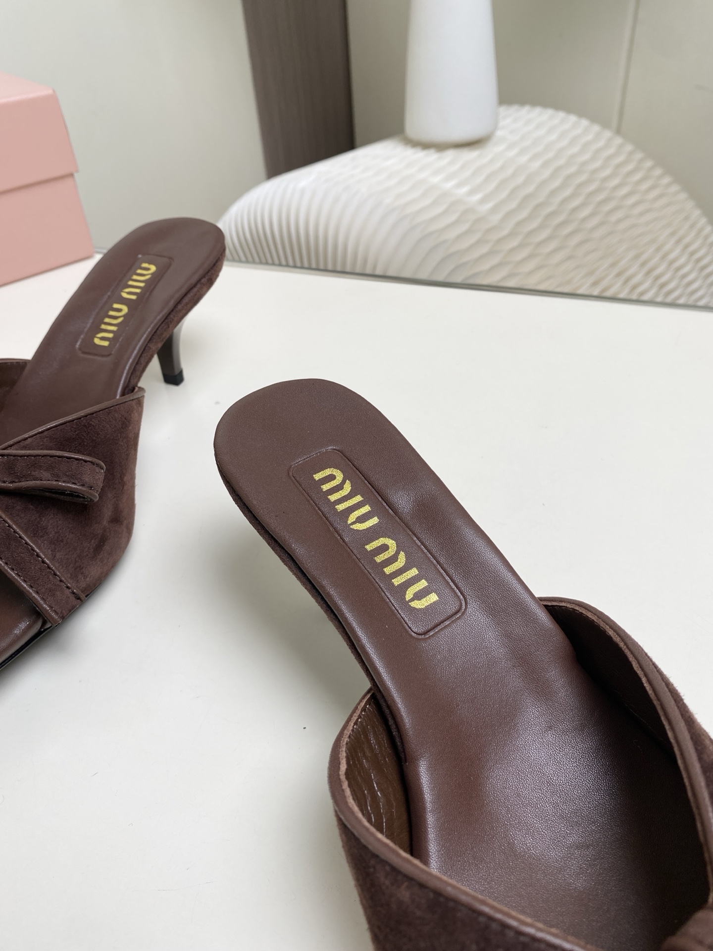 這款鞋子是AAAAA 1:1 質量(非常棒). 使用了和原版一模一樣的材料. 商標部分也保持了和繆繆/Miu Miu一樣. 圖片拍攝是實物鞋子拍攝, 您所收到的實物保證和我們圖片一模一樣.