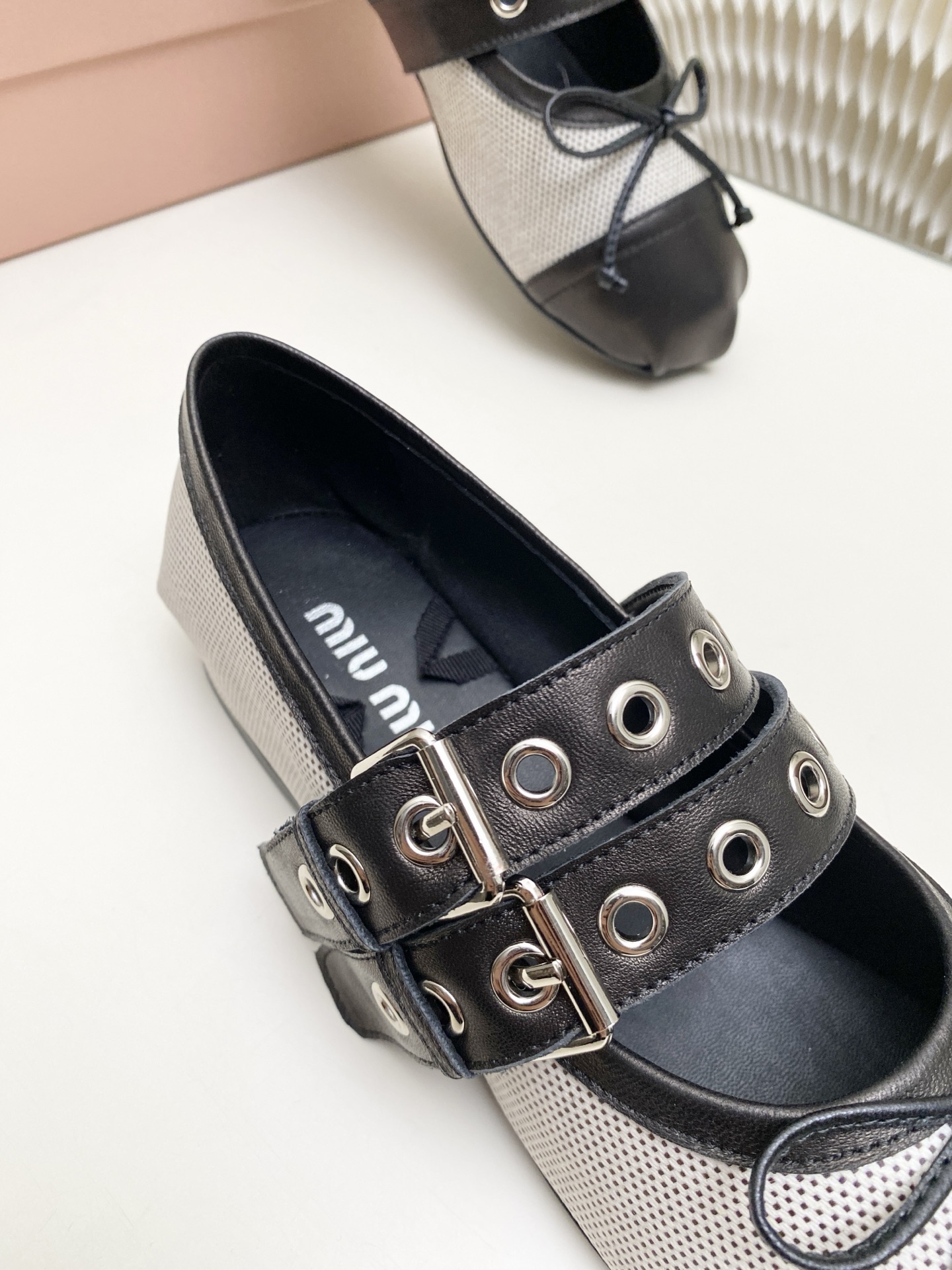 這款鞋子是AAAAA 1:1 質量(非常棒). 使用了和原版一模一樣的材料. 商標部分也保持了和繆繆/Miu Miu一樣. 圖片拍攝是實物鞋子拍攝, 您所收到的實物保證和我們圖片一模一樣.