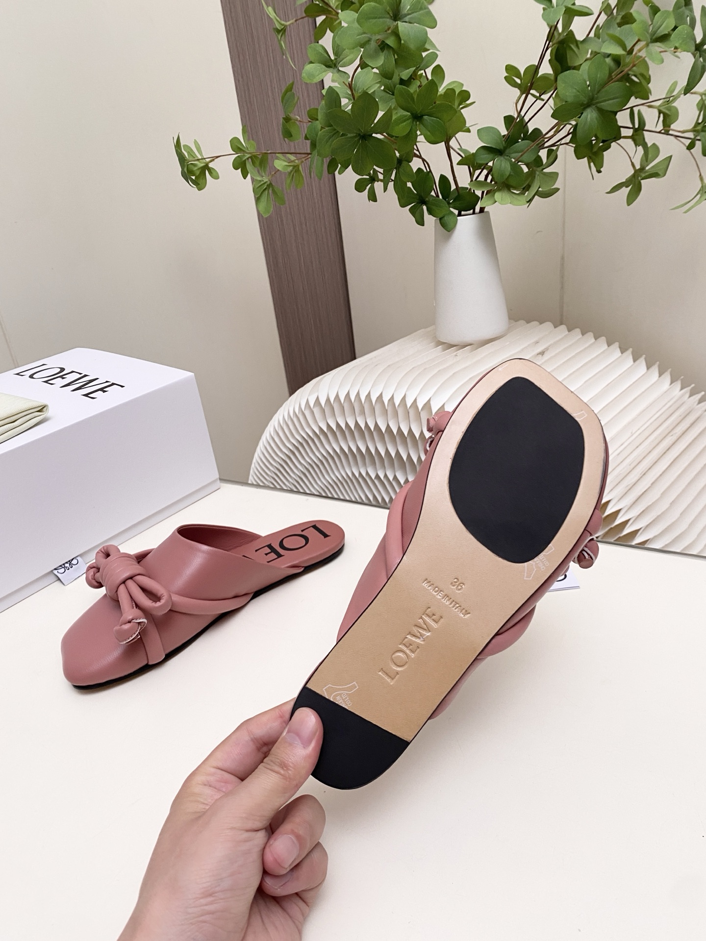 這款鞋子是AAAAA 1:1 質量(非常棒). 使用了和原版一模一樣的材料. 商標部分也保持了和Loewe一樣. 圖片拍攝是實物鞋子拍攝, 您所收到的實物保證和我們圖片一模一樣.