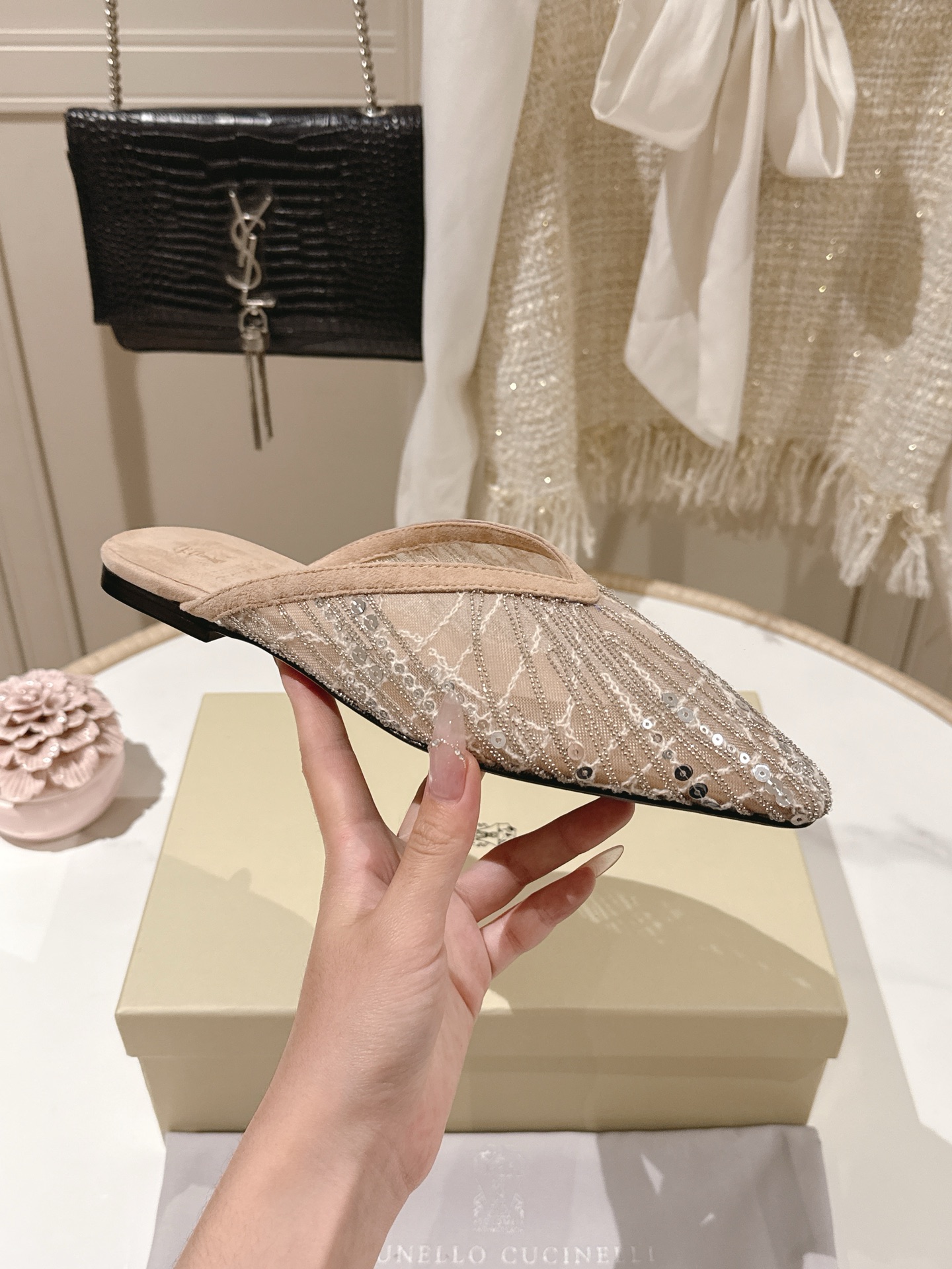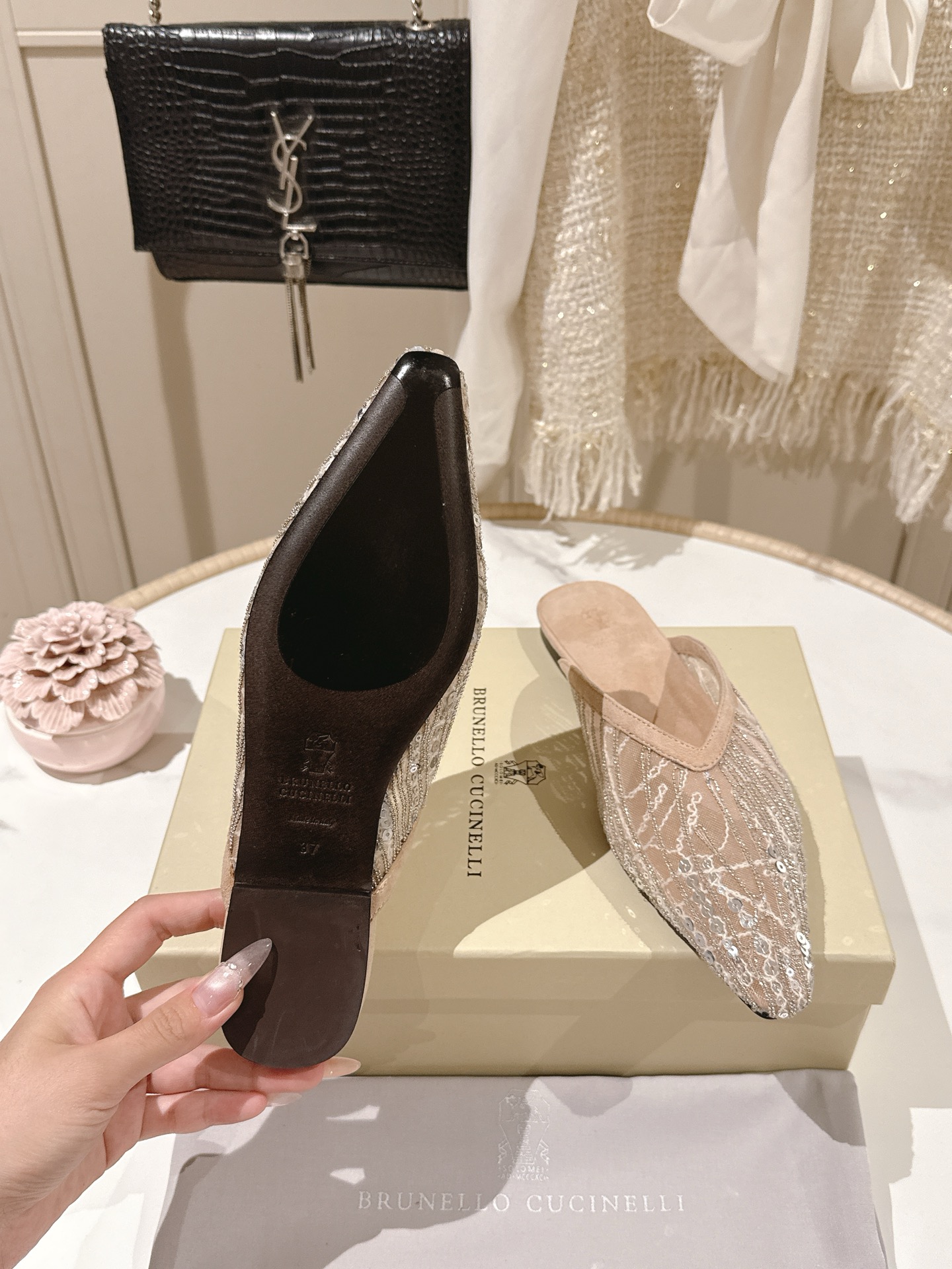 這款鞋子是AAAAA 1:1 質量(非常棒). 使用了和原版一模一樣的材料. 商標部分也保持了和Brunello Cucinelli一樣. 圖片拍攝是實物鞋子拍攝, 您所收到的實物保證和我們圖片一模一樣.