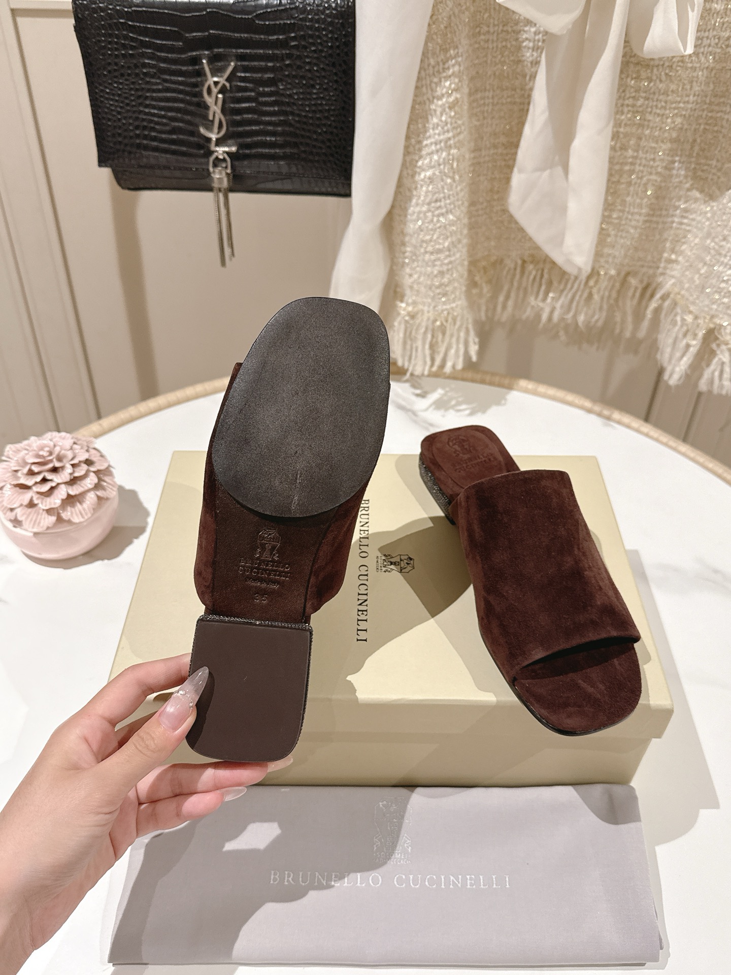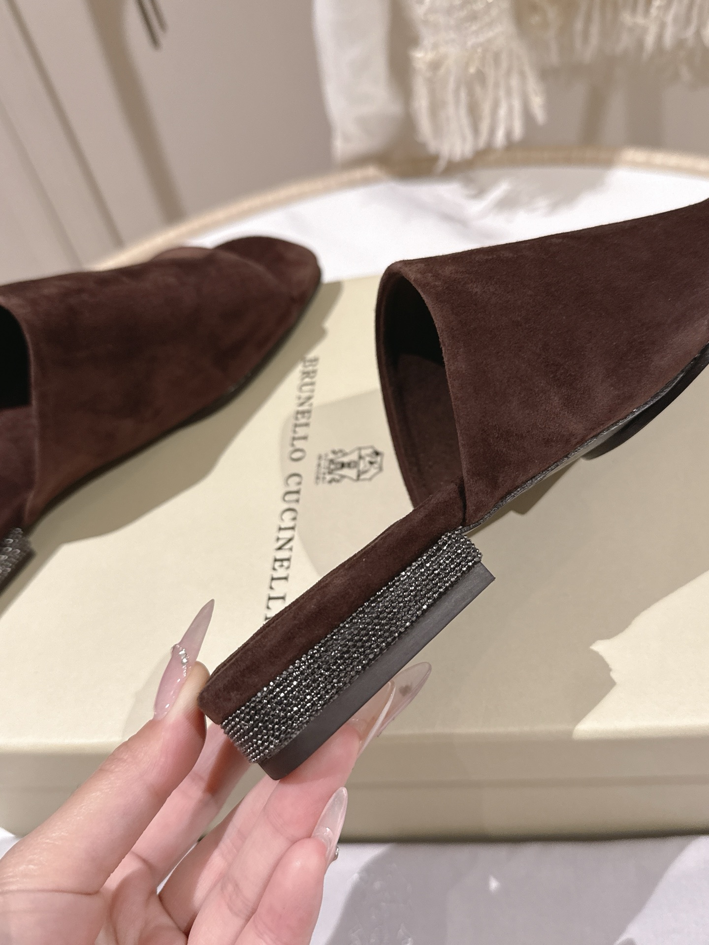 這款鞋子是AAAAA 1:1 質量(非常棒). 使用了和原版一模一樣的材料. 商標部分也保持了和Brunello Cucinelli一樣. 圖片拍攝是實物鞋子拍攝, 您所收到的實物保證和我們圖片一模一樣.