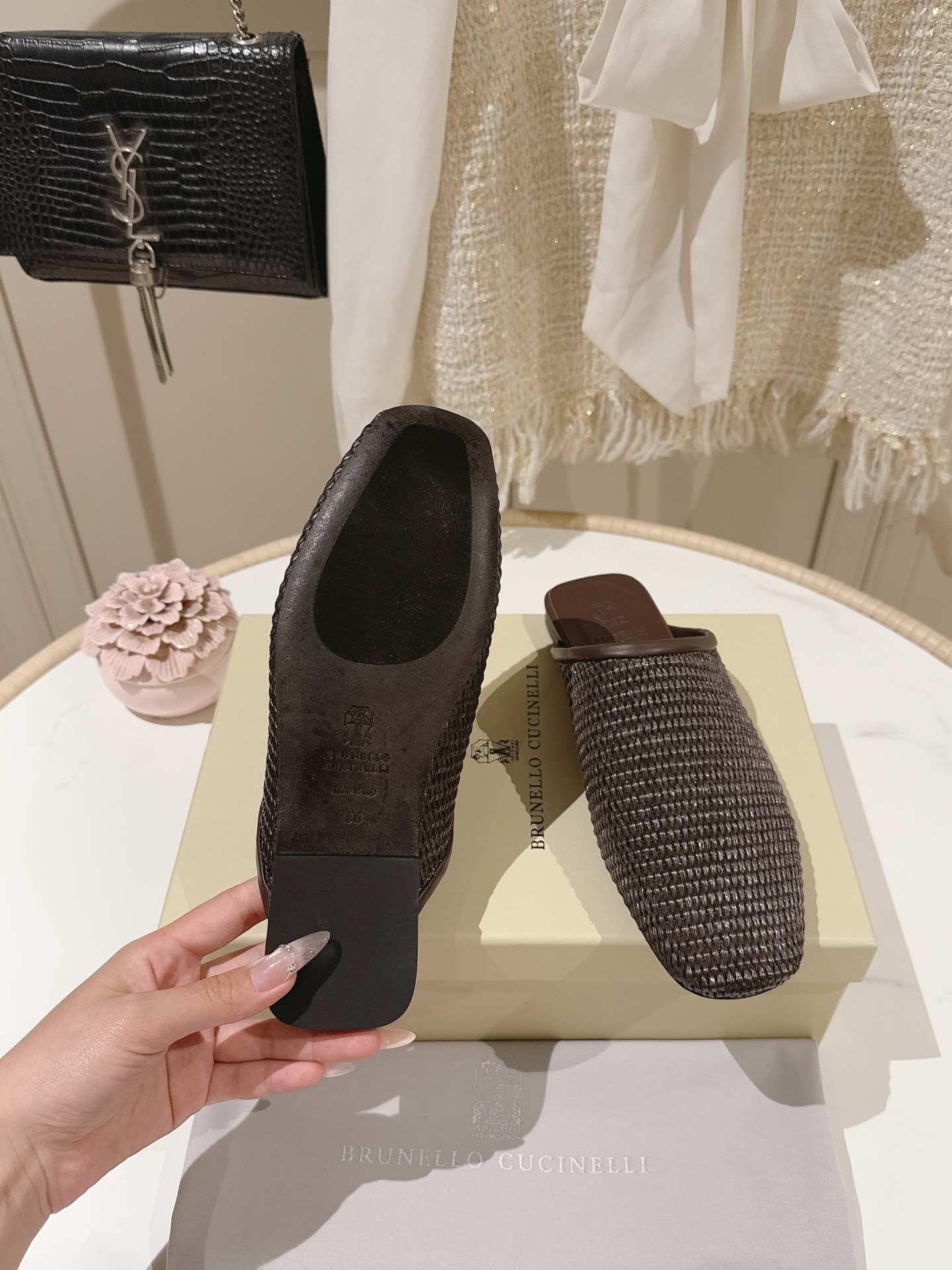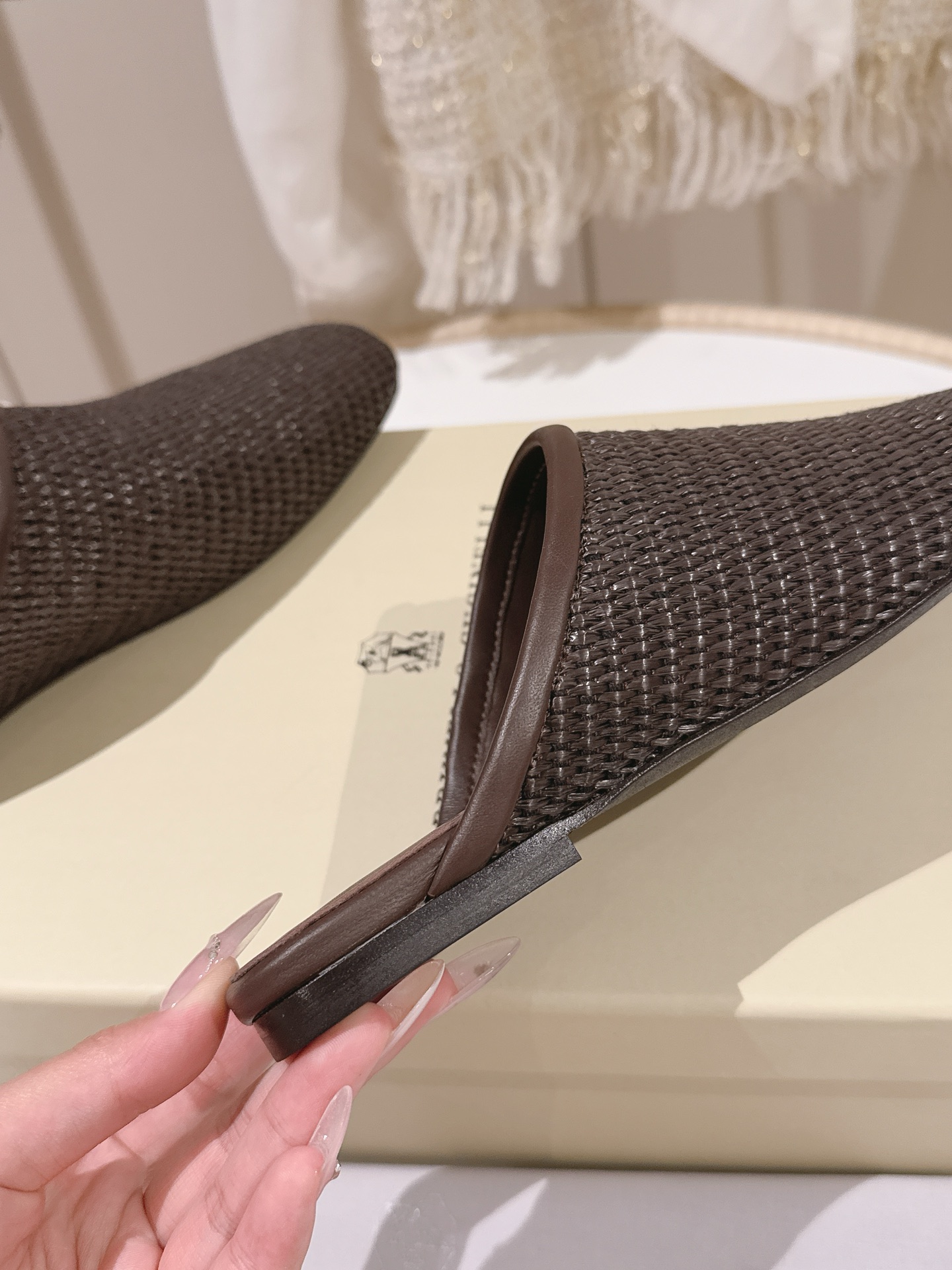 這款鞋子是AAAAA 1:1 質量(非常棒). 使用了和原版一模一樣的材料. 商標部分也保持了和Brunello Cucinelli一樣. 圖片拍攝是實物鞋子拍攝, 您所收到的實物保證和我們圖片一模一樣.