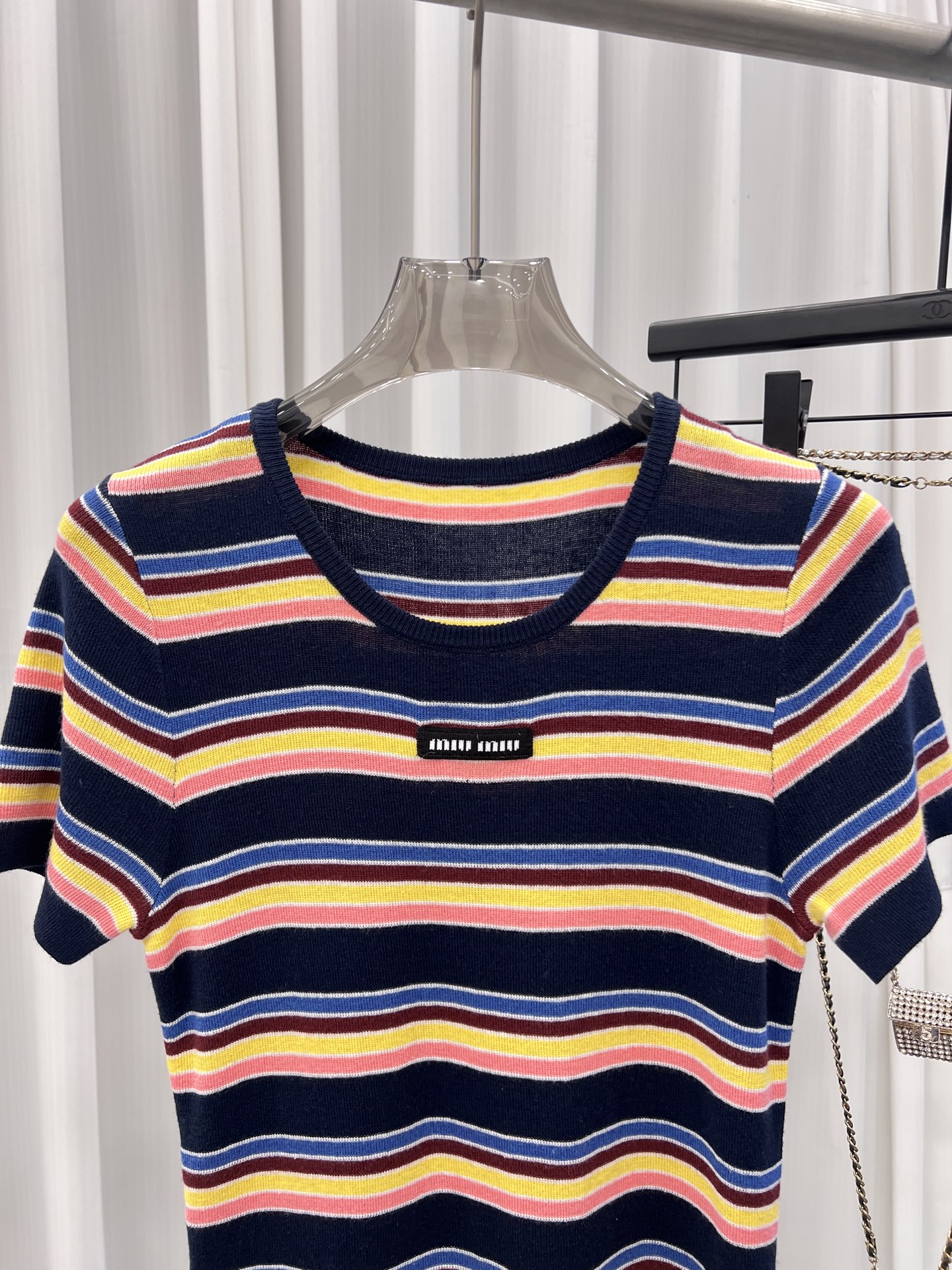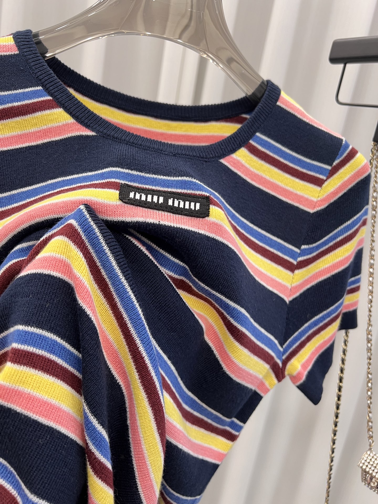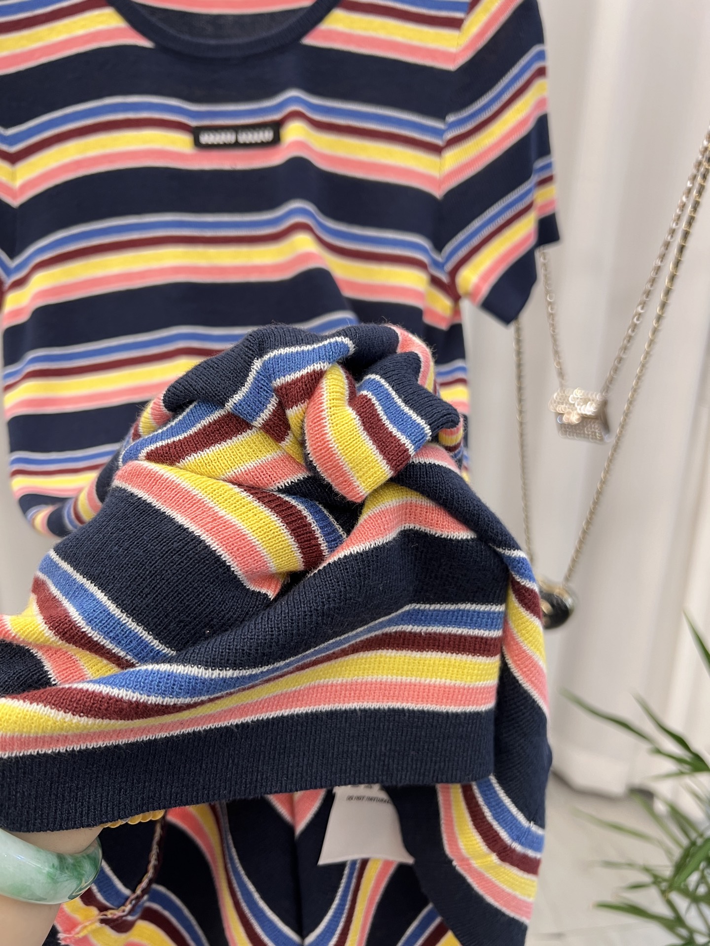 這款衣服是AAAAA 1:1 質量(非常棒). 使用了和原版一模一樣的材料. 商標部分也保持了和繆繆/Miu Miu一樣. 圖片拍攝是實物衣服拍攝, 您所收到的實物保證和我們圖片一模一樣.
