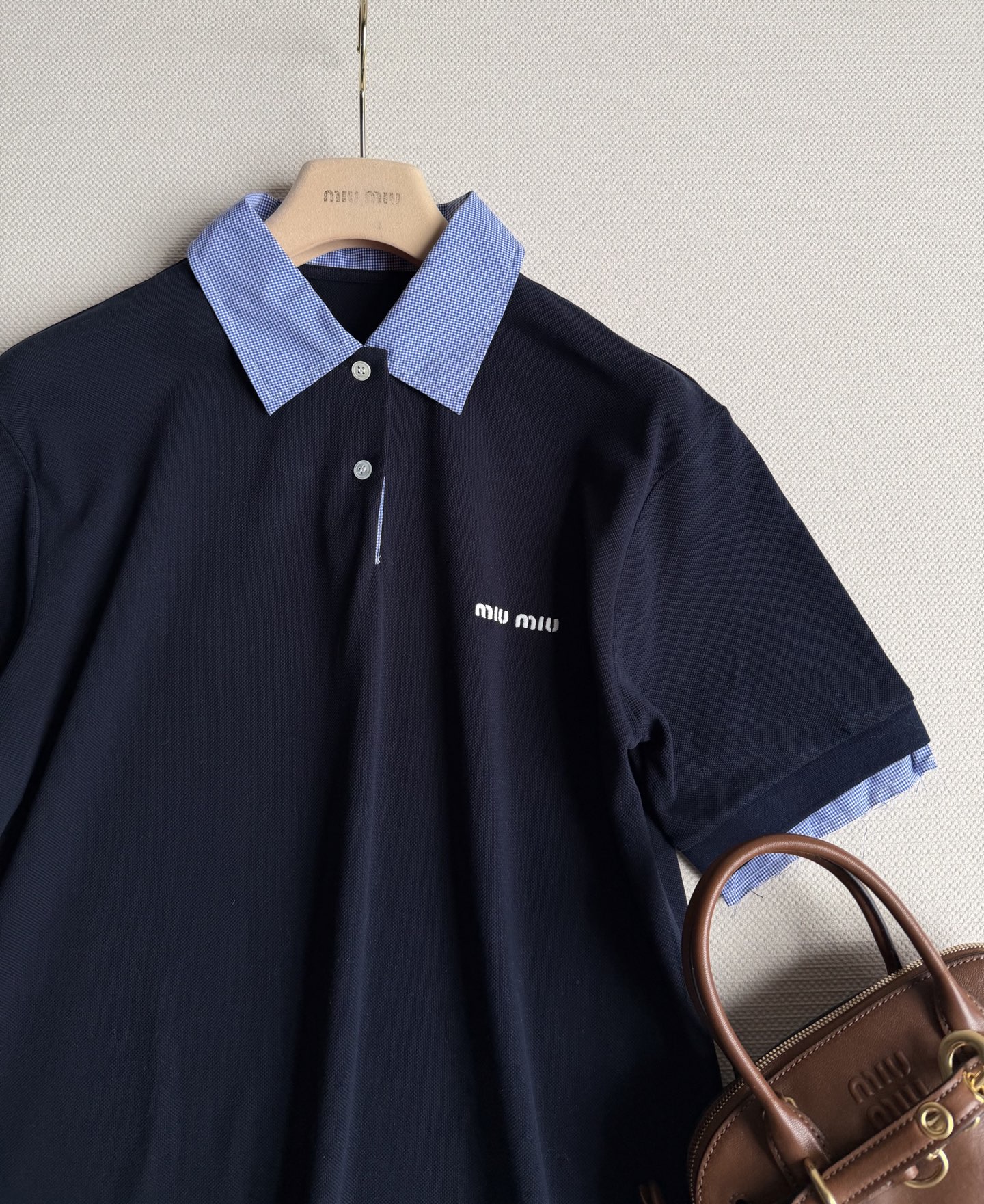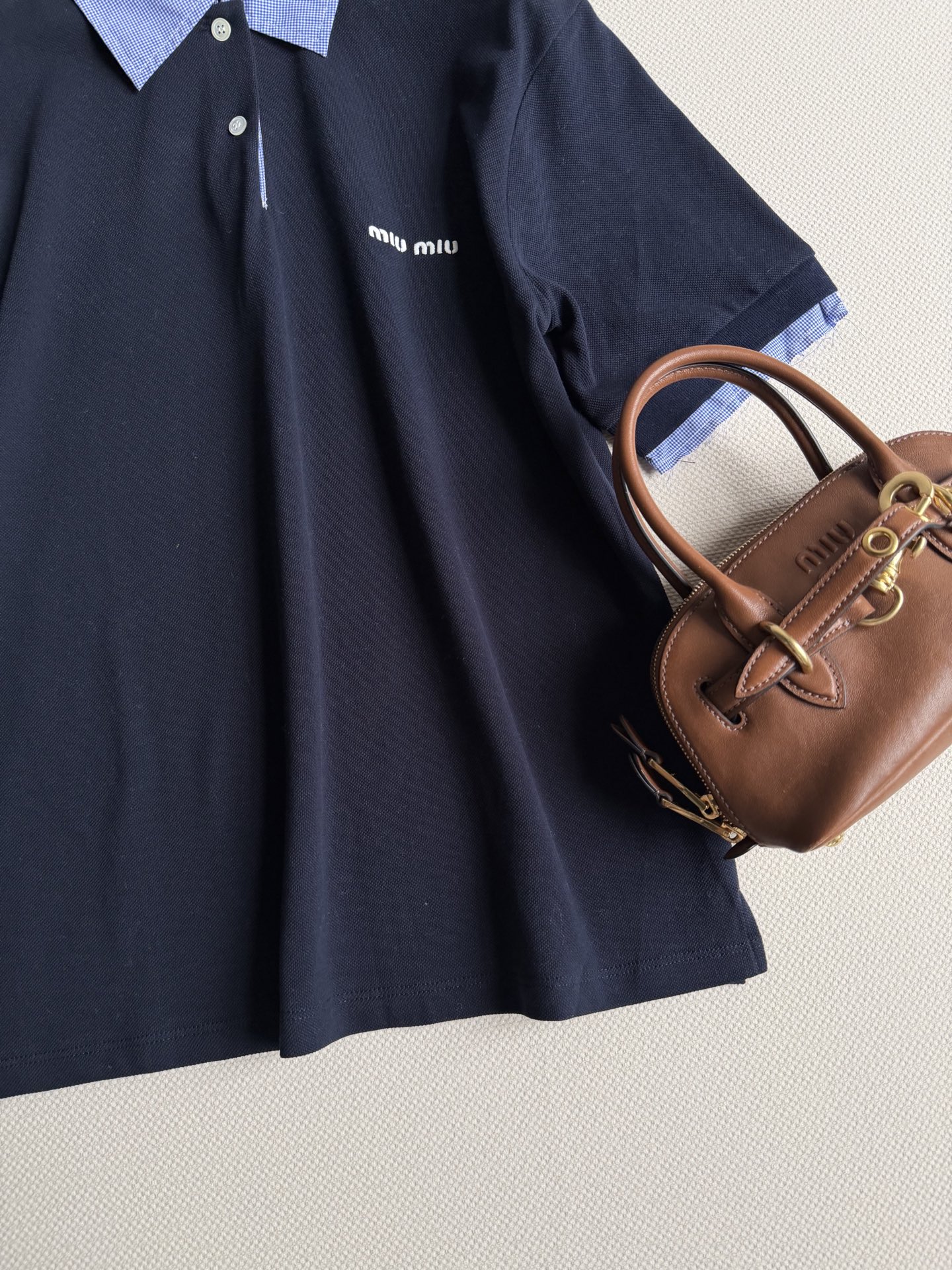 這款衣服是AAAAA 1:1 質量(非常棒). 使用了和原版一模一樣的材料. 商標部分也保持了和繆繆/Miu Miu一樣. 圖片拍攝是實物衣服拍攝, 您所收到的實物保證和我們圖片一模一樣.
