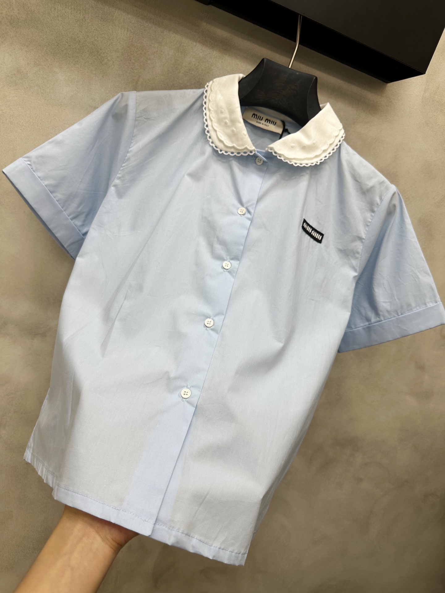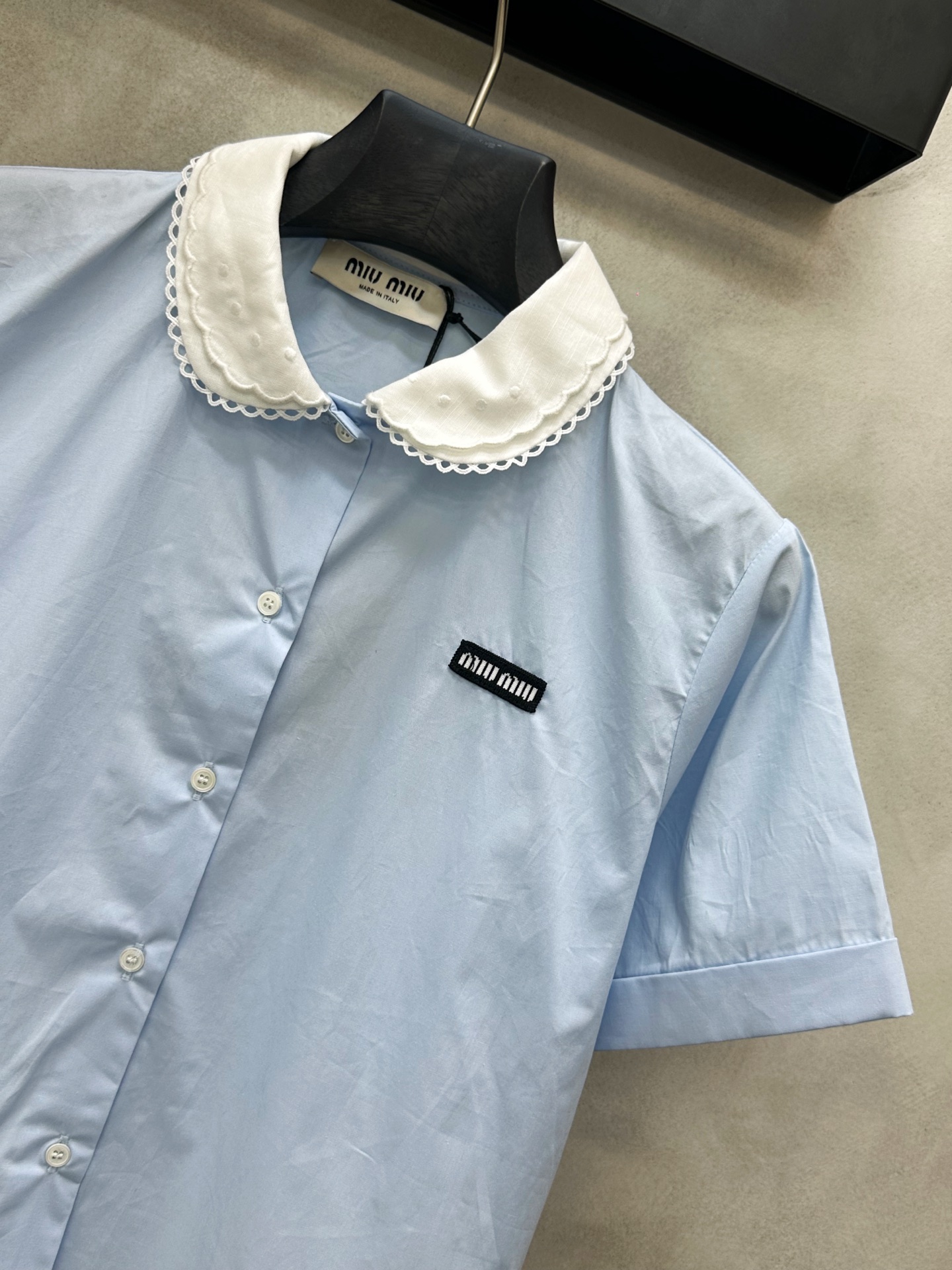 這款衣服是AAAAA 1:1 質量(非常棒). 使用了和原版一模一樣的材料. 商標部分也保持了和繆繆/Miu Miu一樣. 圖片拍攝是實物衣服拍攝, 您所收到的實物保證和我們圖片一模一樣.