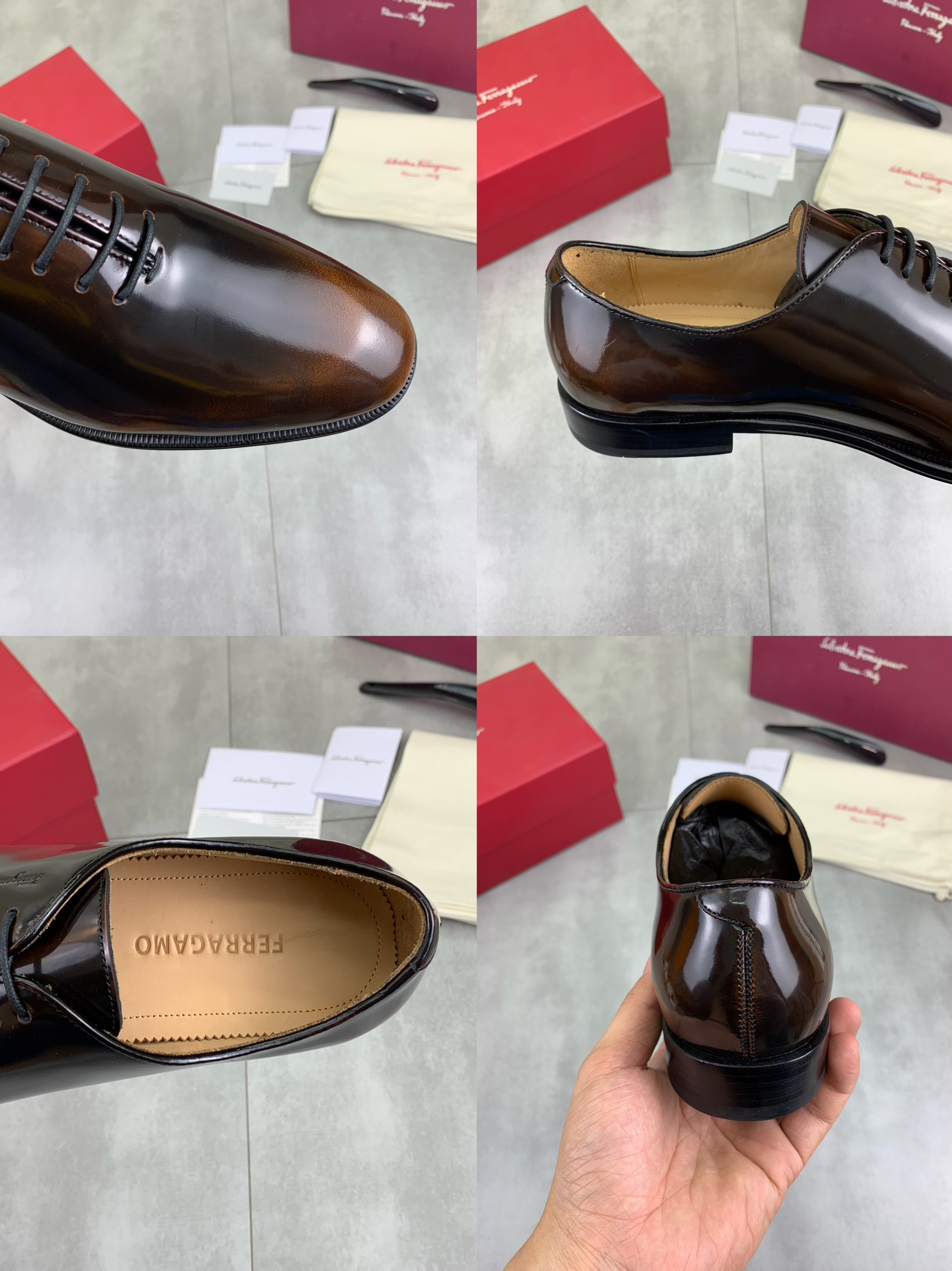 這款鞋子是AAAAA 1:1 質量(非常棒). 使用了和原版一模一樣的材料. 商標部分也保持了和菲拉格慕/Salvatore Ferragamo一樣. 圖片拍攝是實物鞋子拍攝, 您所收到的實物保證和我們圖片一模一樣.