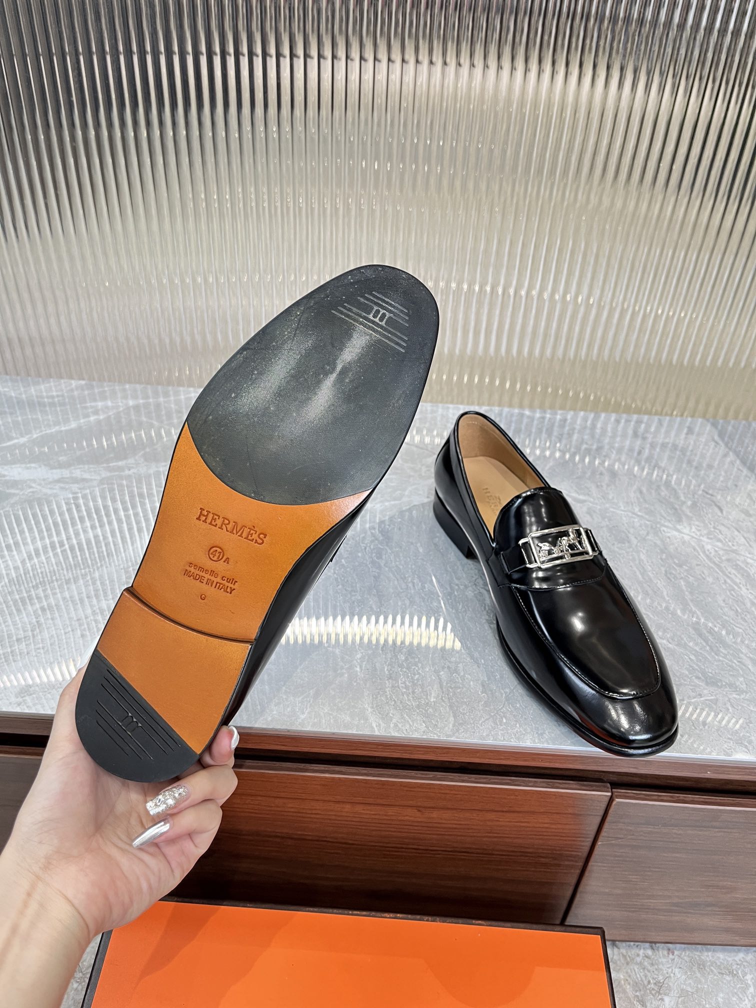 這款鞋子是AAAAA 1:1 質量(非常棒). 使用了和原版一模一樣的材料. 商標部分也保持了和愛馬仕/Hermes一樣. 圖片拍攝是實物鞋子拍攝, 您所收到的實物保證和我們圖片一模一樣.