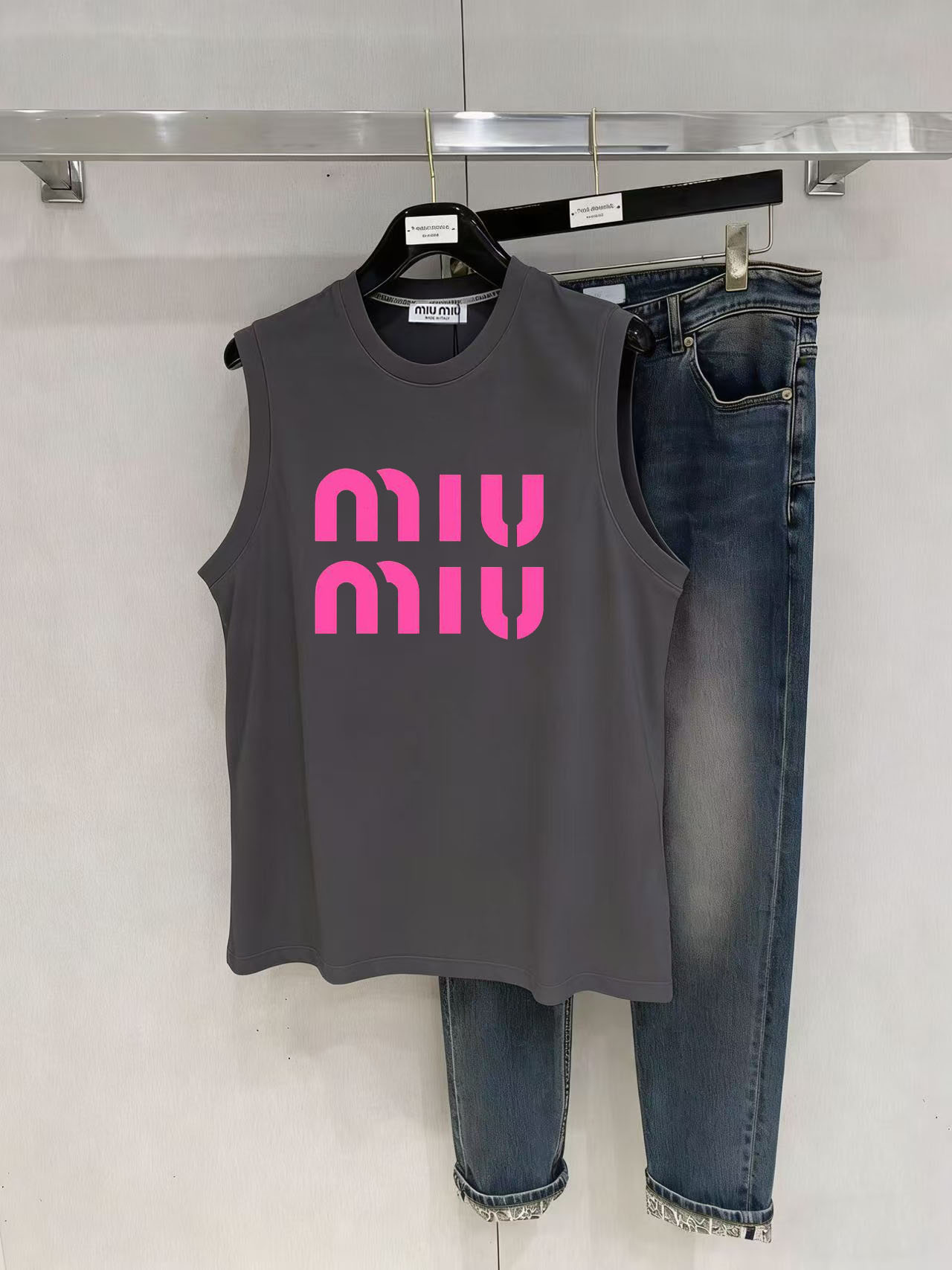 這款衣服是AAAAA 1:1 質量(非常棒). 使用了和原版一模一樣的材料. 商標部分也保持了和繆繆/Miu Miu一樣. 圖片拍攝是實物衣服拍攝, 您所收到的實物保證和我們圖片一模一樣.