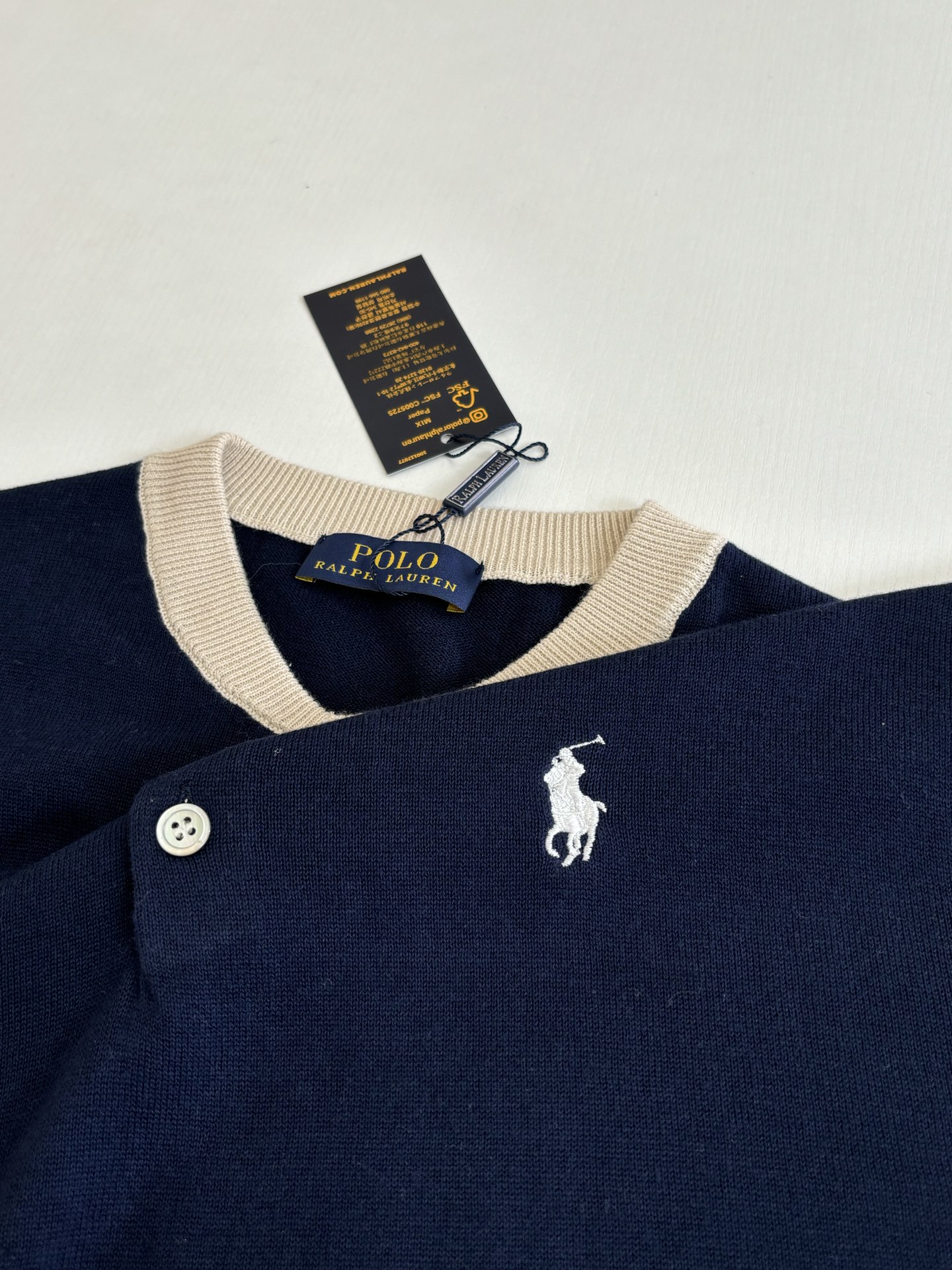 這款衣服是AAAAA 1:1 質量(非常棒). 使用了和原版一模一樣的材料. 商標部分也保持了和Ralph Lauren一樣. 圖片拍攝是實物衣服拍攝, 您所收到的實物保證和我們圖片一模一樣.