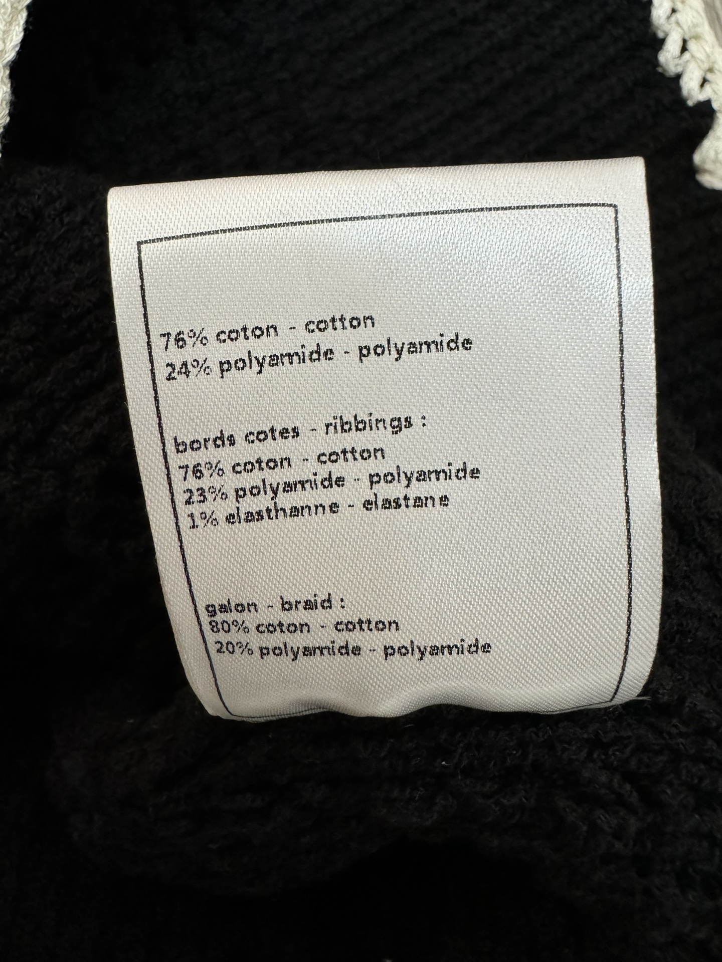 這款衣服是AAAAA 1:1 質量(非常棒). 使用了和原版一模一樣的材料. 商標部分也保持了和香奈兒/Chanel一樣. 圖片拍攝是實物衣服拍攝, 您所收到的實物保證和我們圖片一模一樣.