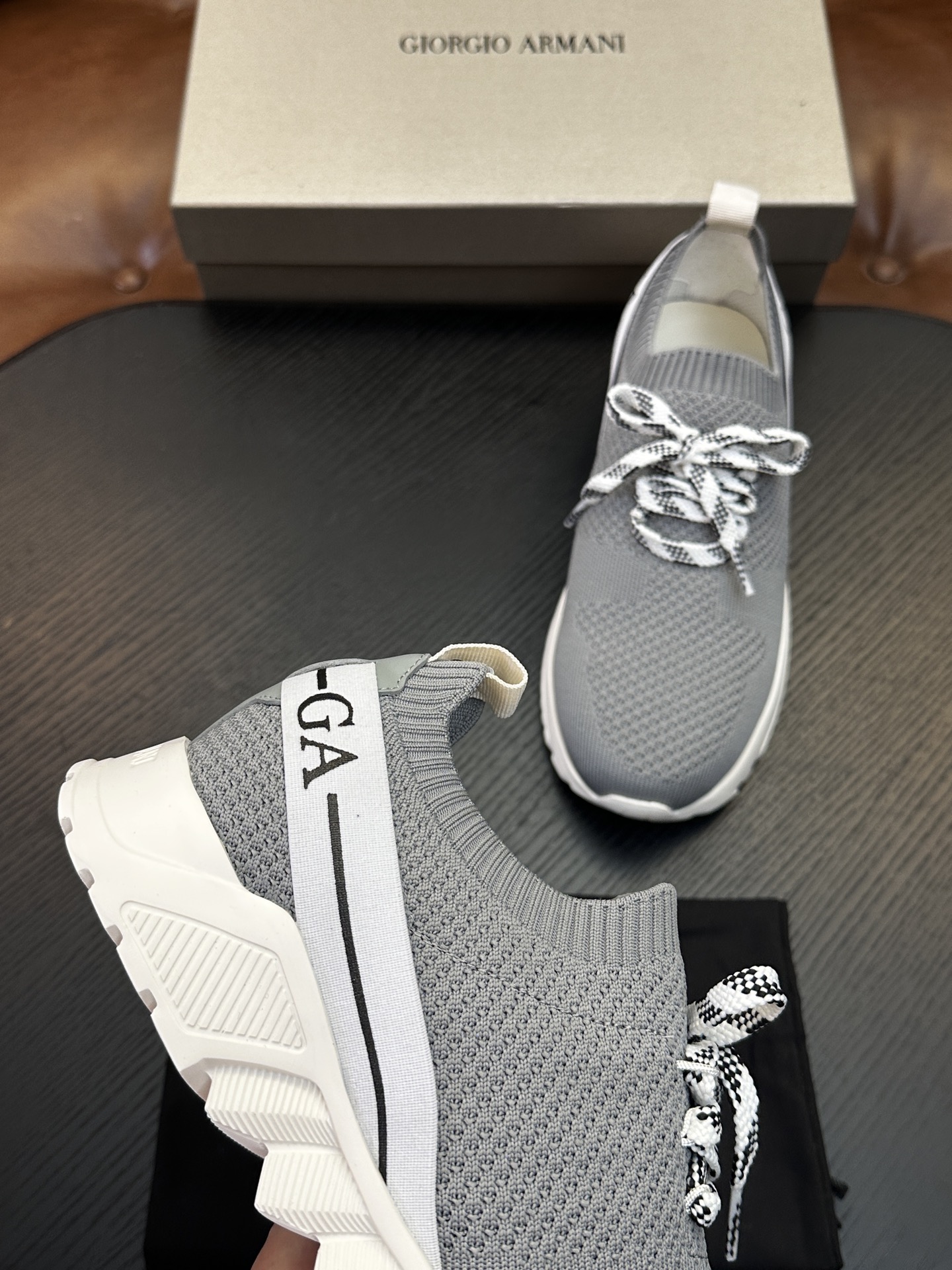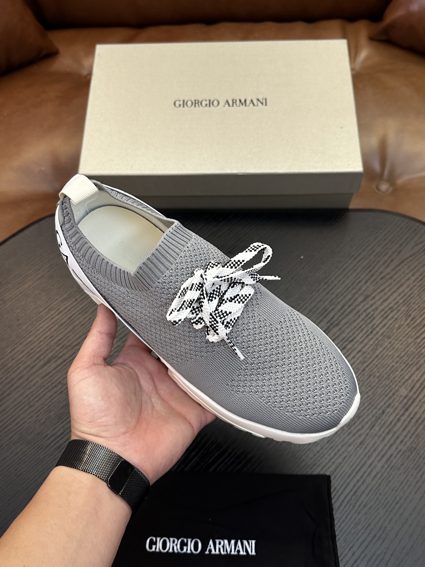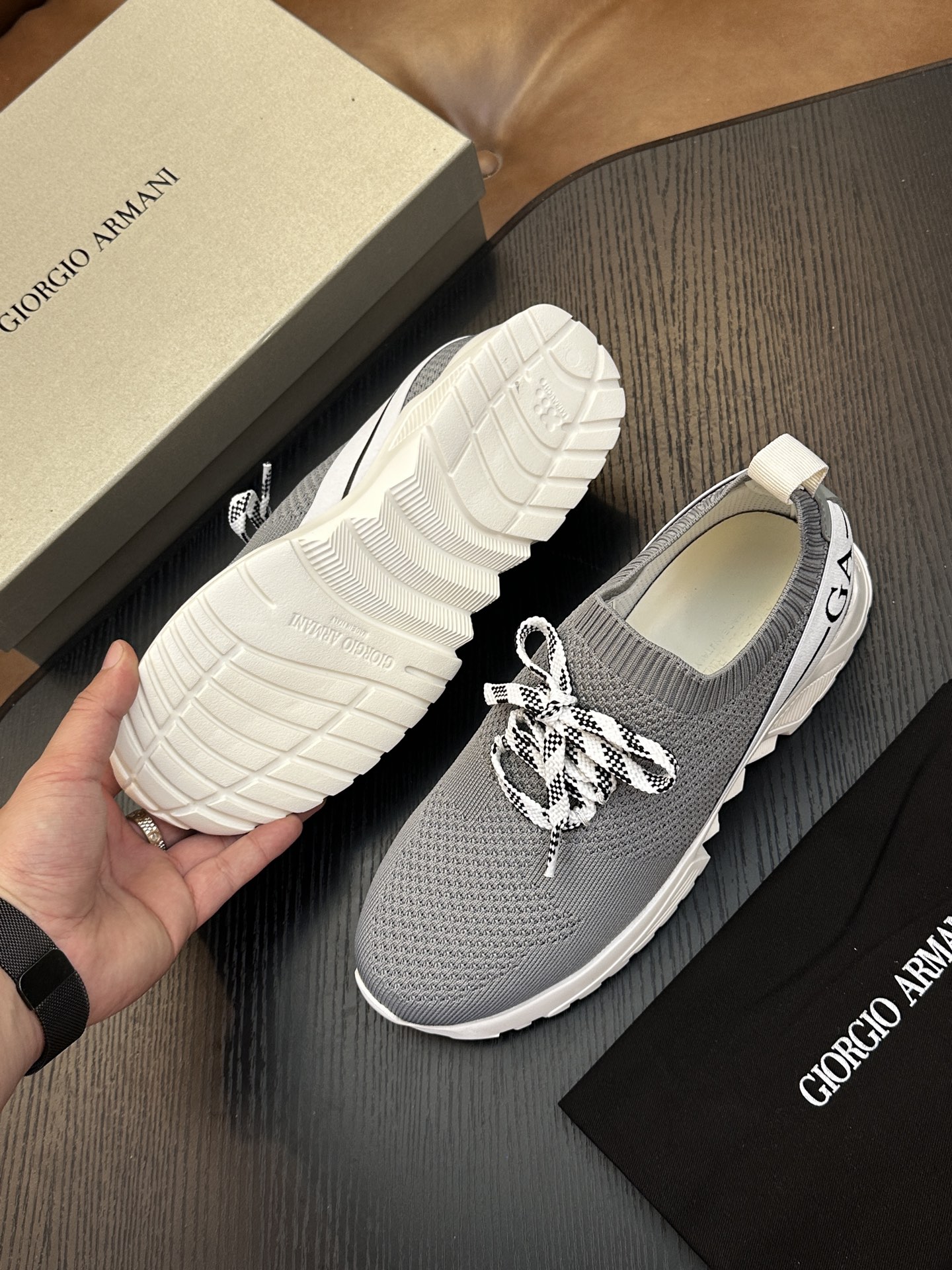 這款鞋子是AAAAA 1:1 質量(非常棒). 使用了和原版一模一樣的材料. 商標部分也保持了和阿瑪尼/Armani一樣. 圖片拍攝是實物鞋子拍攝, 您所收到的實物保證和我們圖片一模一樣.