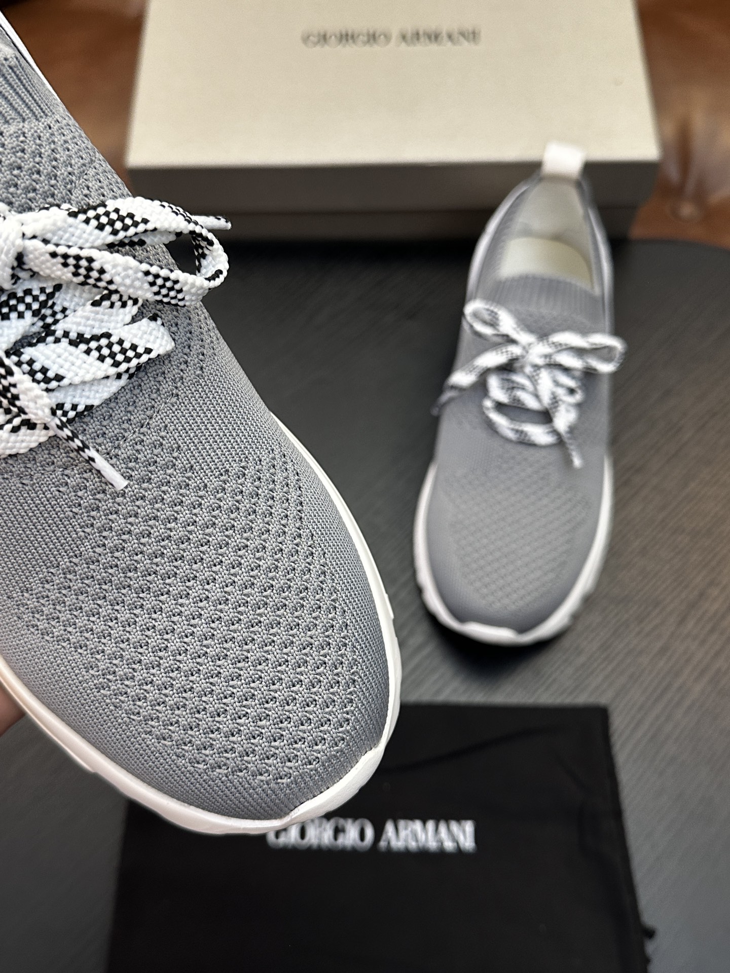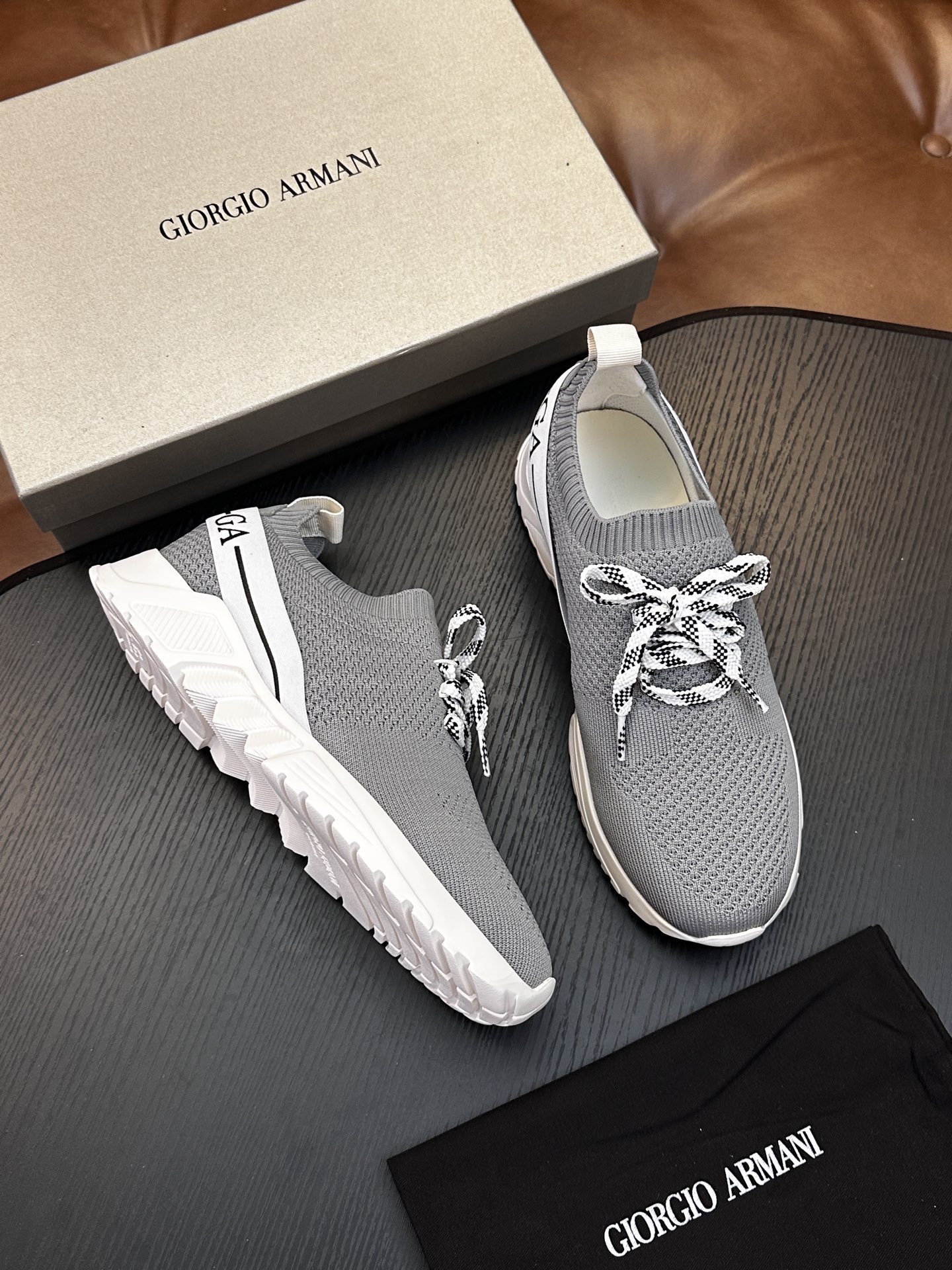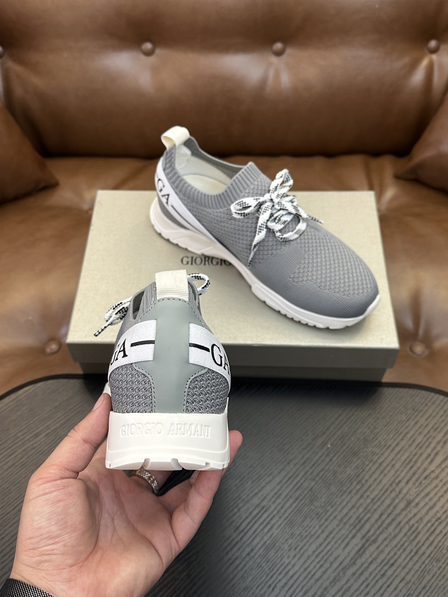 這款鞋子是AAAAA 1:1 質量(非常棒). 使用了和原版一模一樣的材料. 商標部分也保持了和阿瑪尼/Armani一樣. 圖片拍攝是實物鞋子拍攝, 您所收到的實物保證和我們圖片一模一樣.