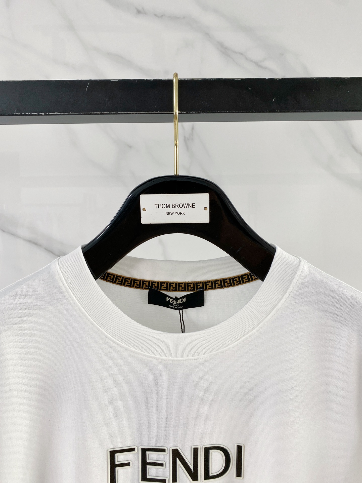 這款衣服是AAAAA 1:1 質量(非常棒). 使用了和原版一模一樣的材料. 商標部分也保持了和芬迪/Fendi一樣. 圖片拍攝是實物衣服拍攝, 您所收到的實物保證和我們圖片一模一樣.