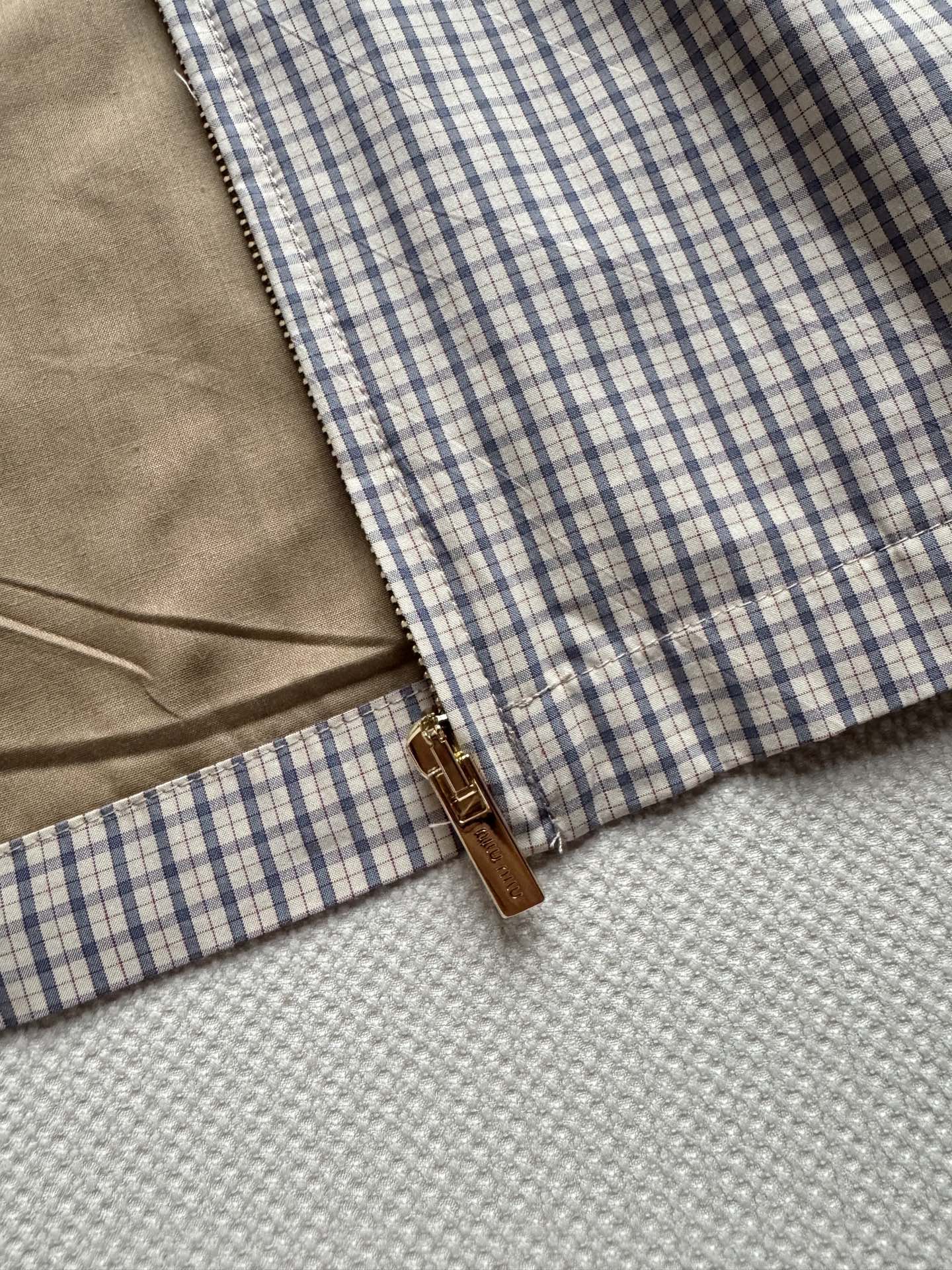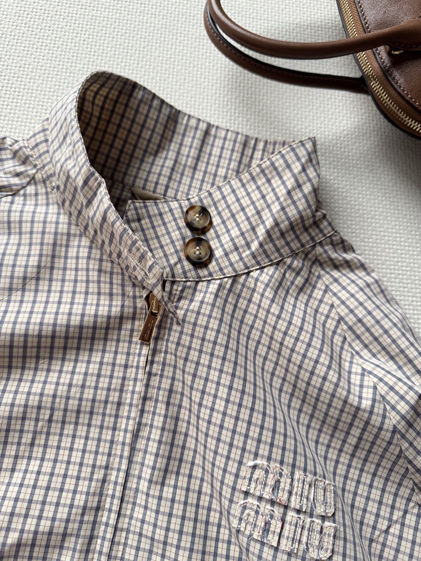 這款衣服是AAAAA 1:1 質量(非常棒). 使用了和原版一模一樣的材料. 商標部分也保持了和繆繆/Miu Miu一樣. 圖片拍攝是實物衣服拍攝, 您所收到的實物保證和我們圖片一模一樣.
