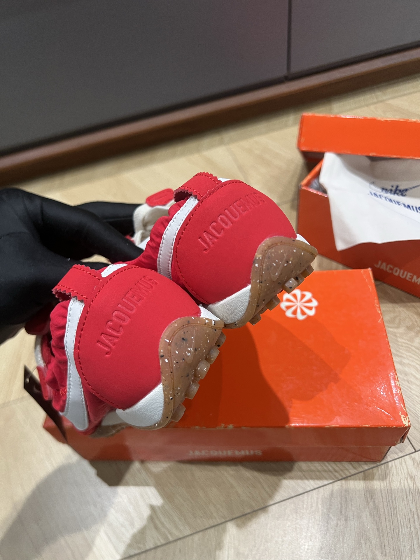 這款鞋子是AAAAA 1:1 質量(非常棒). 使用了和原版一模一樣的材料. 商標部分也保持了和Jacquemus一樣. 圖片拍攝是實物鞋子拍攝, 您所收到的實物保證和我們圖片一模一樣.