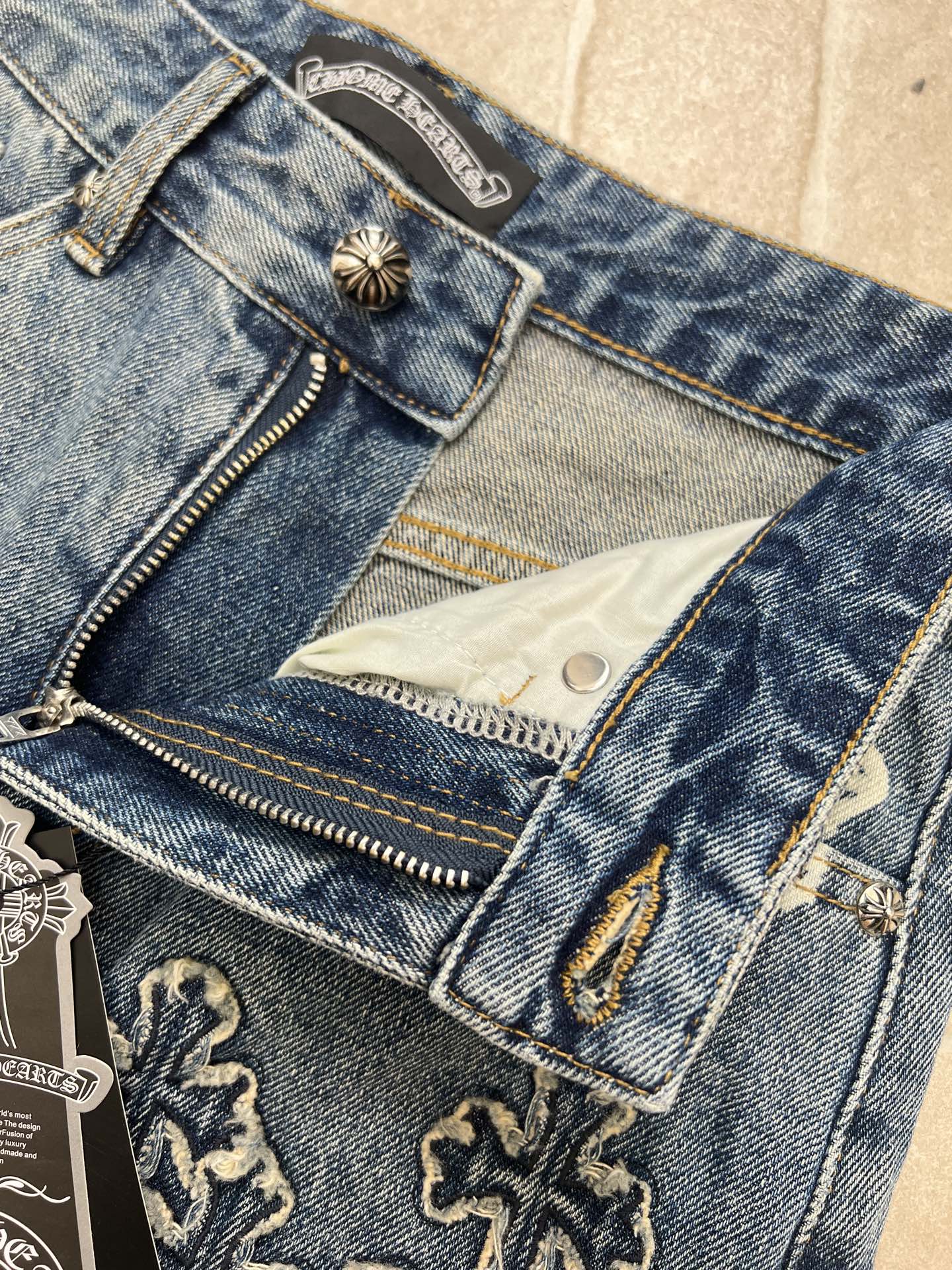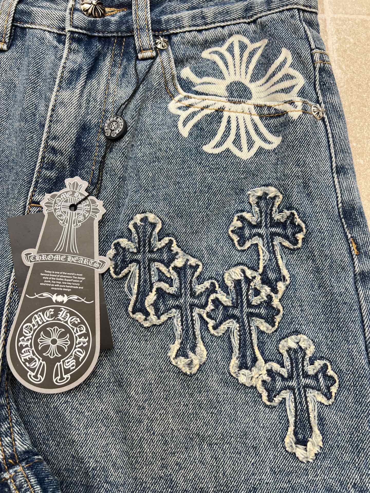 這款衣服是AAAAA 1:1 質量(非常棒). 使用了和原版一模一樣的材料. 商標部分也保持了和鉻心/Chrome Hearts一樣. 圖片拍攝是實物衣服拍攝, 您所收到的實物保證和我們圖片一模一樣.