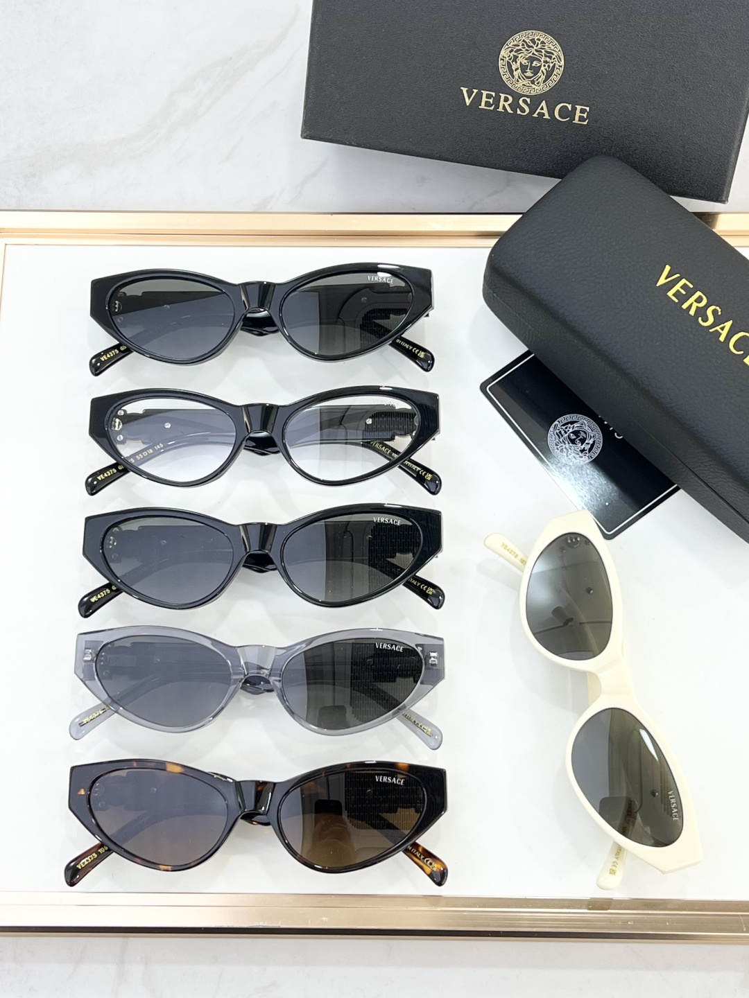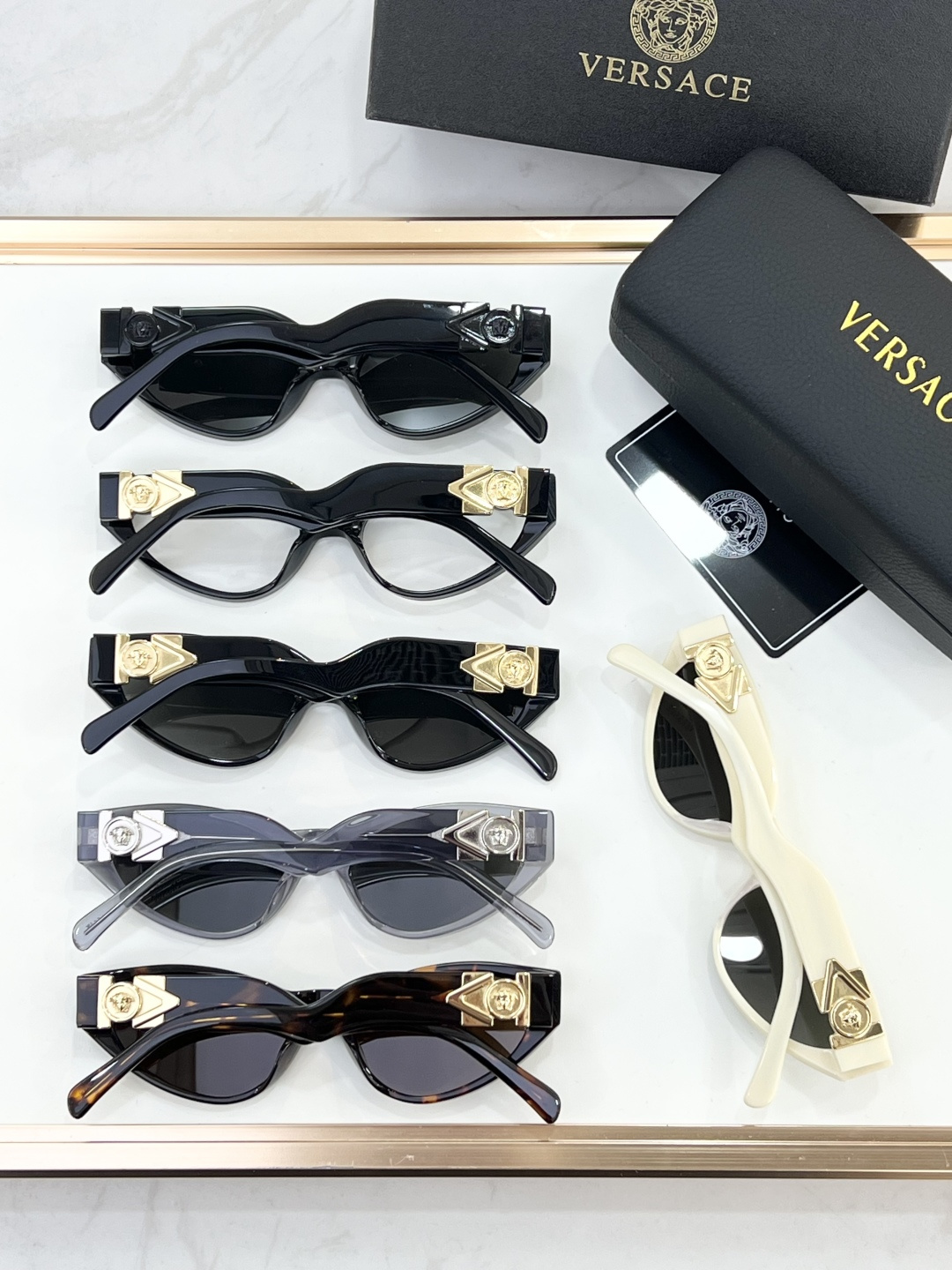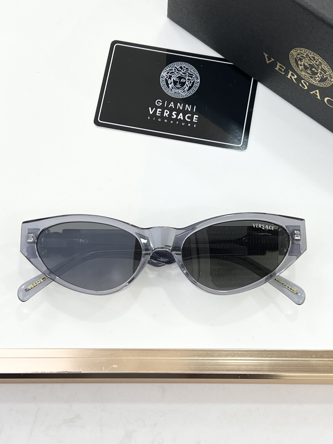 這款太陽眼鏡是AAAAA 1:1 質量(非常棒). 使用了和原版一模一樣的材料. 商標部分也保持了和范思哲/Versace一樣. 圖片拍攝是實物太陽眼鏡拍攝, 您所收到的實物保證和我們圖片一模一樣.