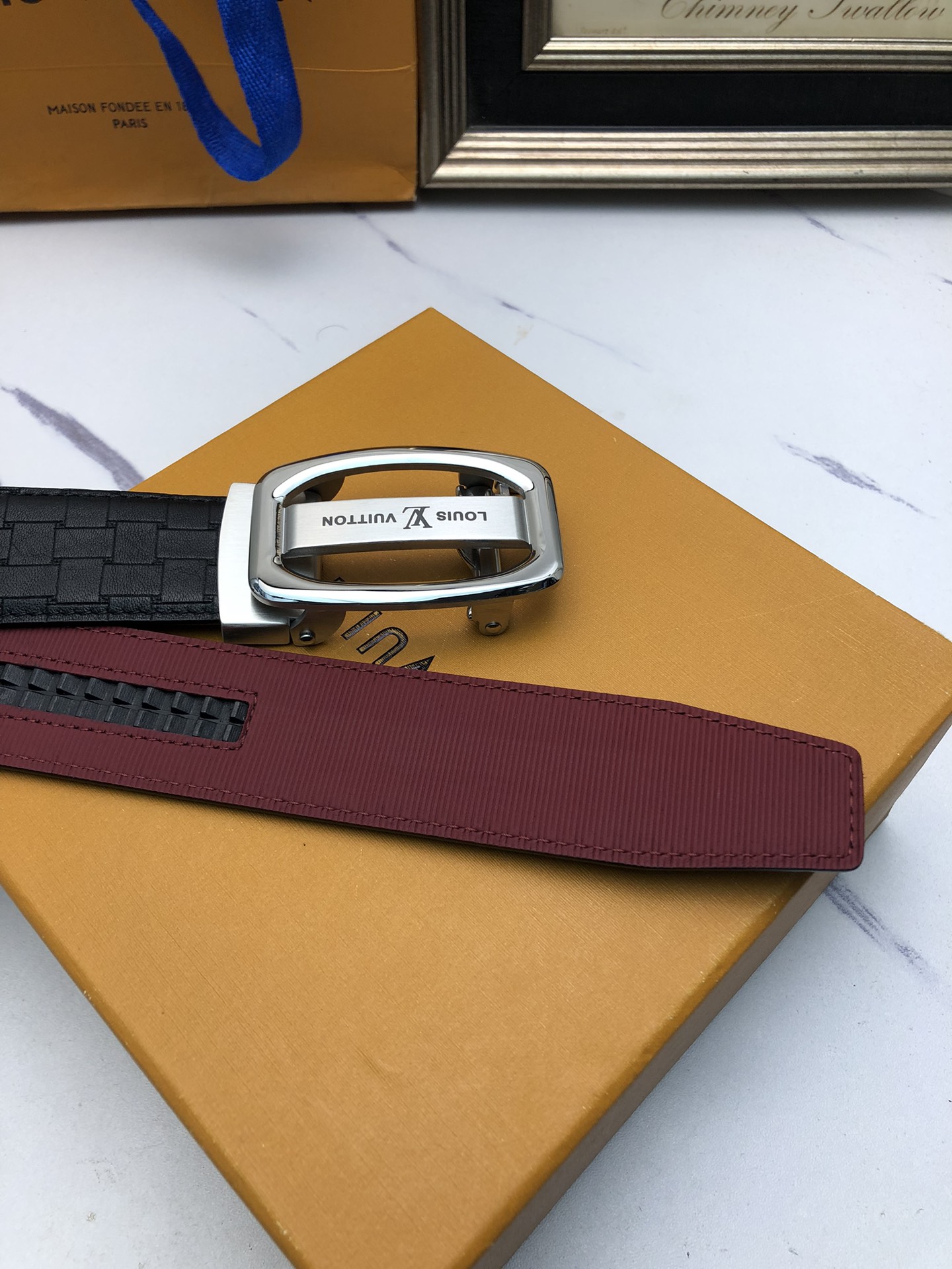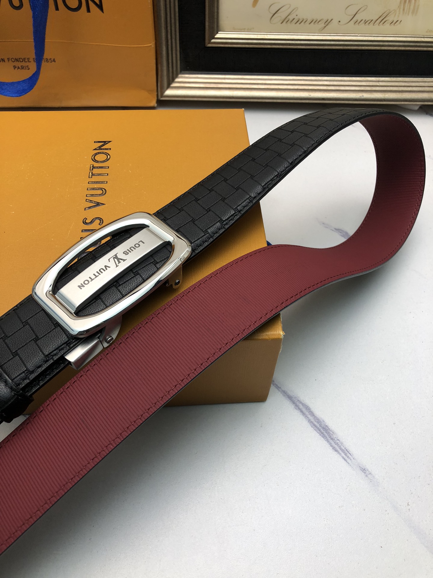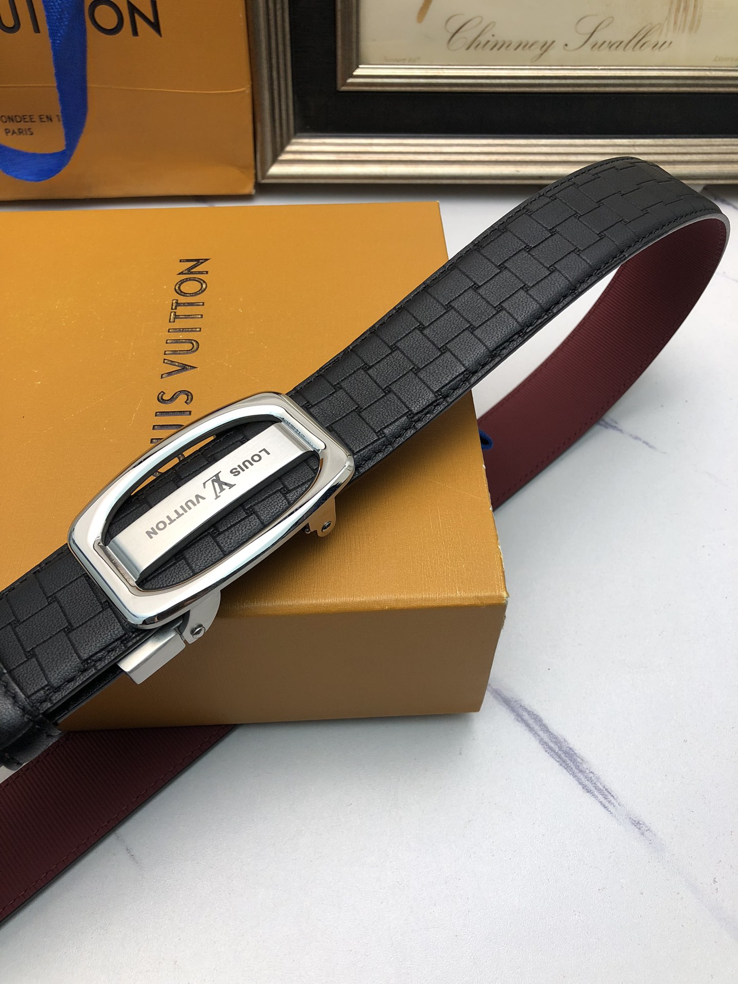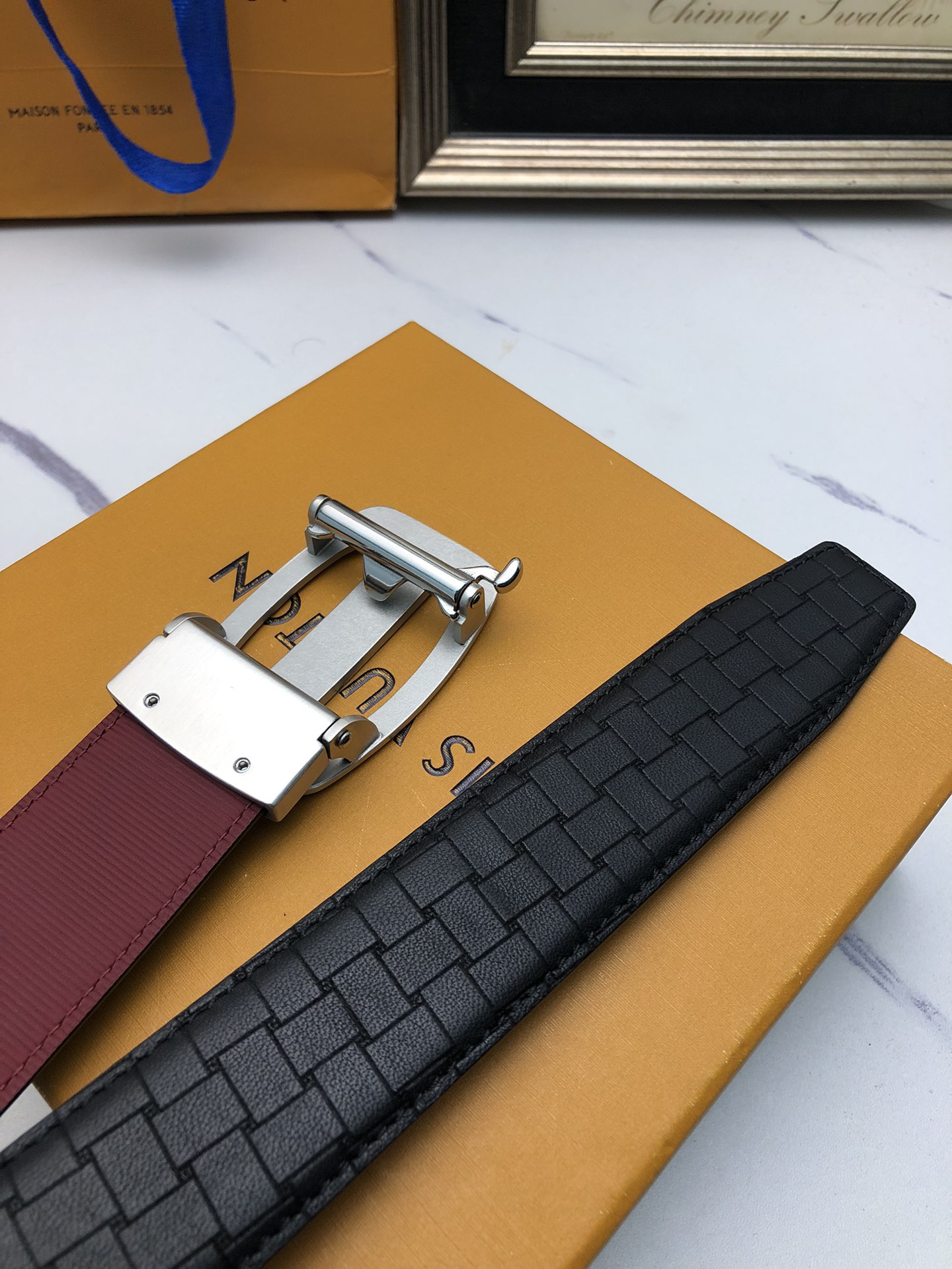 這款皮帶是AAAAA 1:1 質量(非常棒). 使用了和原版一模一樣的材料. 商標部分也保持了和一樣. 圖片拍攝是實物皮帶拍攝, 您所收到的實物保證和我們圖片一模一樣.