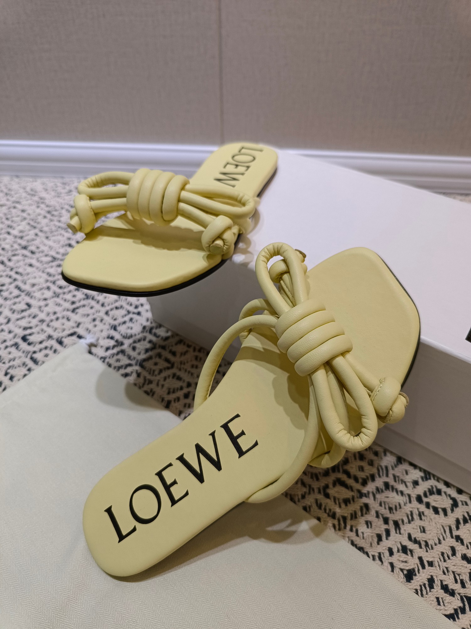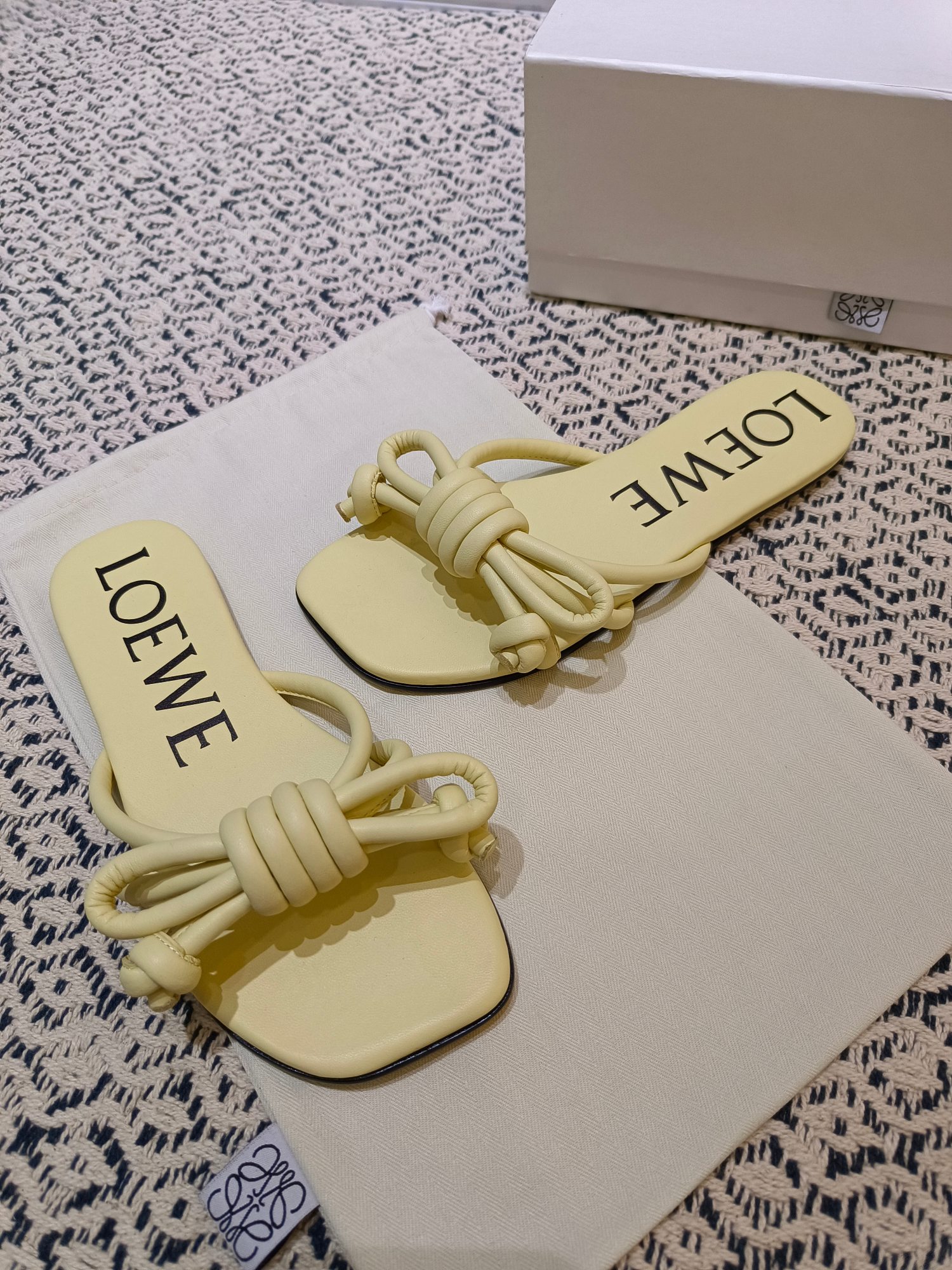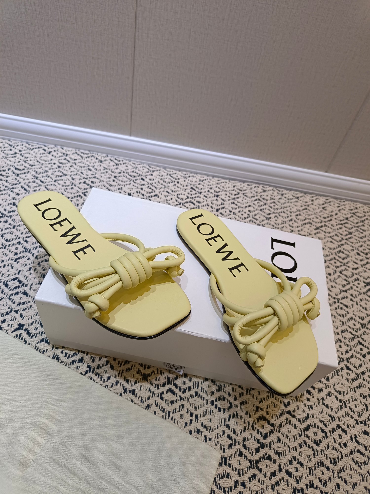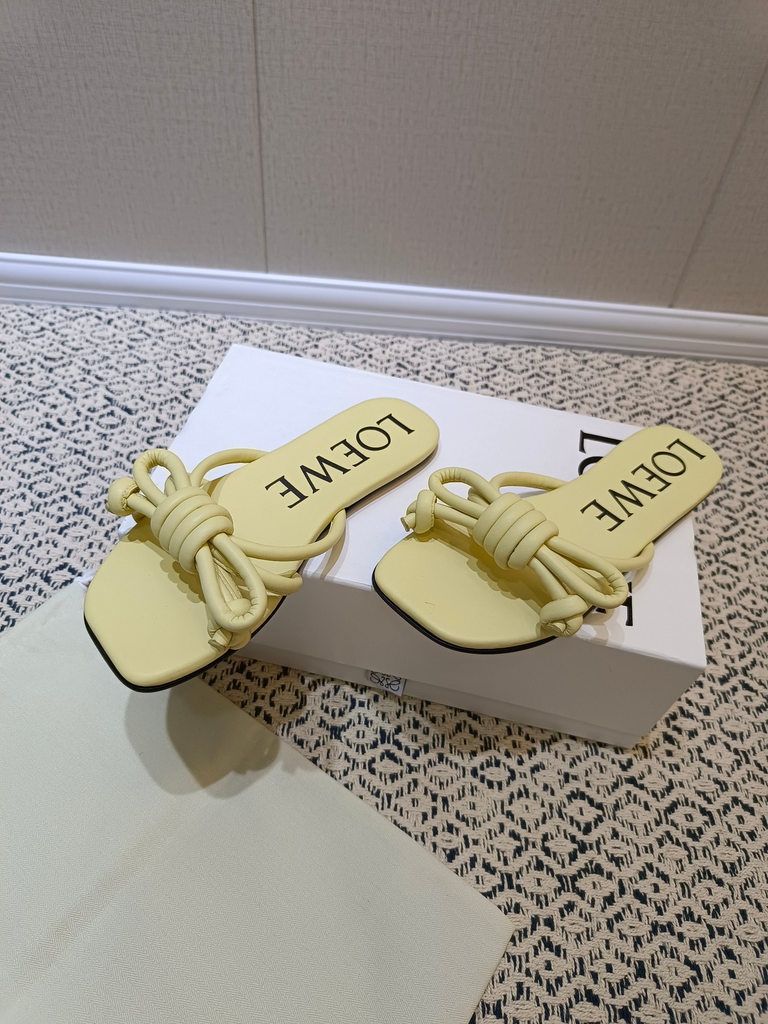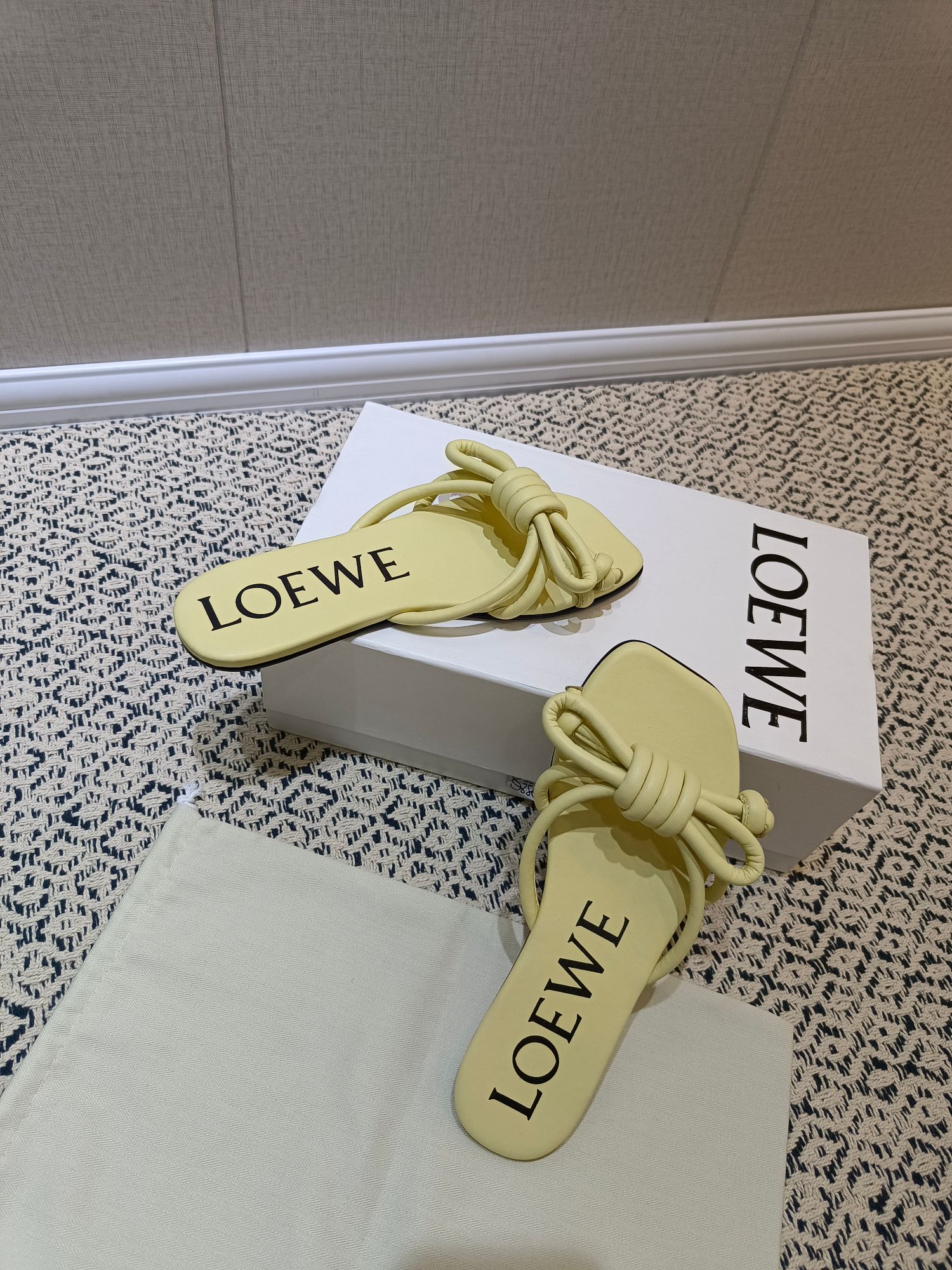 這款鞋子是AAAAA 1:1 質量(非常棒). 使用了和原版一模一樣的材料. 商標部分也保持了和Loewe一樣. 圖片拍攝是實物鞋子拍攝, 您所收到的實物保證和我們圖片一模一樣.