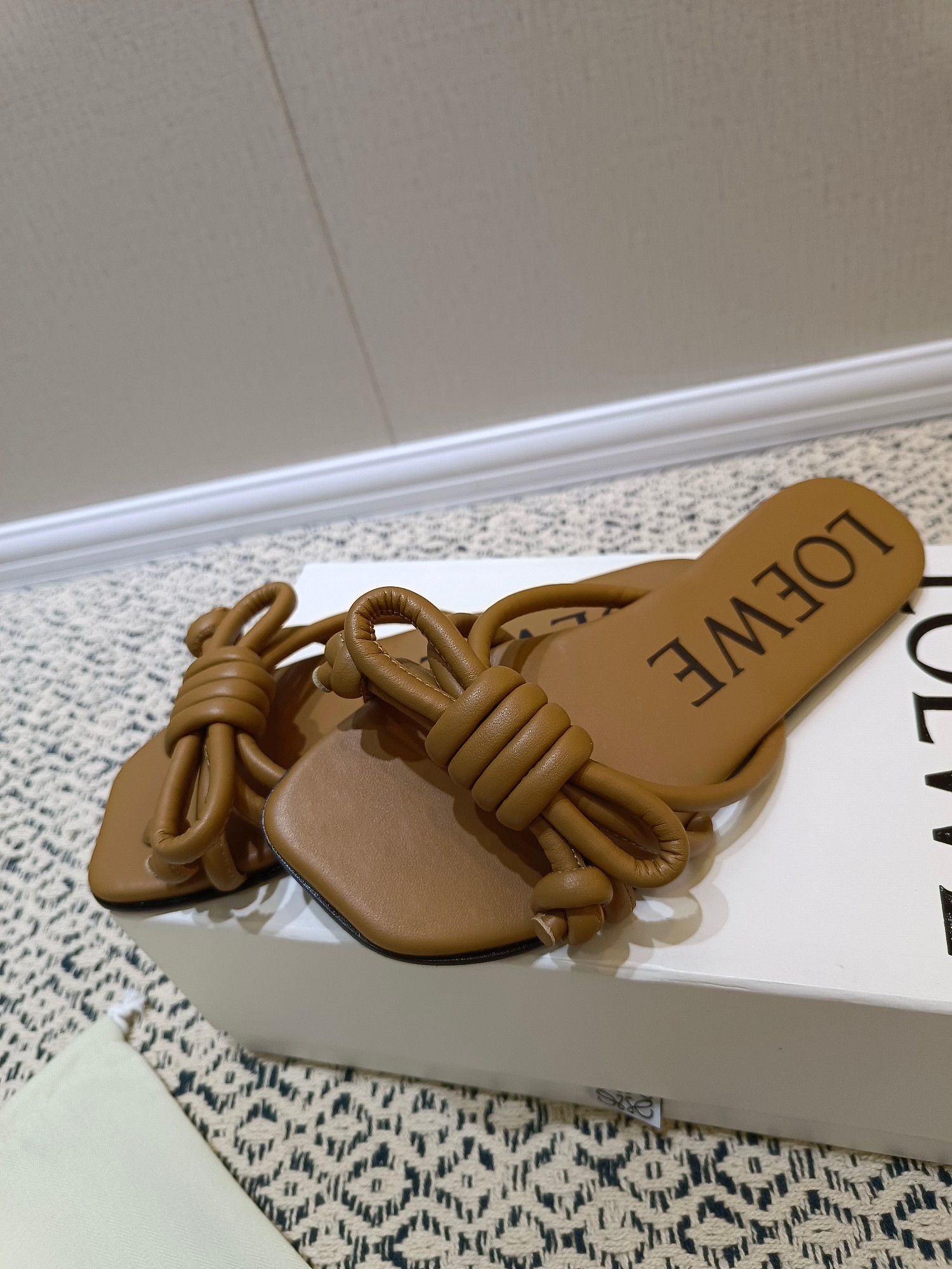 這款鞋子是AAAAA 1:1 質量(非常棒). 使用了和原版一模一樣的材料. 商標部分也保持了和Loewe一樣. 圖片拍攝是實物鞋子拍攝, 您所收到的實物保證和我們圖片一模一樣.
