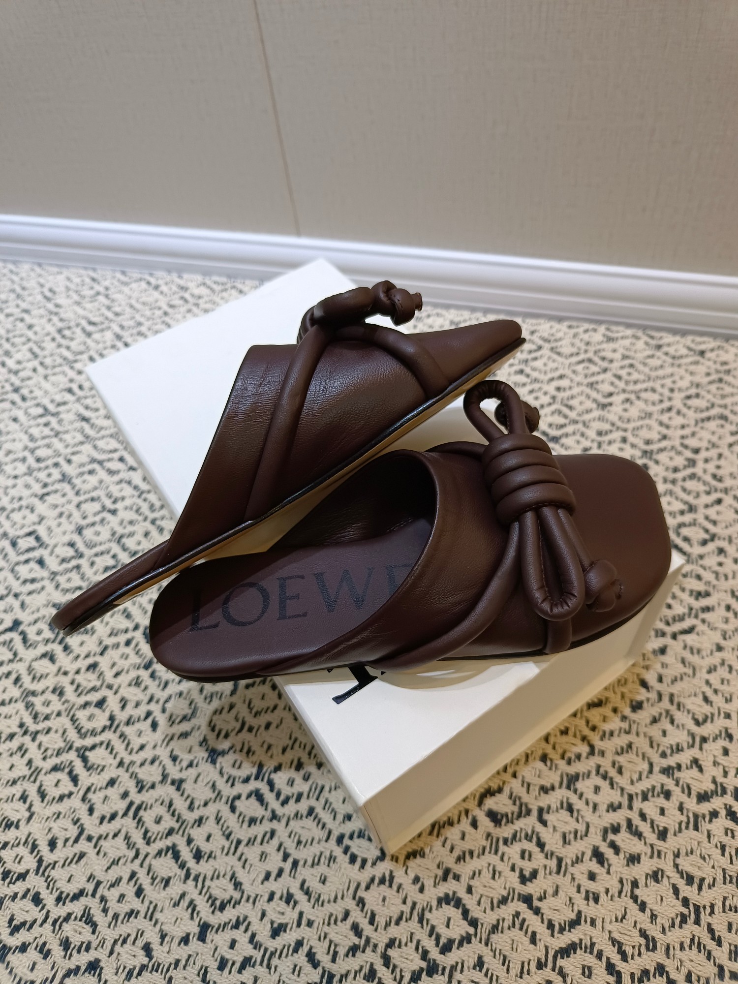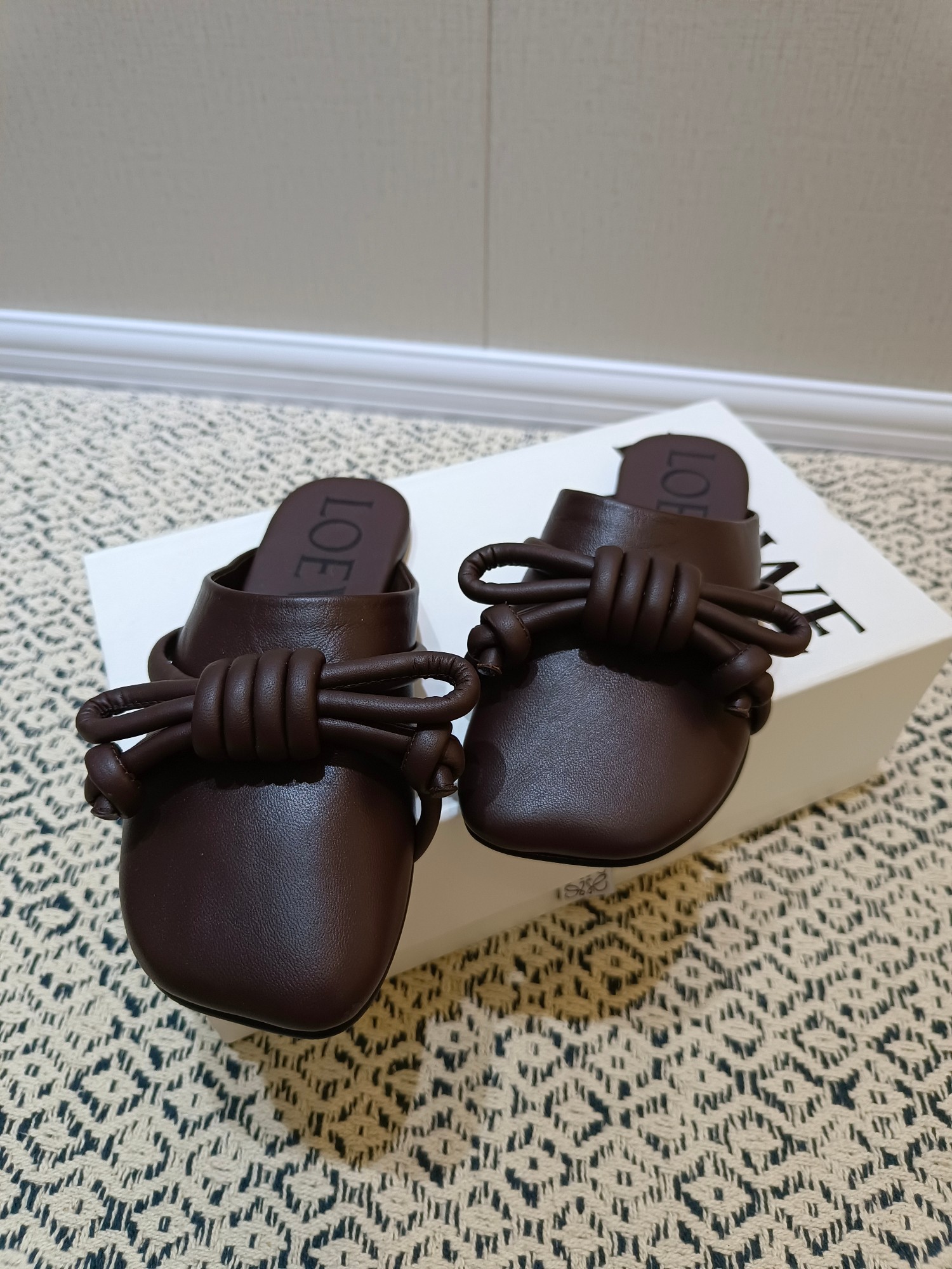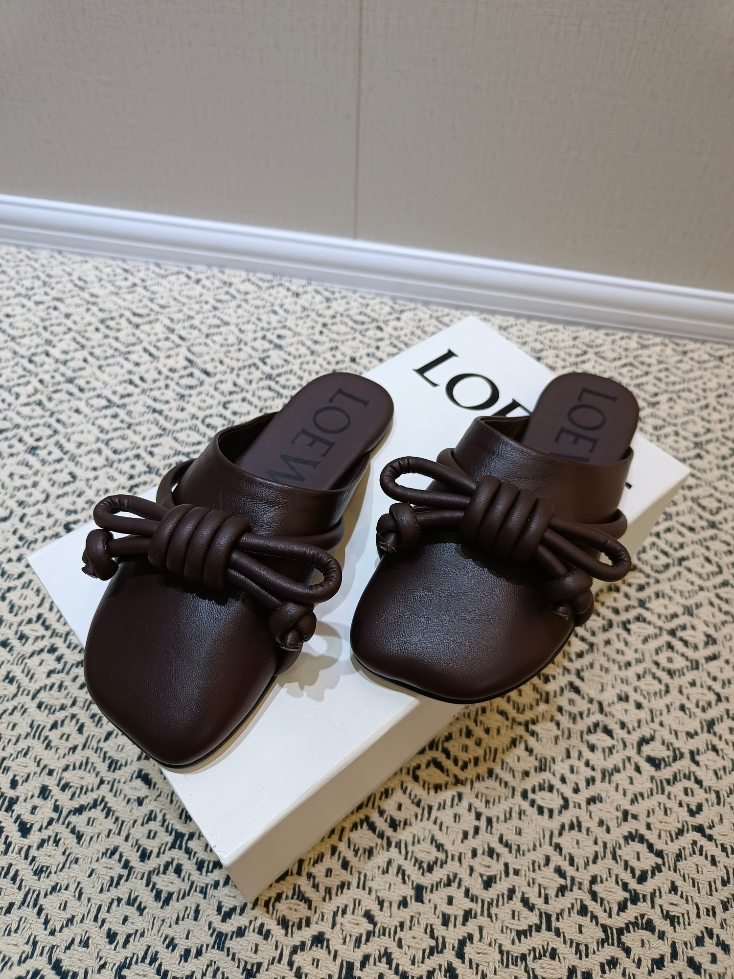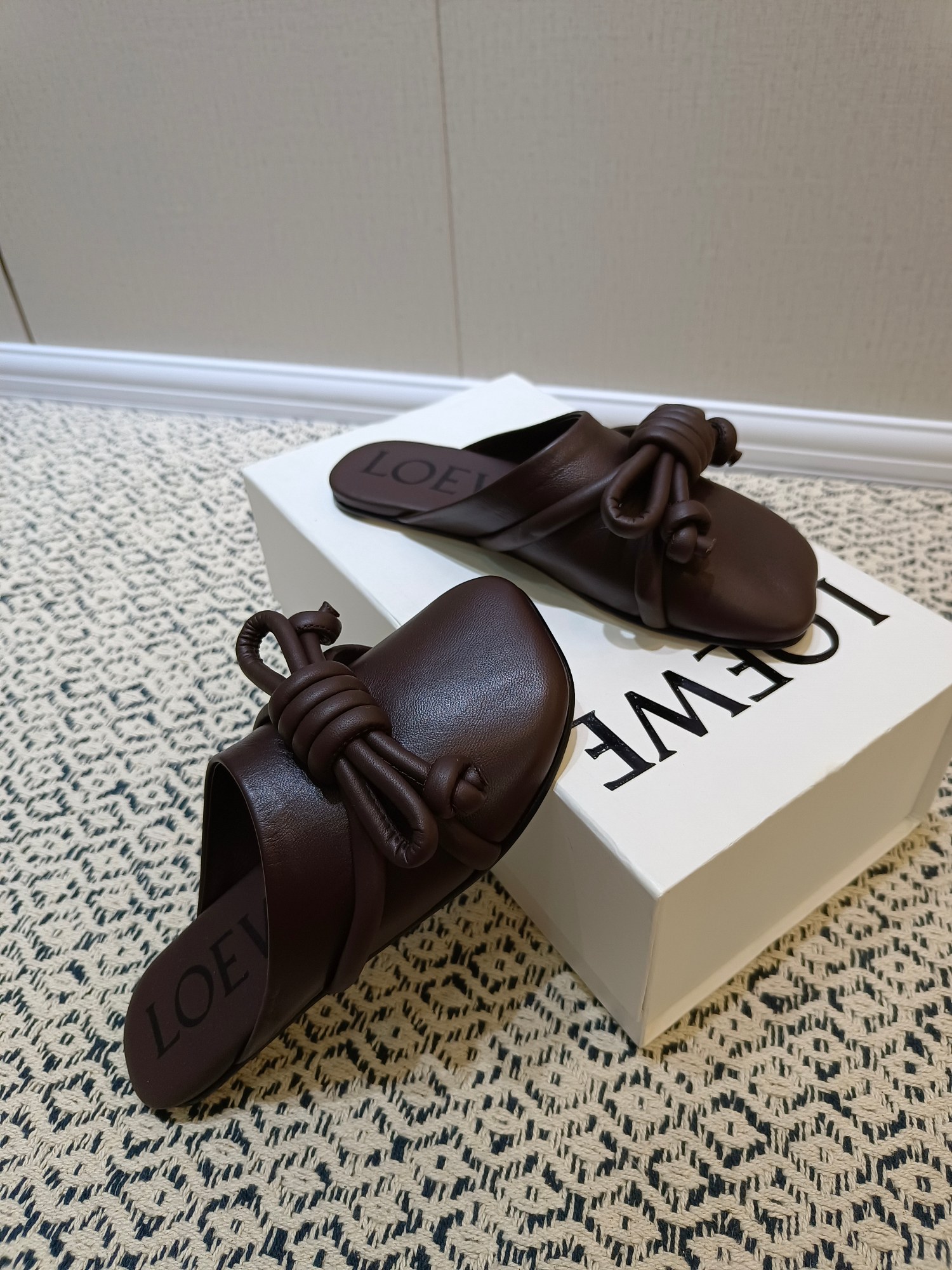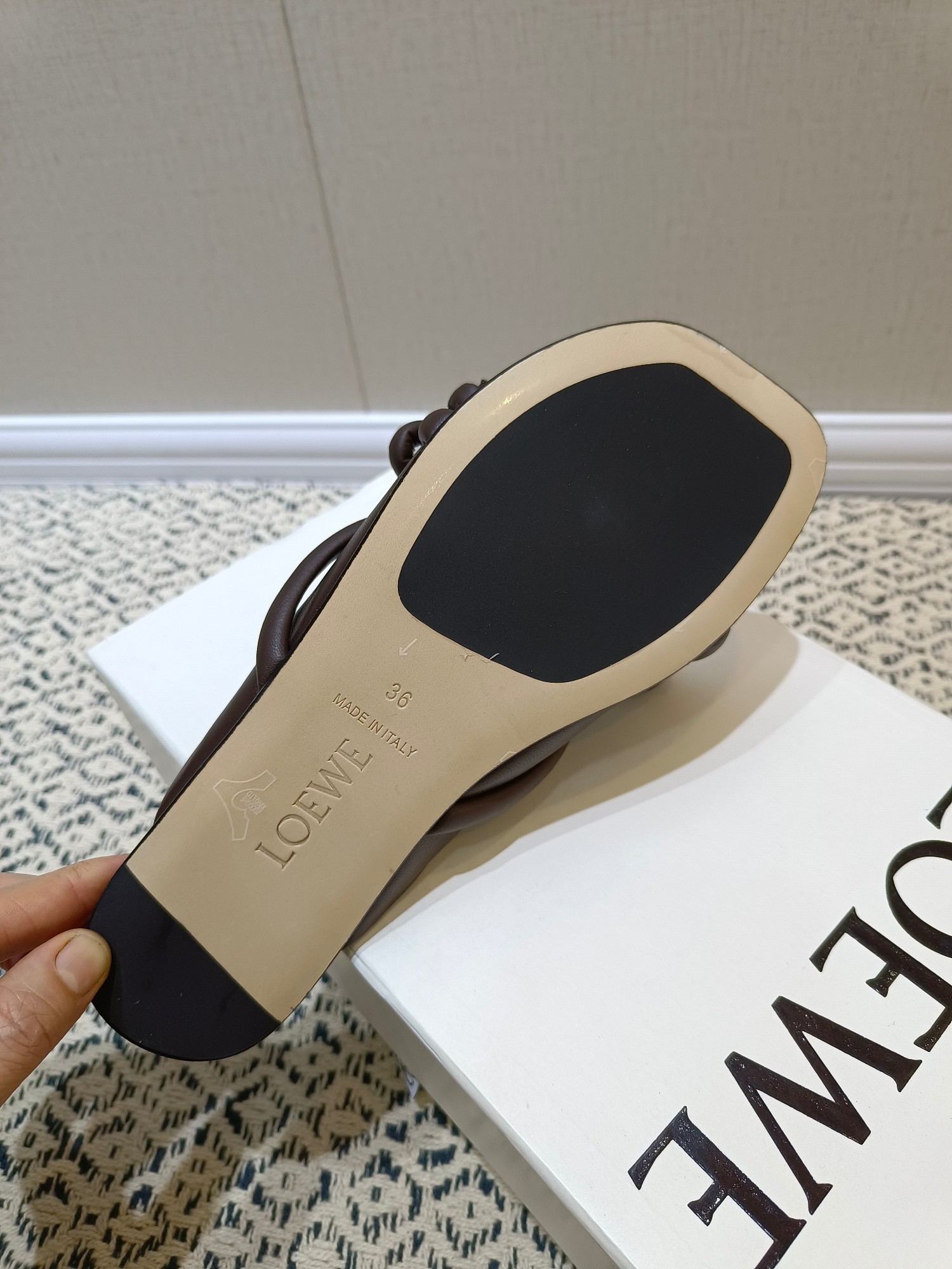 這款鞋子是AAAAA 1:1 質量(非常棒). 使用了和原版一模一樣的材料. 商標部分也保持了和Loewe一樣. 圖片拍攝是實物鞋子拍攝, 您所收到的實物保證和我們圖片一模一樣.