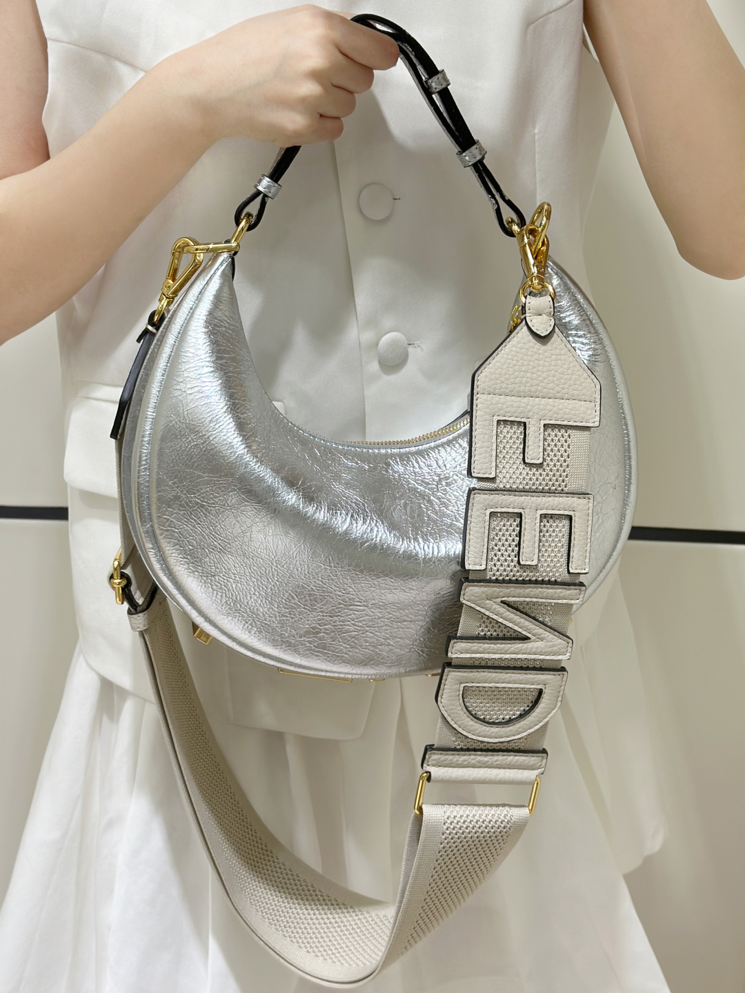 這款包包是AAAAA 1:1 質量(非常棒). 使用了和原版一模一樣的材料. 商標部分也保持了和芬迪/Fendi一樣. 圖片拍攝是實物包包拍攝, 您所收到的實物保證和我們圖片一模一樣.