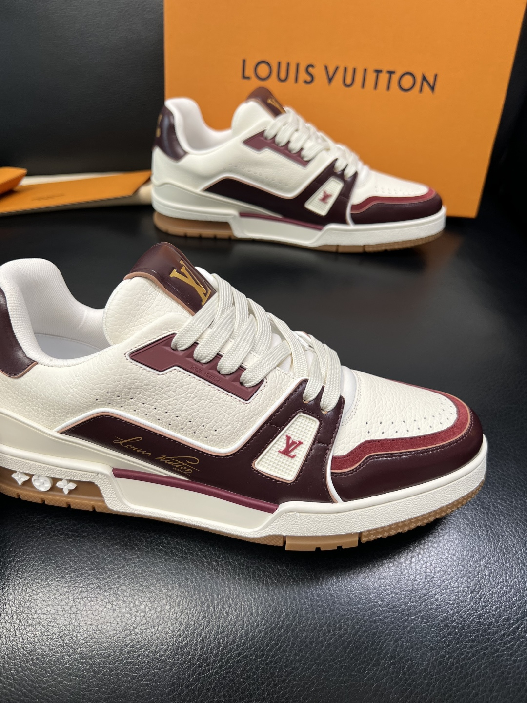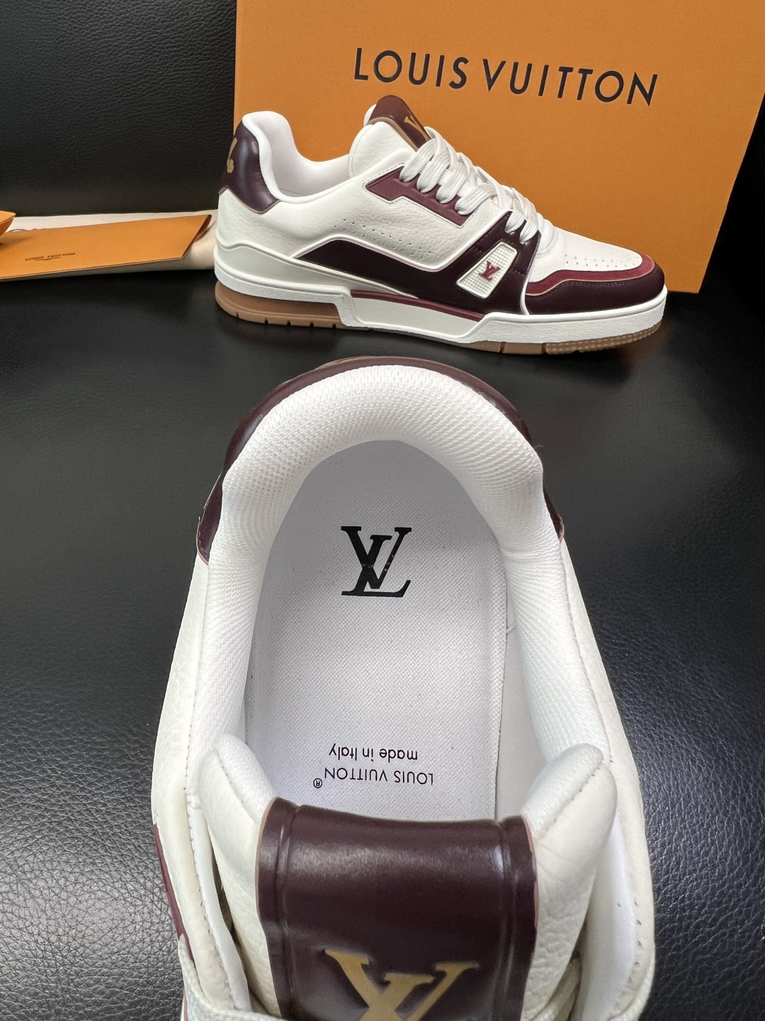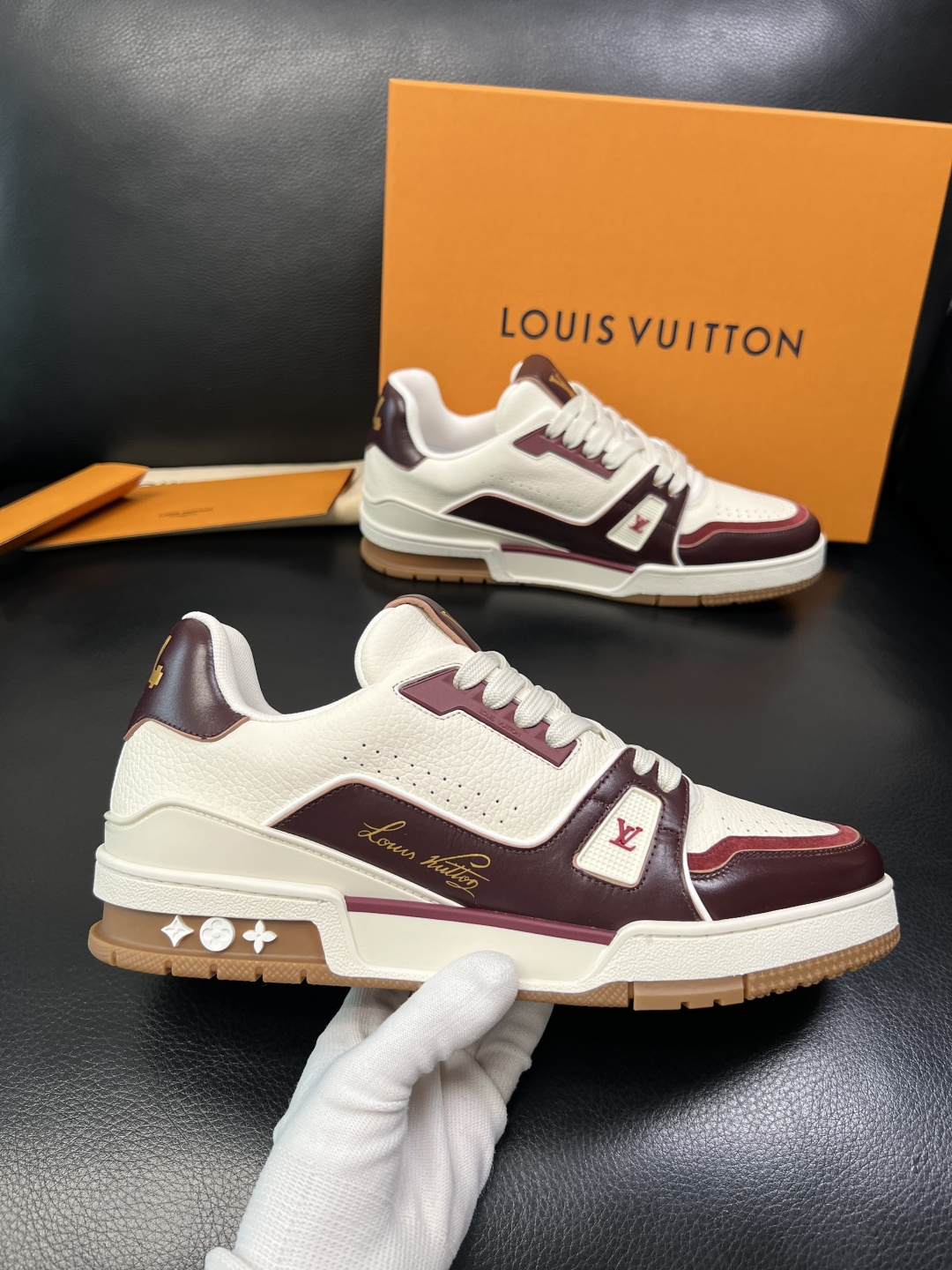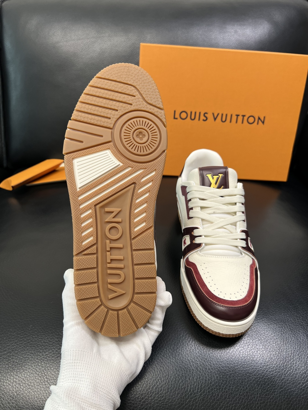 這款鞋子是AAAAA 1:1 質量(非常棒). 使用了和原版一模一樣的材料. 商標部分也保持了和路易威登/Louis Vuitton一樣. 圖片拍攝是實物鞋子拍攝, 您所收到的實物保證和我們圖片一模一樣.