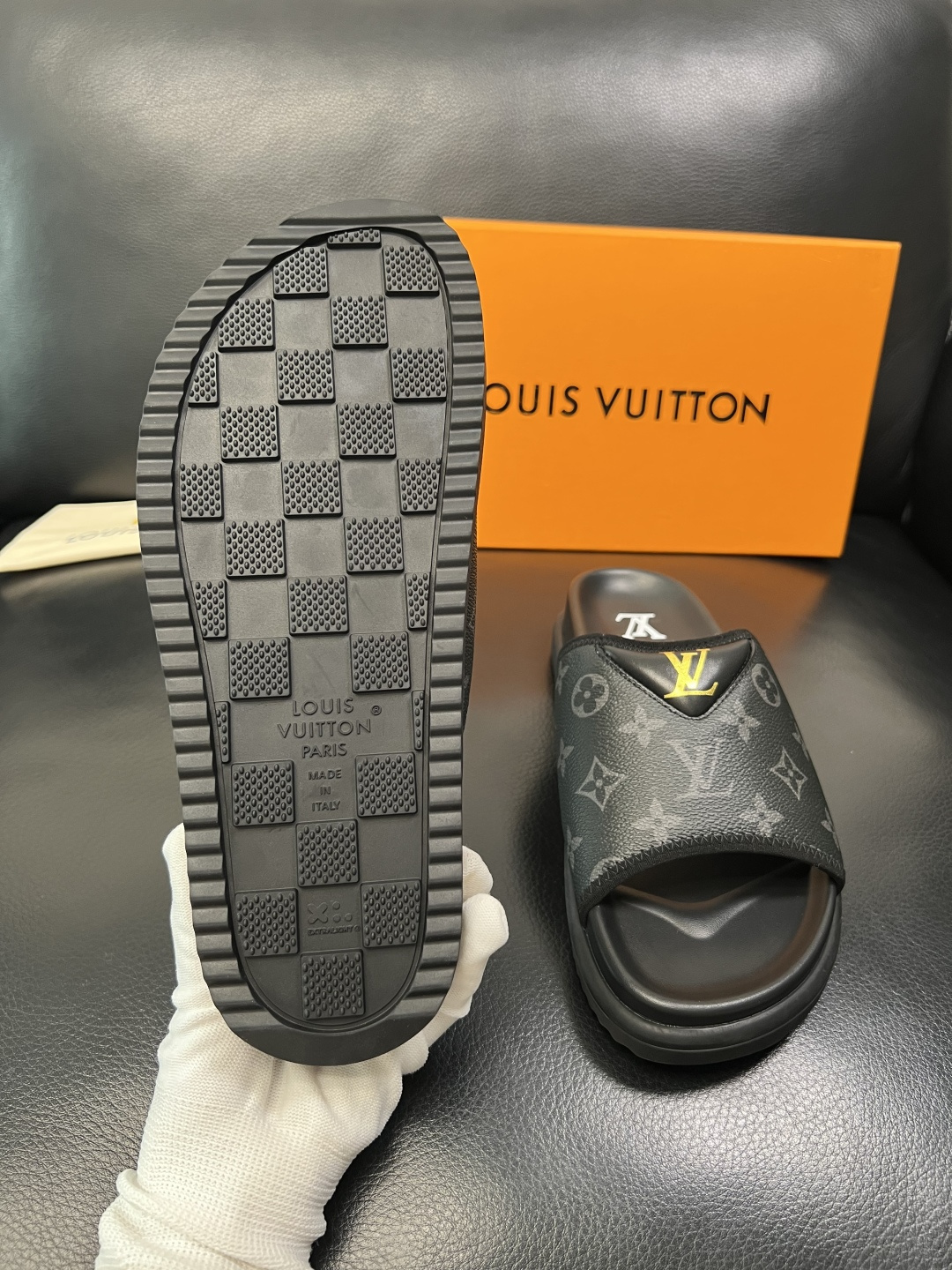 這款鞋子是AAAAA 1:1 質量(非常棒). 使用了和原版一模一樣的材料. 商標部分也保持了和路易威登/Louis Vuitton一樣. 圖片拍攝是實物鞋子拍攝, 您所收到的實物保證和我們圖片一模一樣.