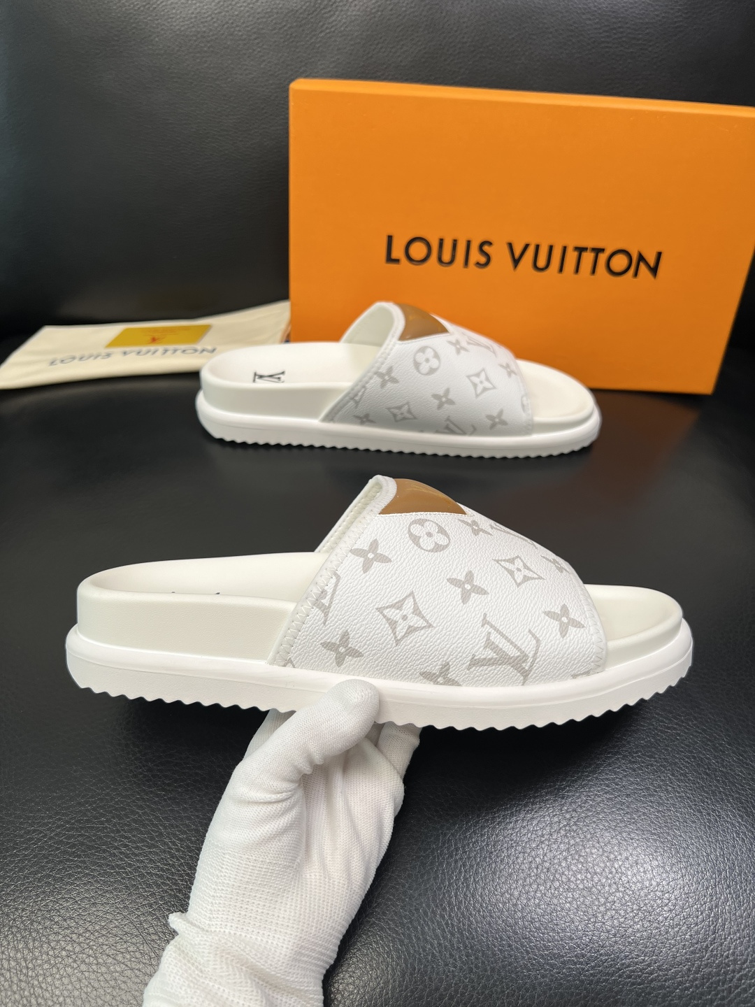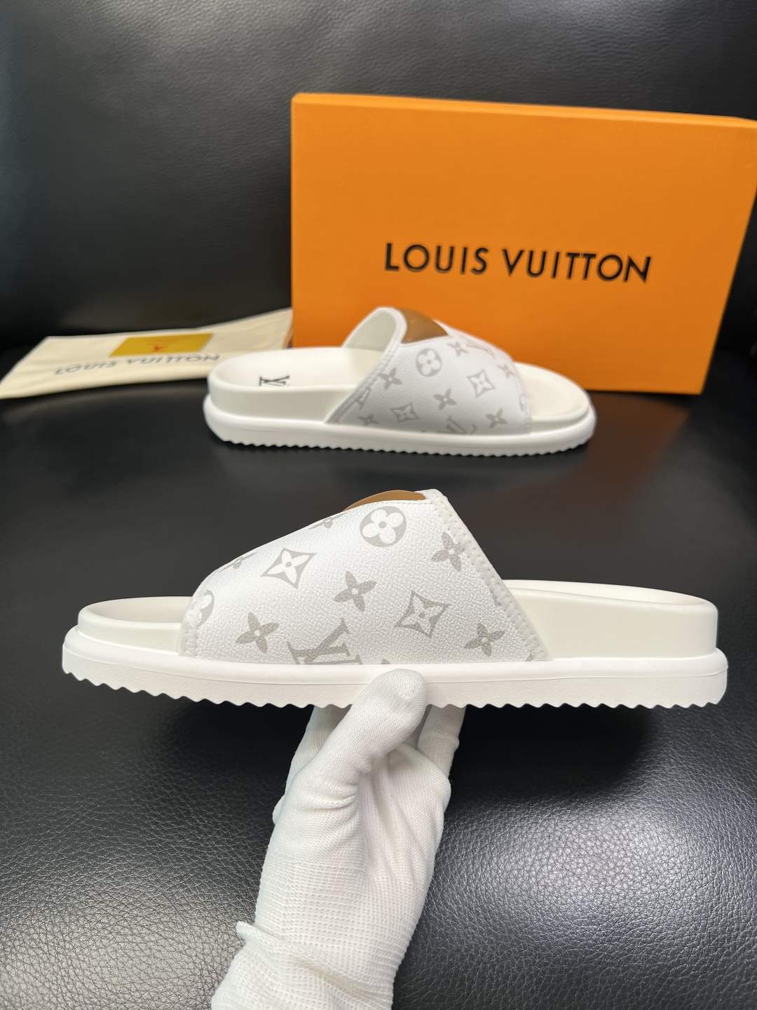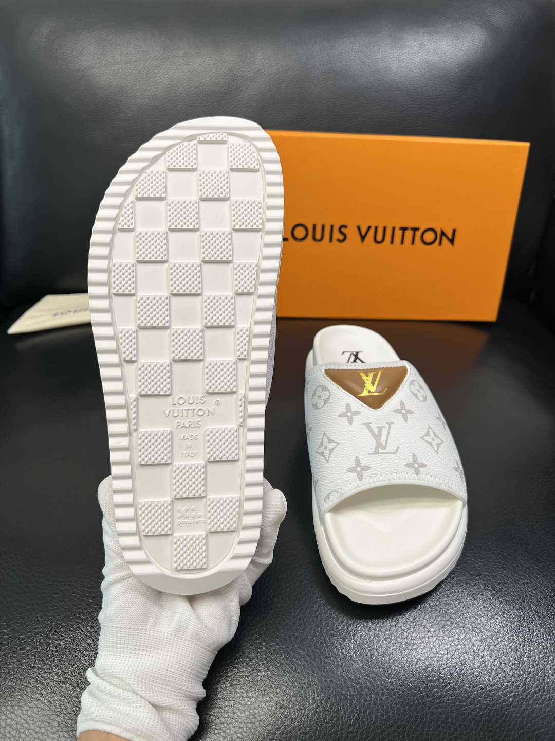 這款鞋子是AAAAA 1:1 質量(非常棒). 使用了和原版一模一樣的材料. 商標部分也保持了和路易威登/Louis Vuitton一樣. 圖片拍攝是實物鞋子拍攝, 您所收到的實物保證和我們圖片一模一樣.