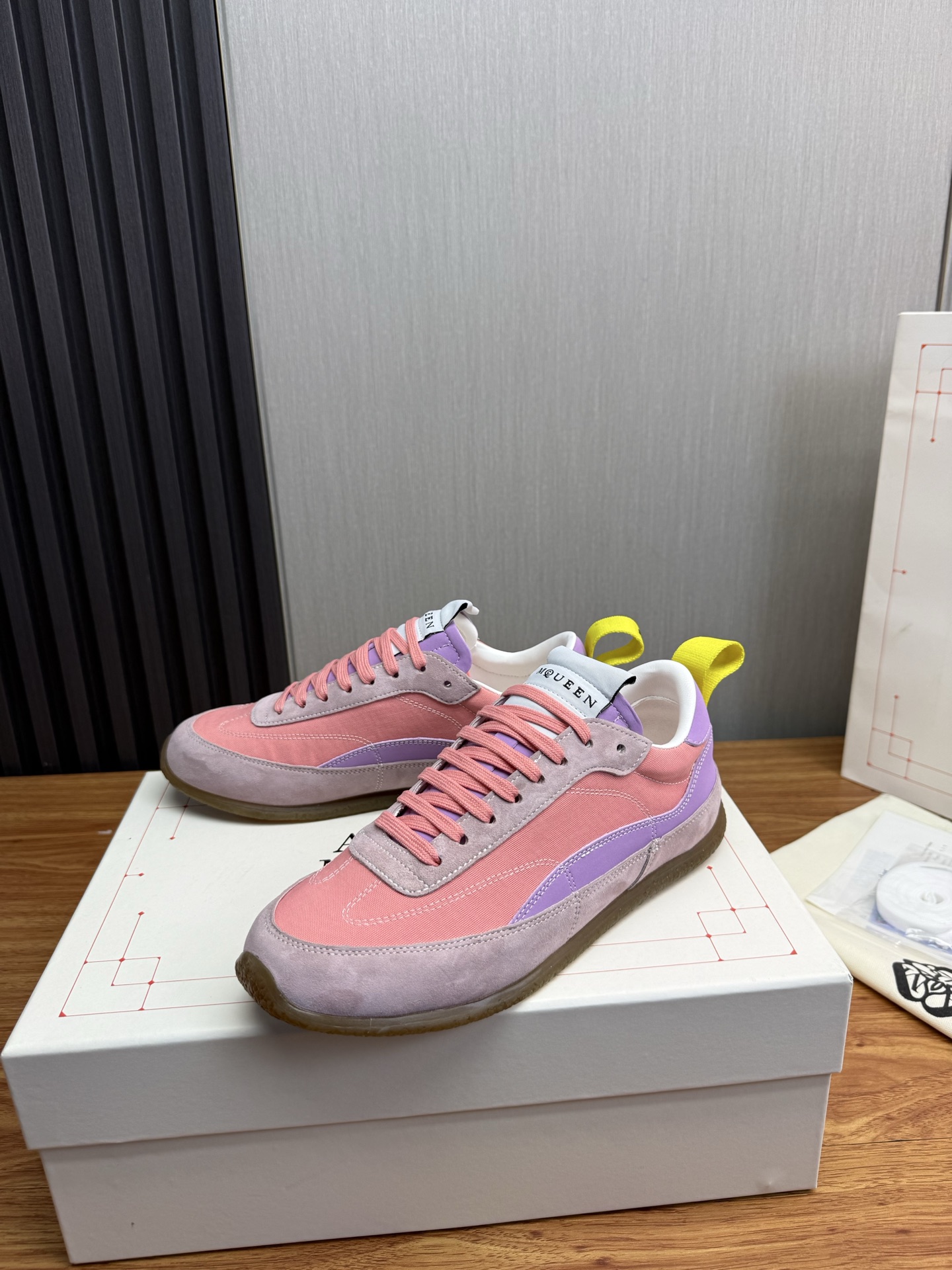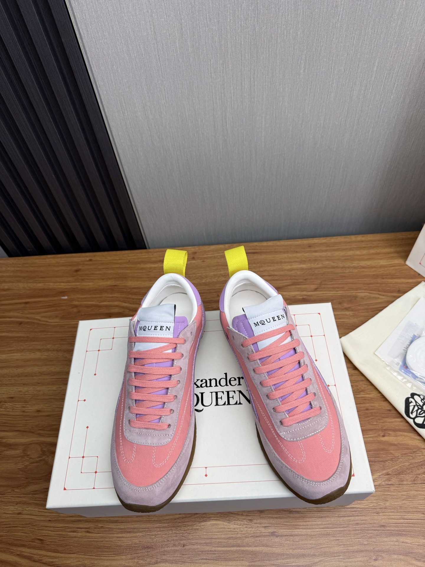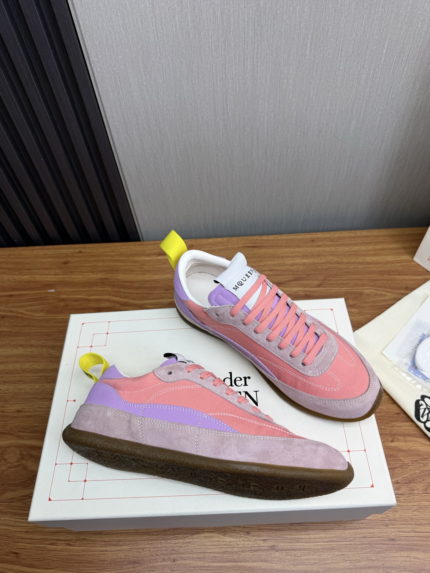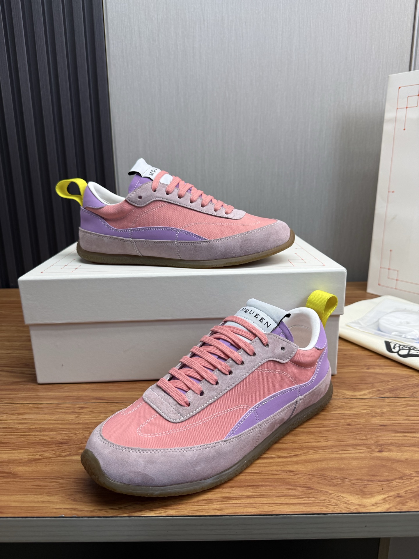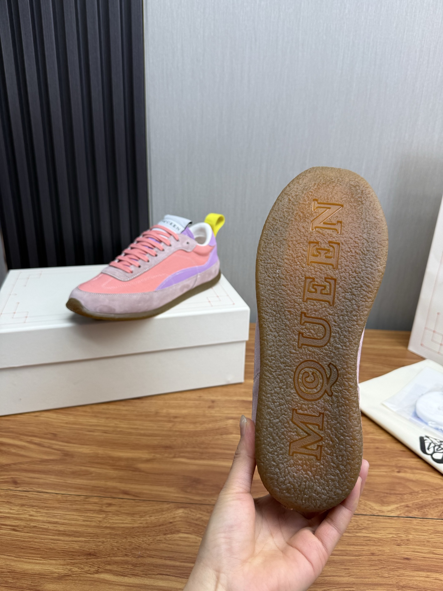 這款鞋子是AAAAA 1:1 質量(非常棒). 使用了和原版一模一樣的材料. 商標部分也保持了和麥奎恩/McQueen一樣. 圖片拍攝是實物鞋子拍攝, 您所收到的實物保證和我們圖片一模一樣.