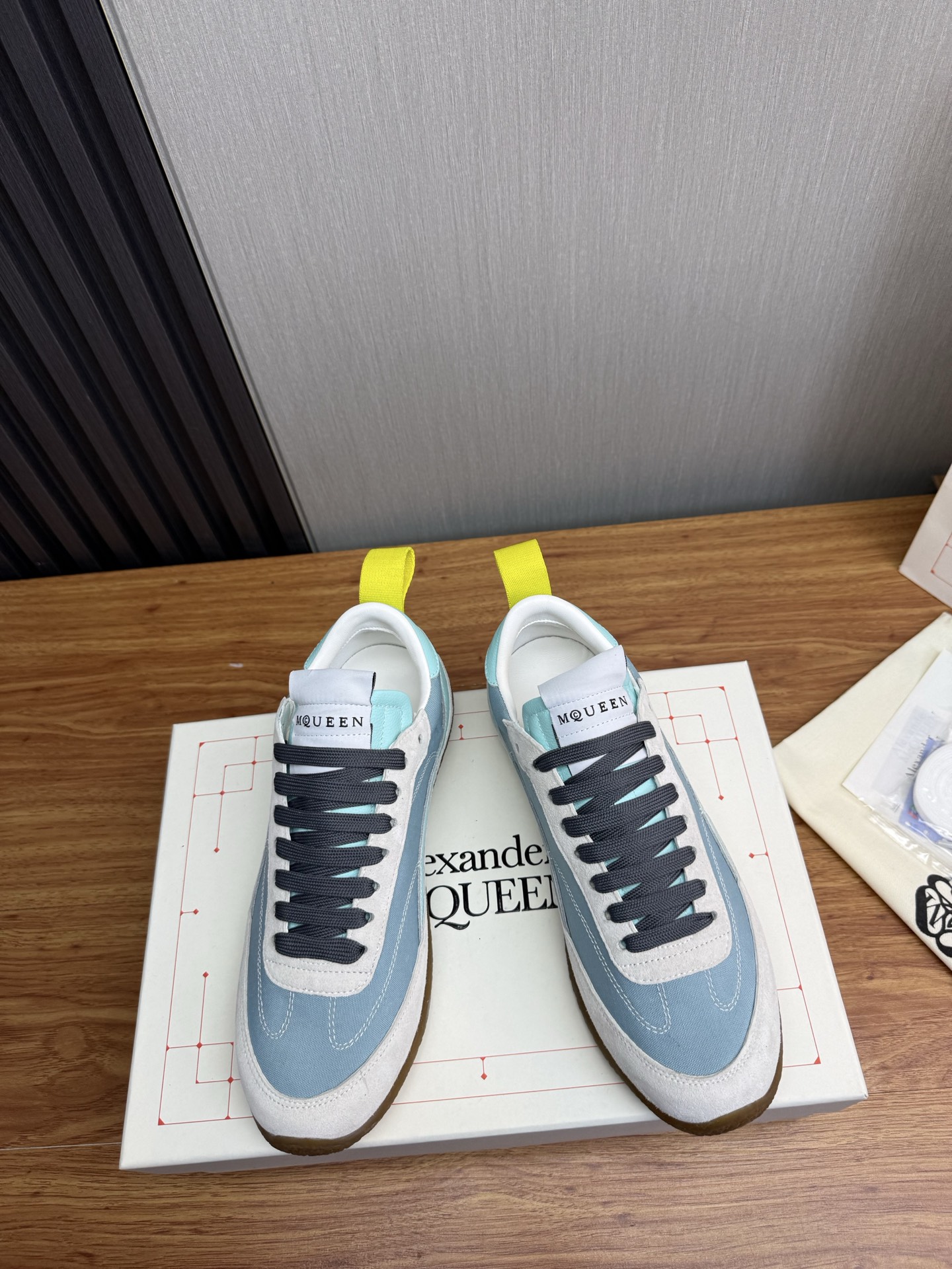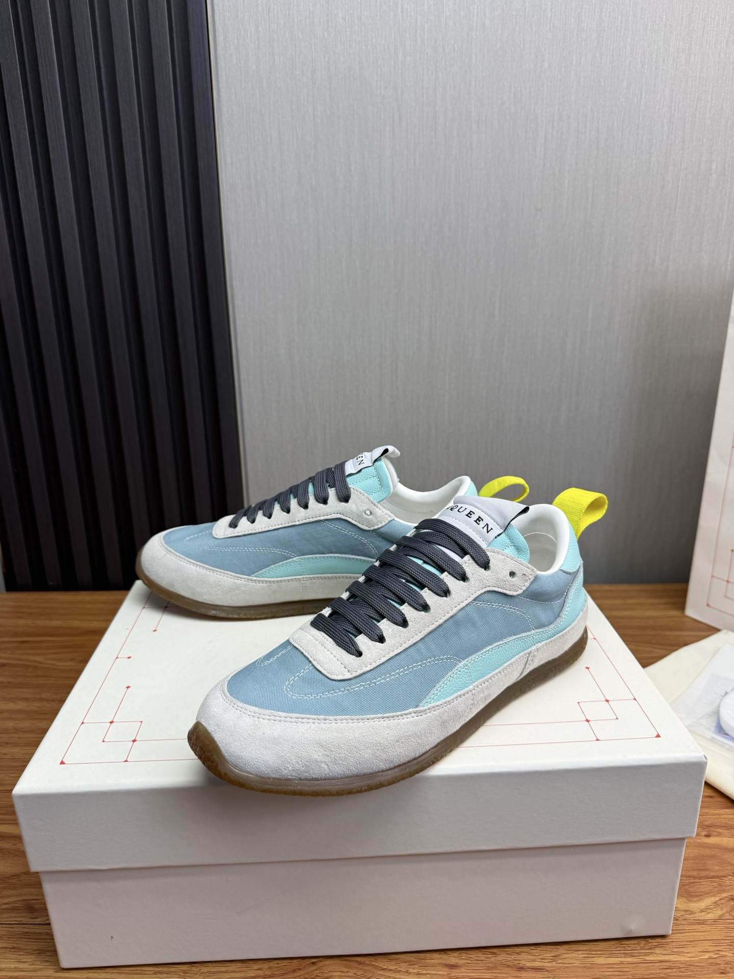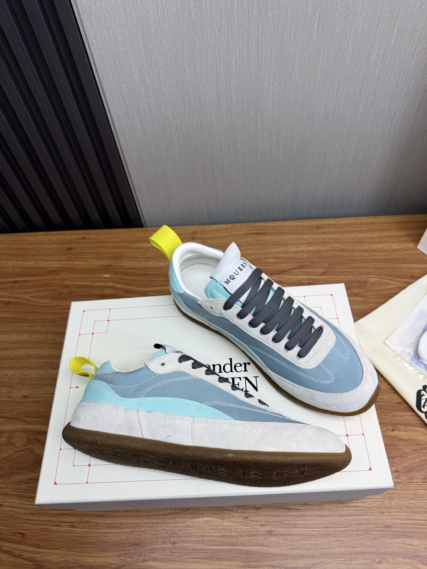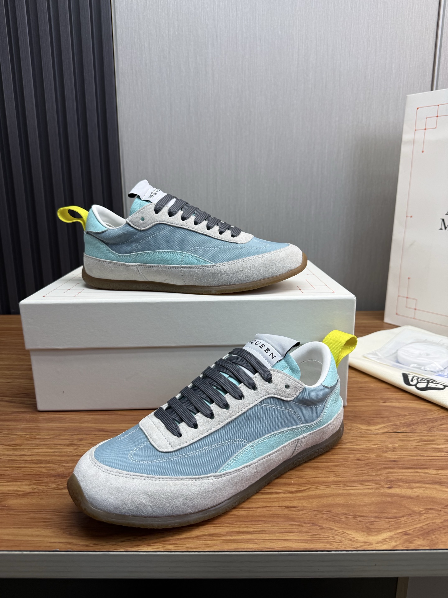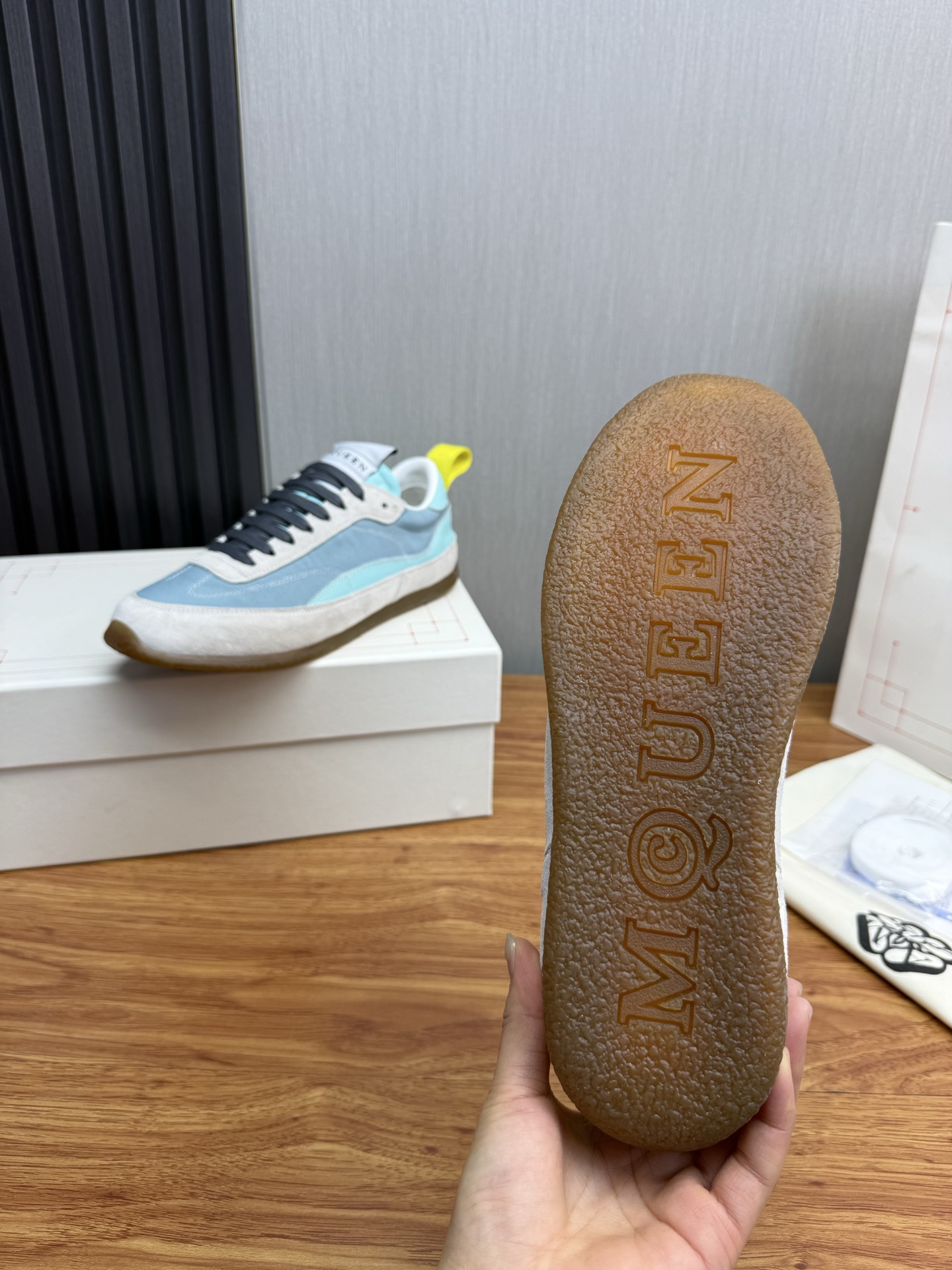這款鞋子是AAAAA 1:1 質量(非常棒). 使用了和原版一模一樣的材料. 商標部分也保持了和麥奎恩/McQueen一樣. 圖片拍攝是實物鞋子拍攝, 您所收到的實物保證和我們圖片一模一樣.