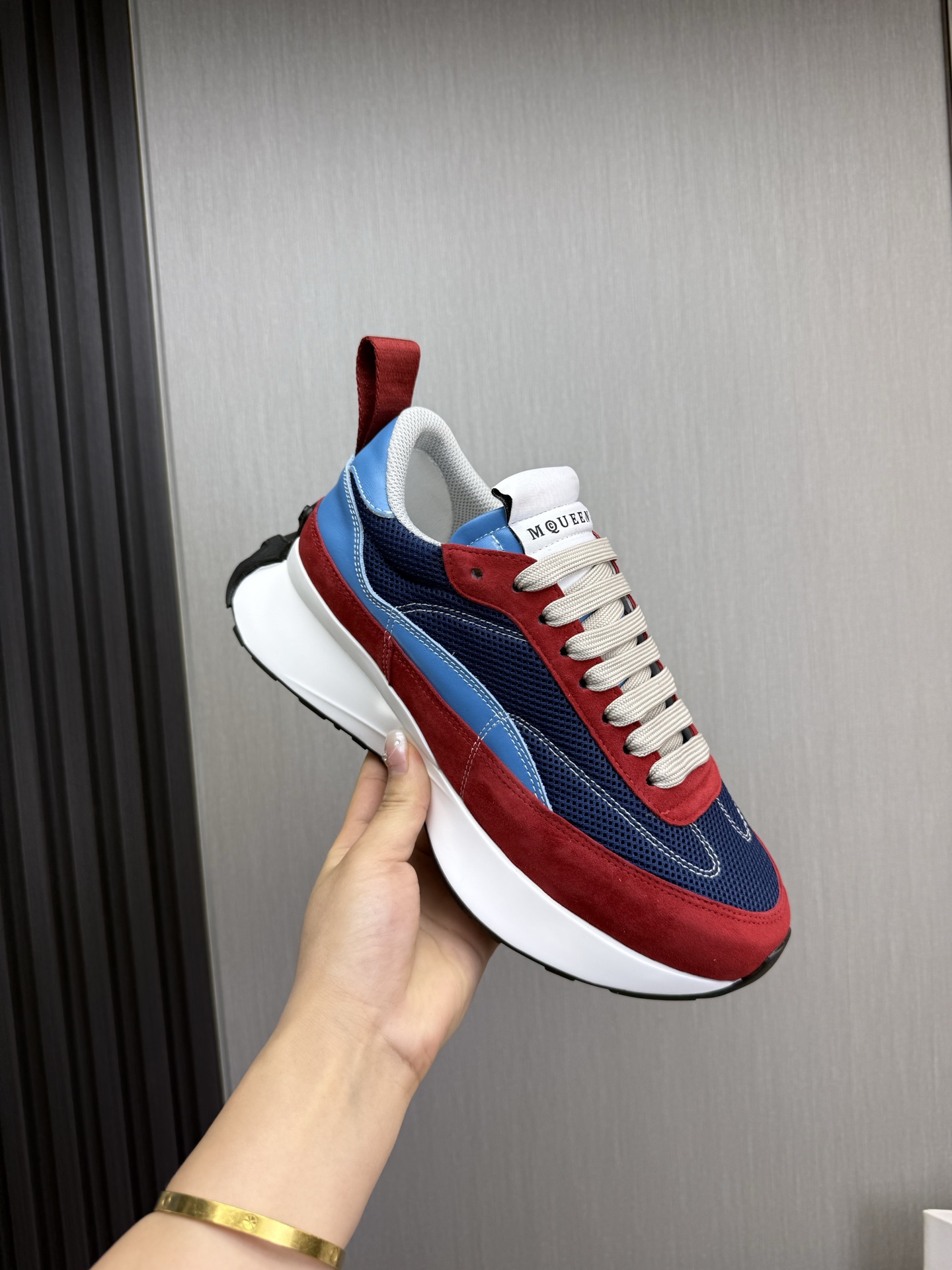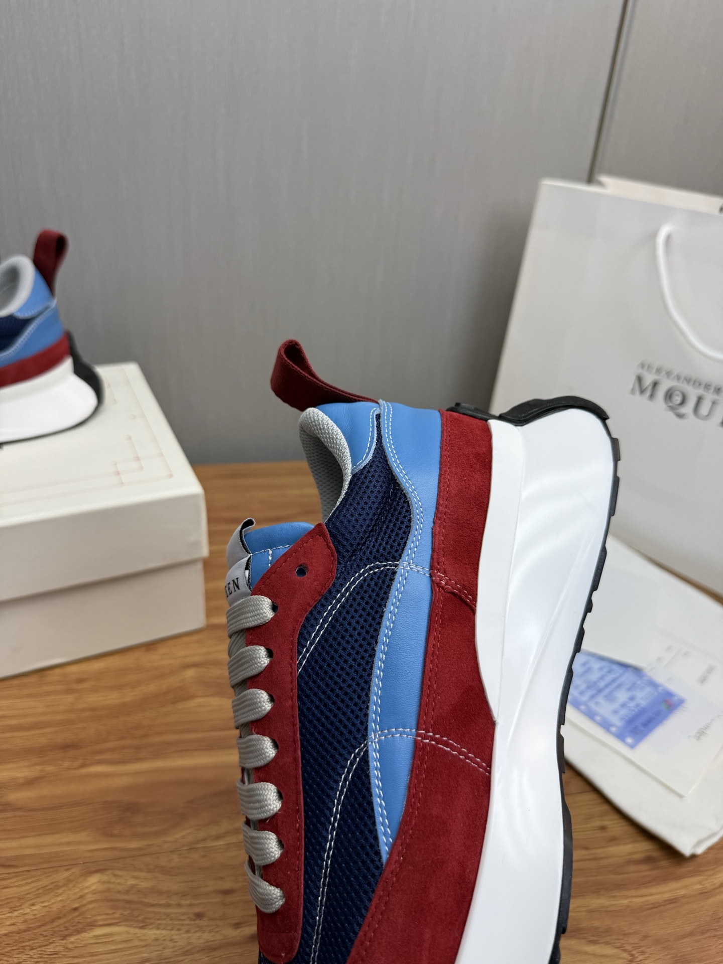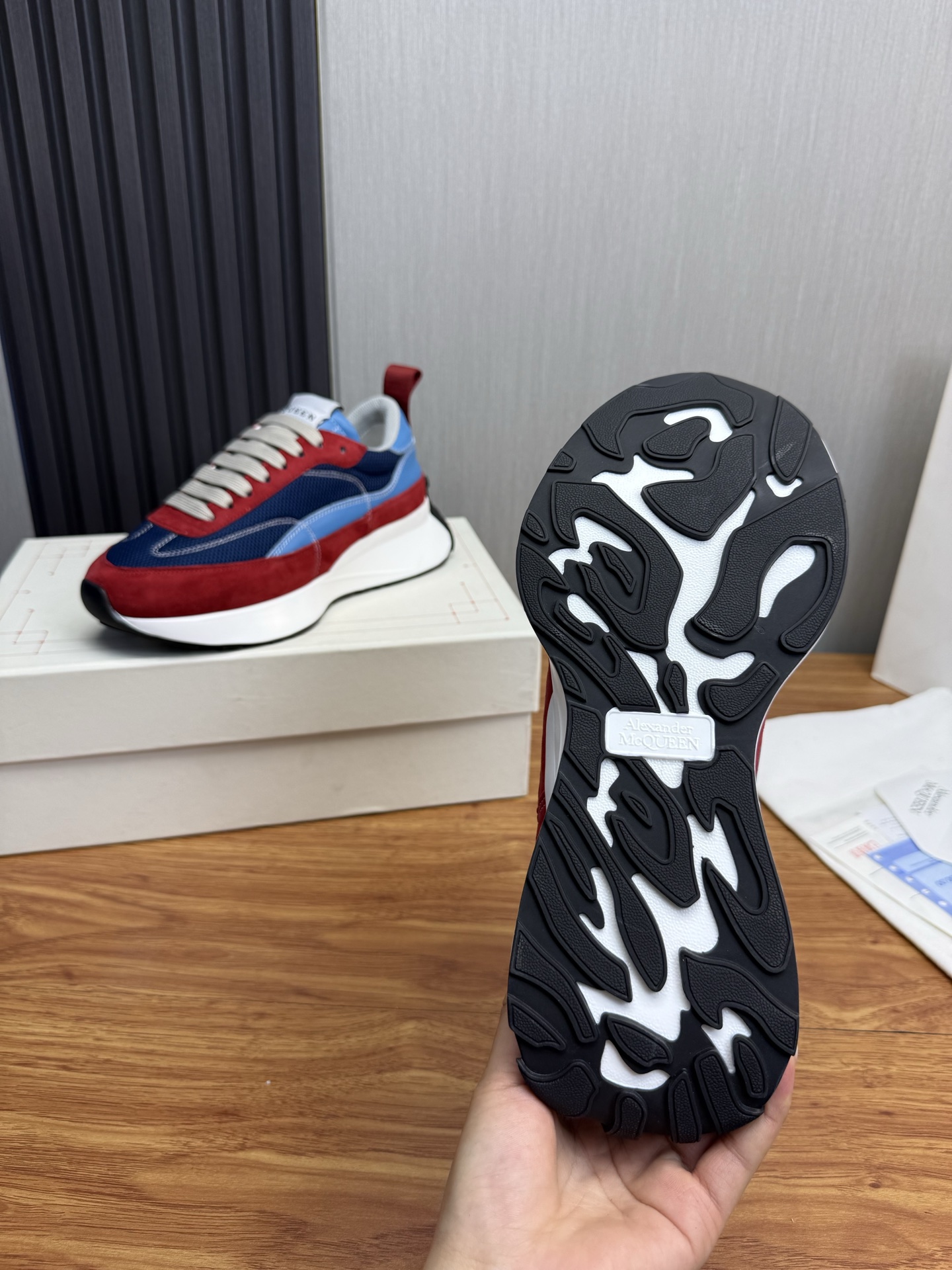 這款鞋子是AAAAA 1:1 質量(非常棒). 使用了和原版一模一樣的材料. 商標部分也保持了和麥奎恩/McQueen一樣. 圖片拍攝是實物鞋子拍攝, 您所收到的實物保證和我們圖片一模一樣.