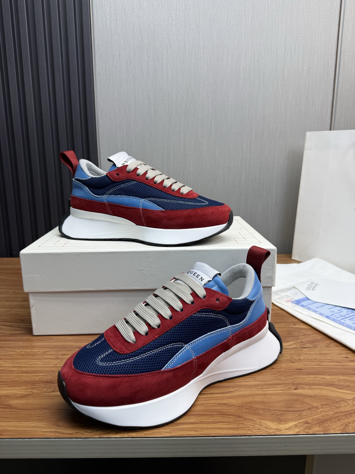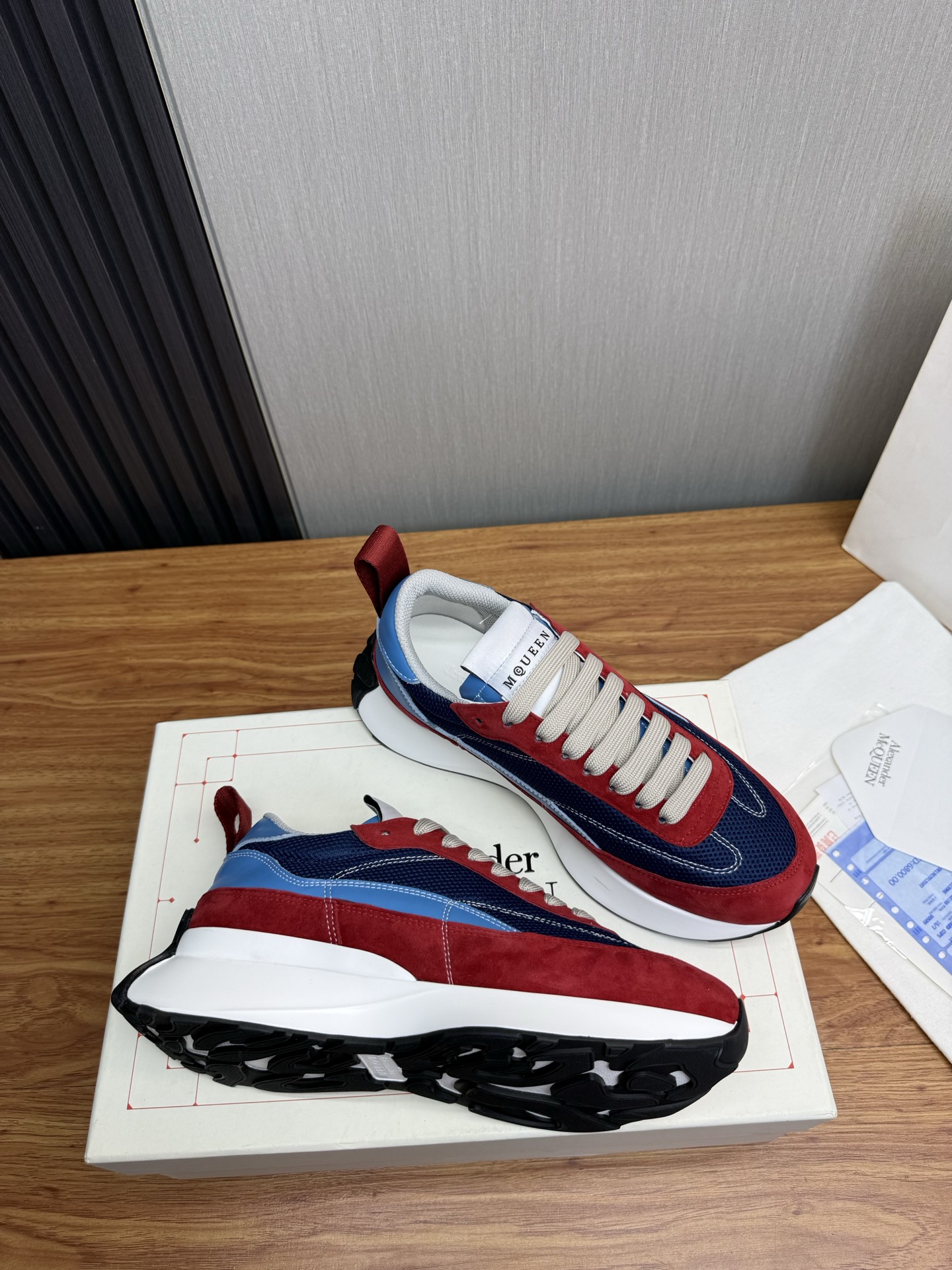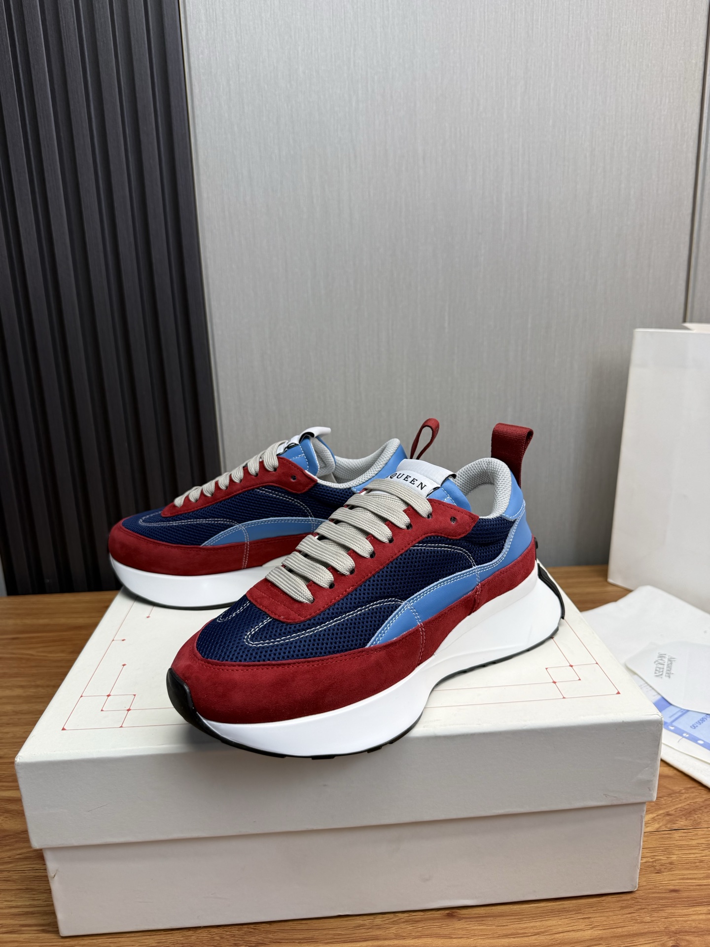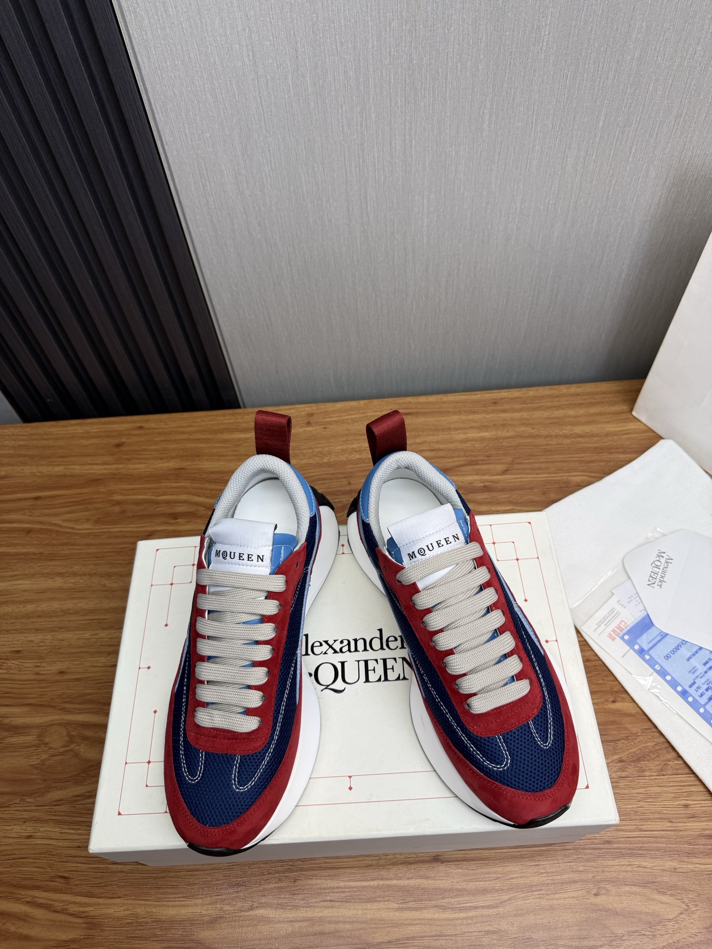 這款鞋子是AAAAA 1:1 質量(非常棒). 使用了和原版一模一樣的材料. 商標部分也保持了和麥奎恩/McQueen一樣. 圖片拍攝是實物鞋子拍攝, 您所收到的實物保證和我們圖片一模一樣.