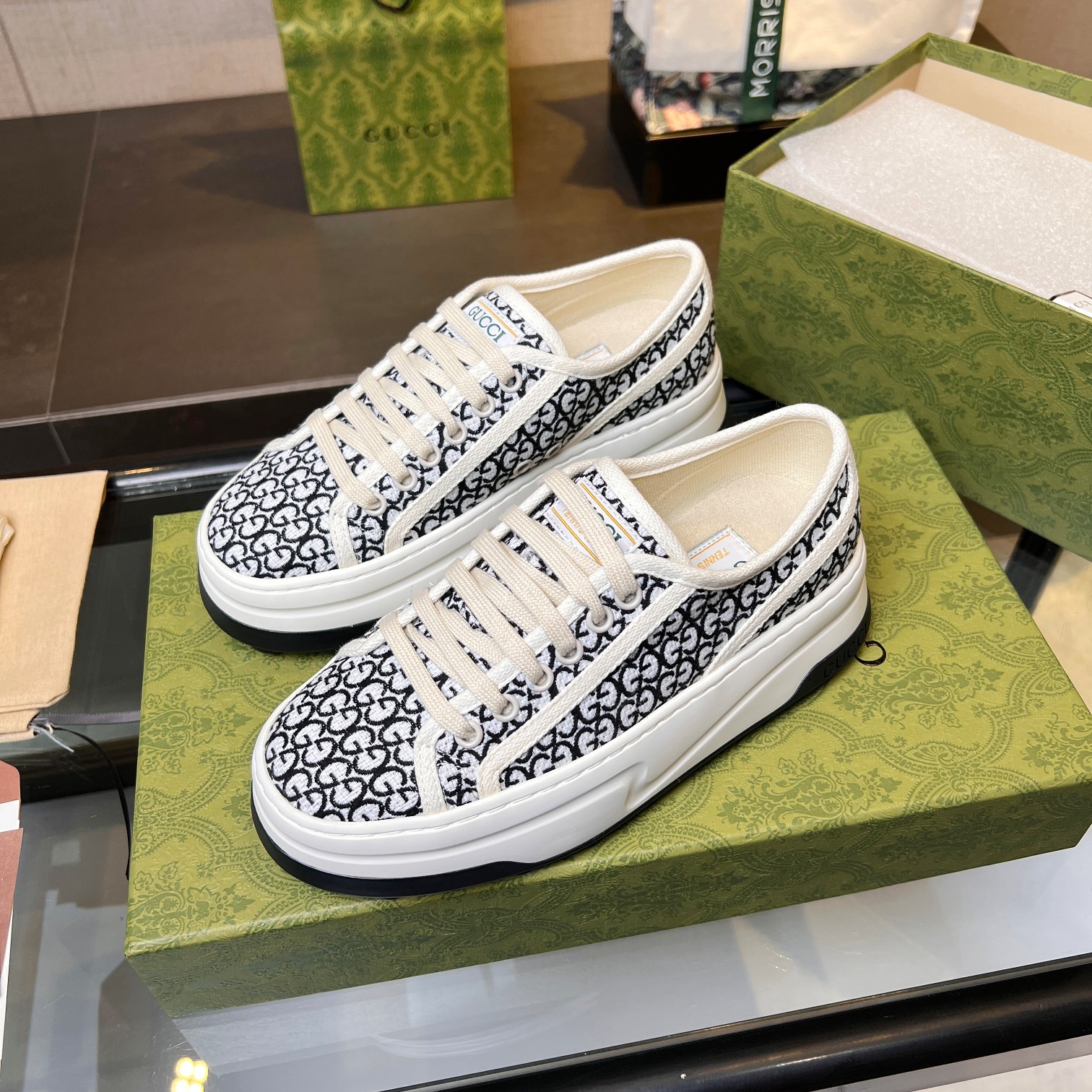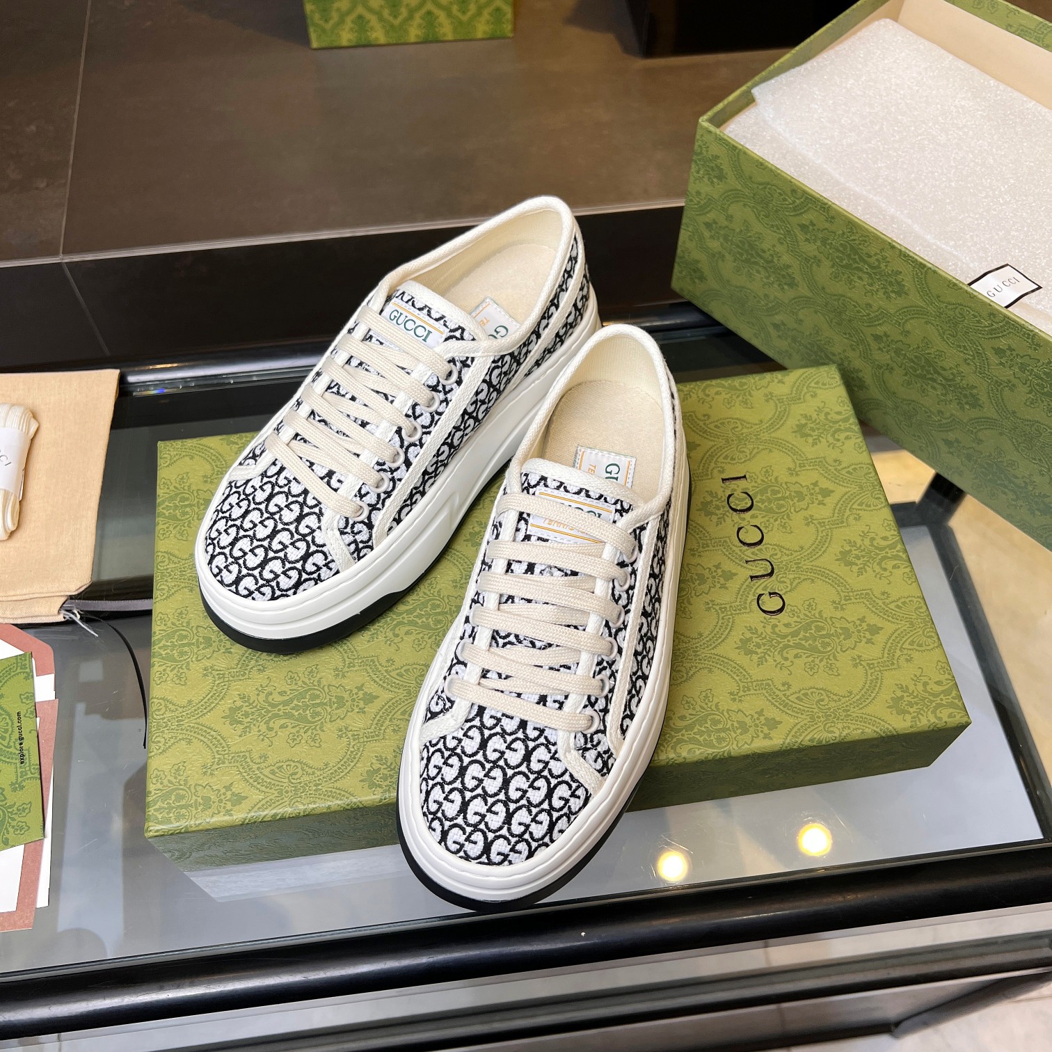 這款鞋子是AAAAA 1:1 質量(非常棒). 使用了和原版一模一樣的材料. 商標部分也保持了和古奇/Gucci一樣. 圖片拍攝是實物鞋子拍攝, 您所收到的實物保證和我們圖片一模一樣.