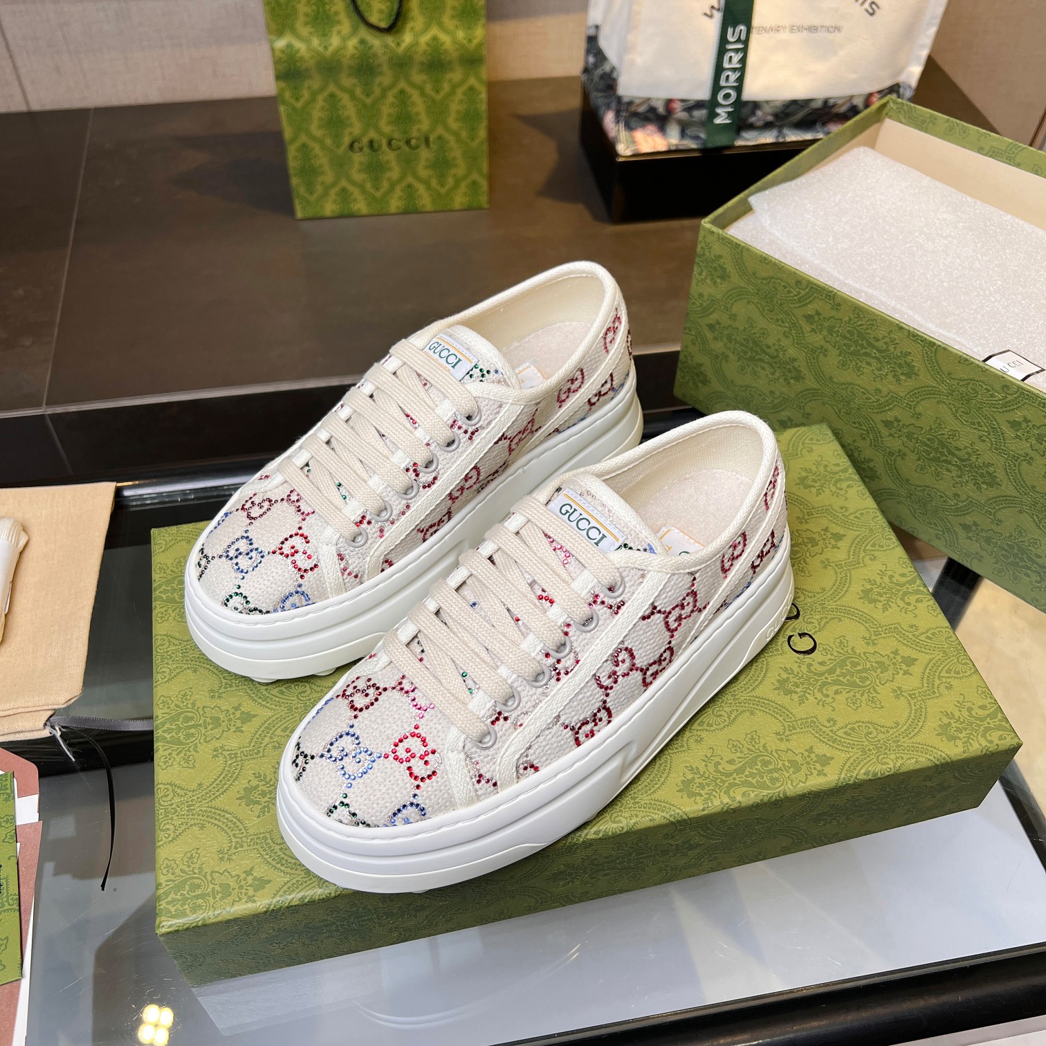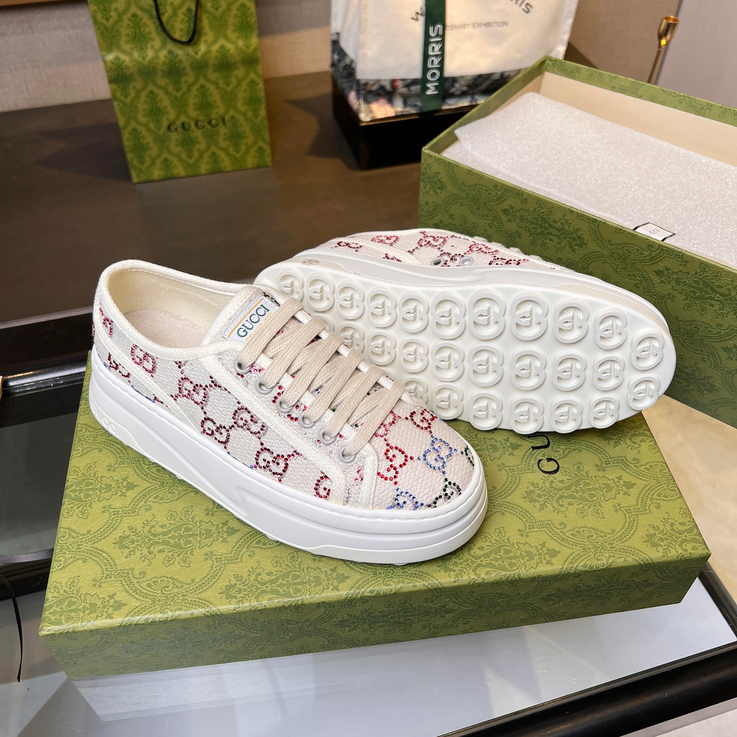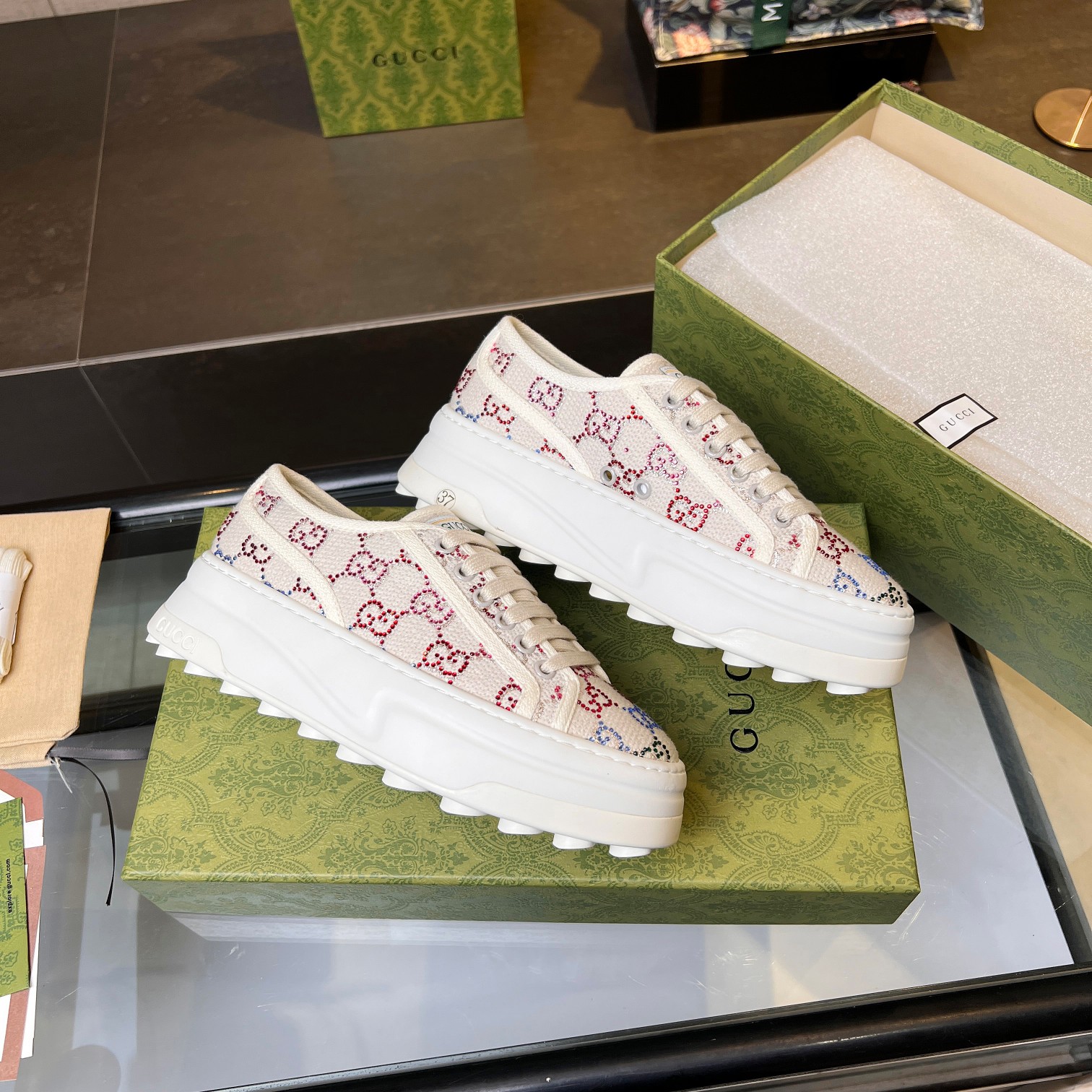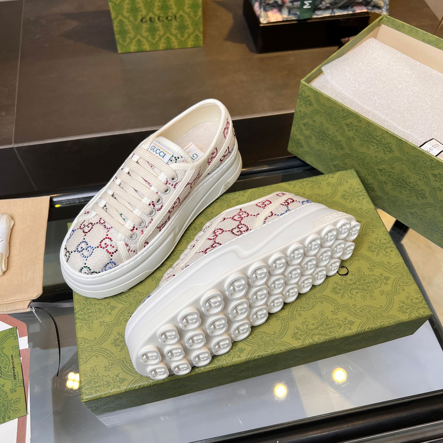 這款鞋子是AAAAA 1:1 質量(非常棒). 使用了和原版一模一樣的材料. 商標部分也保持了和古奇/Gucci一樣. 圖片拍攝是實物鞋子拍攝, 您所收到的實物保證和我們圖片一模一樣.