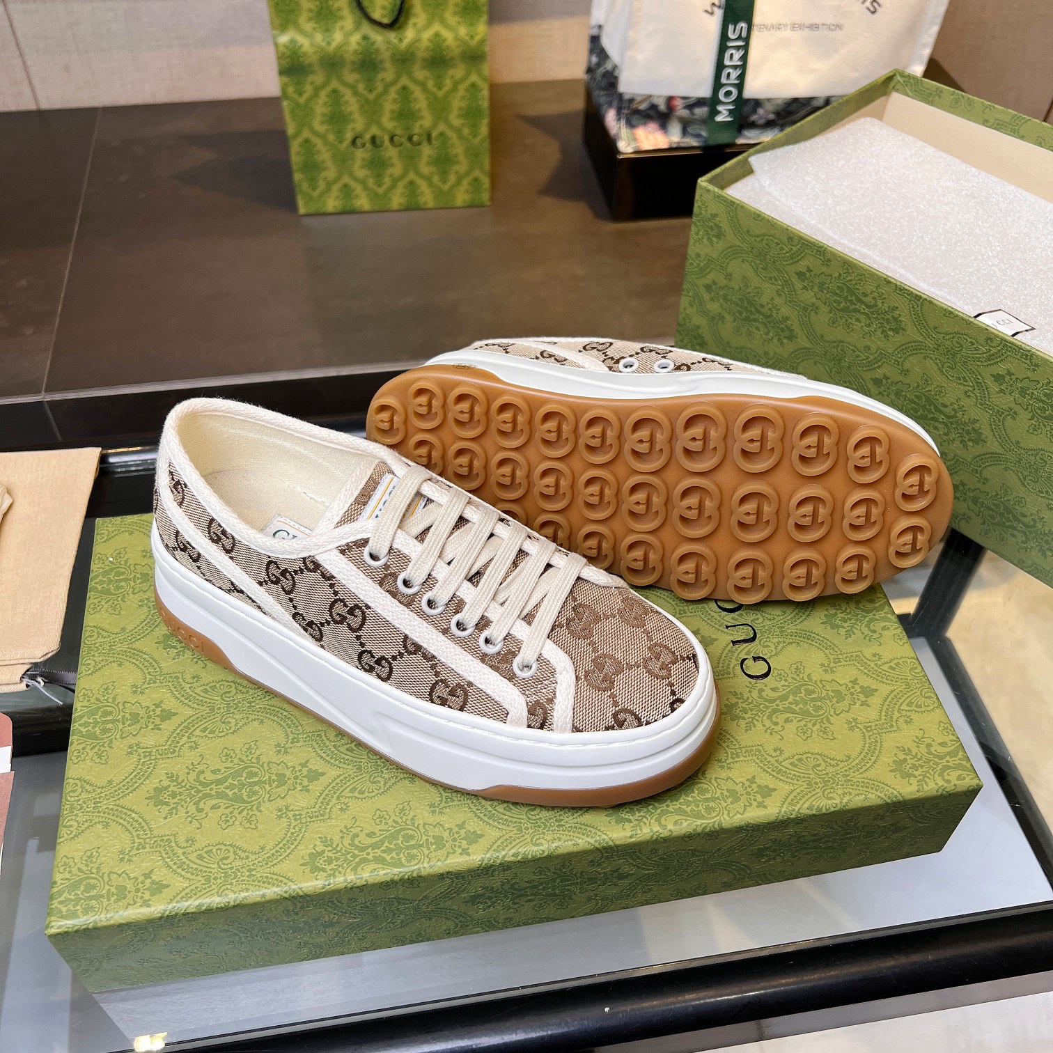 這款鞋子是AAAAA 1:1 質量(非常棒). 使用了和原版一模一樣的材料. 商標部分也保持了和古奇/Gucci一樣. 圖片拍攝是實物鞋子拍攝, 您所收到的實物保證和我們圖片一模一樣.