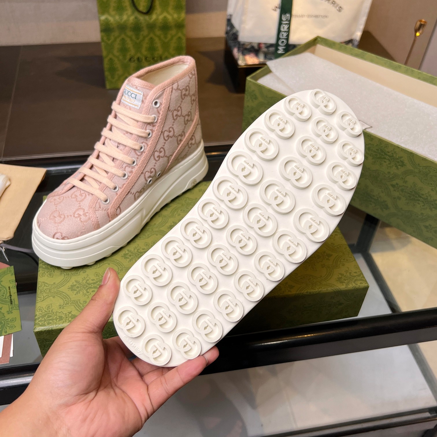 這款鞋子是AAAAA 1:1 質量(非常棒). 使用了和原版一模一樣的材料. 商標部分也保持了和古奇/Gucci一樣. 圖片拍攝是實物鞋子拍攝, 您所收到的實物保證和我們圖片一模一樣.