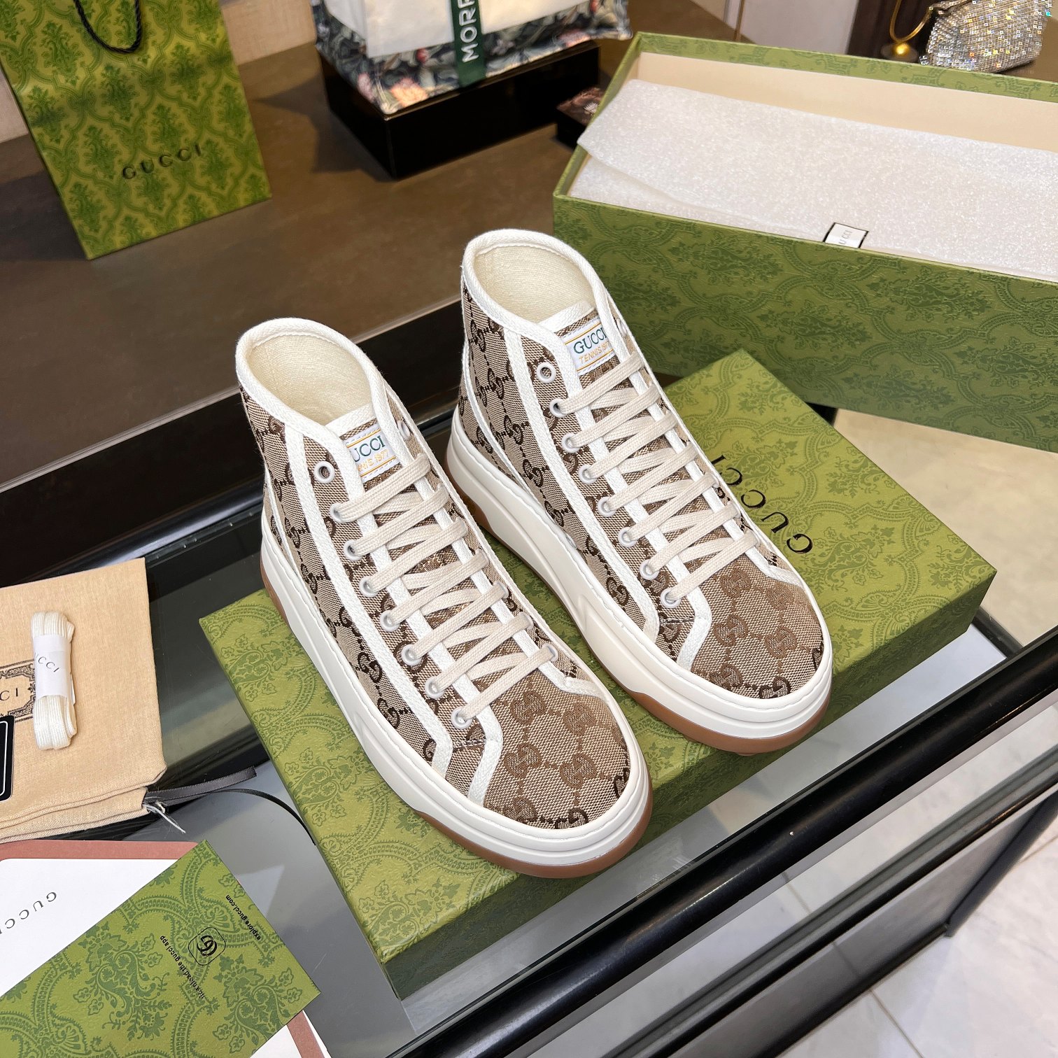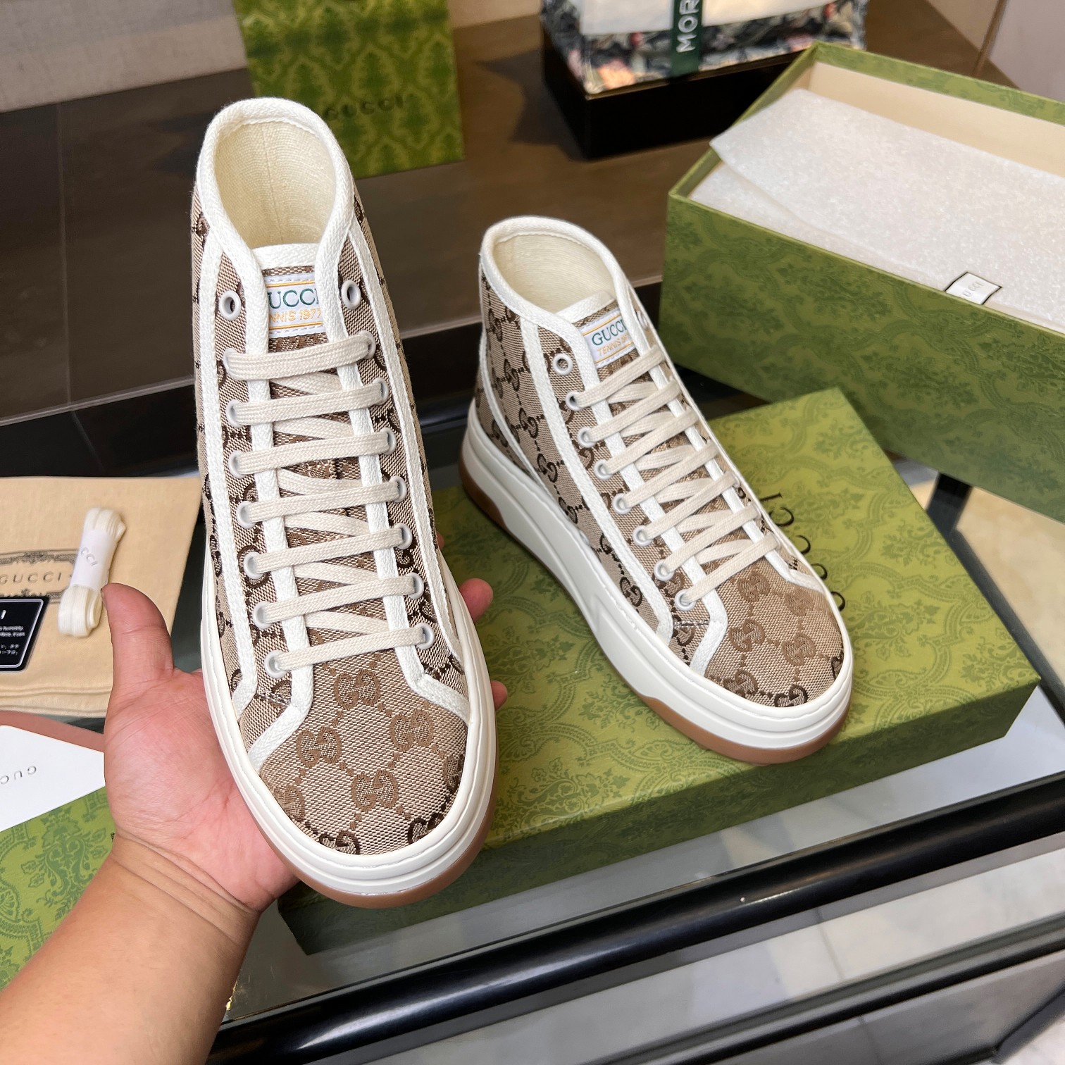 這款鞋子是AAAAA 1:1 質量(非常棒). 使用了和原版一模一樣的材料. 商標部分也保持了和古奇/Gucci一樣. 圖片拍攝是實物鞋子拍攝, 您所收到的實物保證和我們圖片一模一樣.