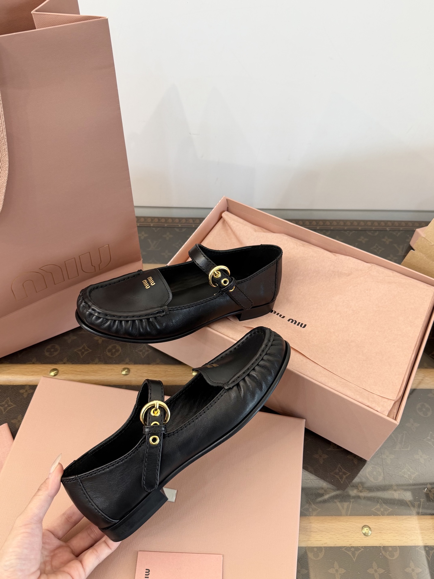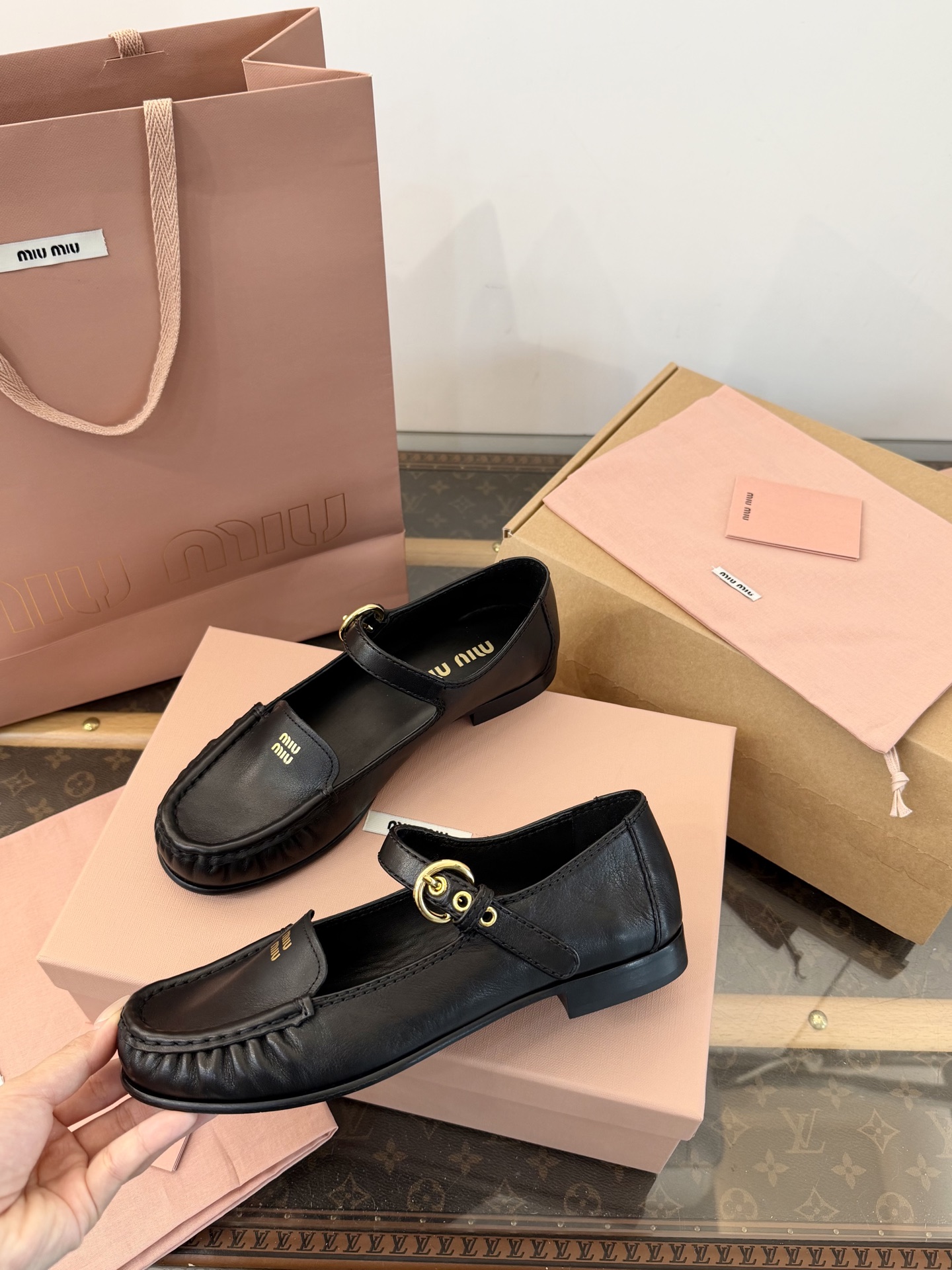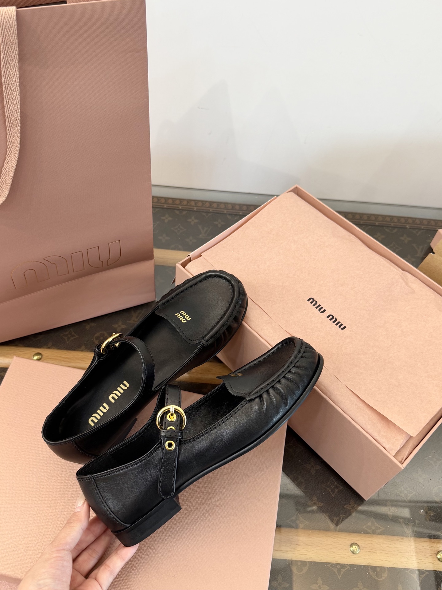 這款鞋子是AAAAA 1:1 質量(非常棒). 使用了和原版一模一樣的材料. 商標部分也保持了和繆繆/Miu Miu一樣. 圖片拍攝是實物鞋子拍攝, 您所收到的實物保證和我們圖片一模一樣.