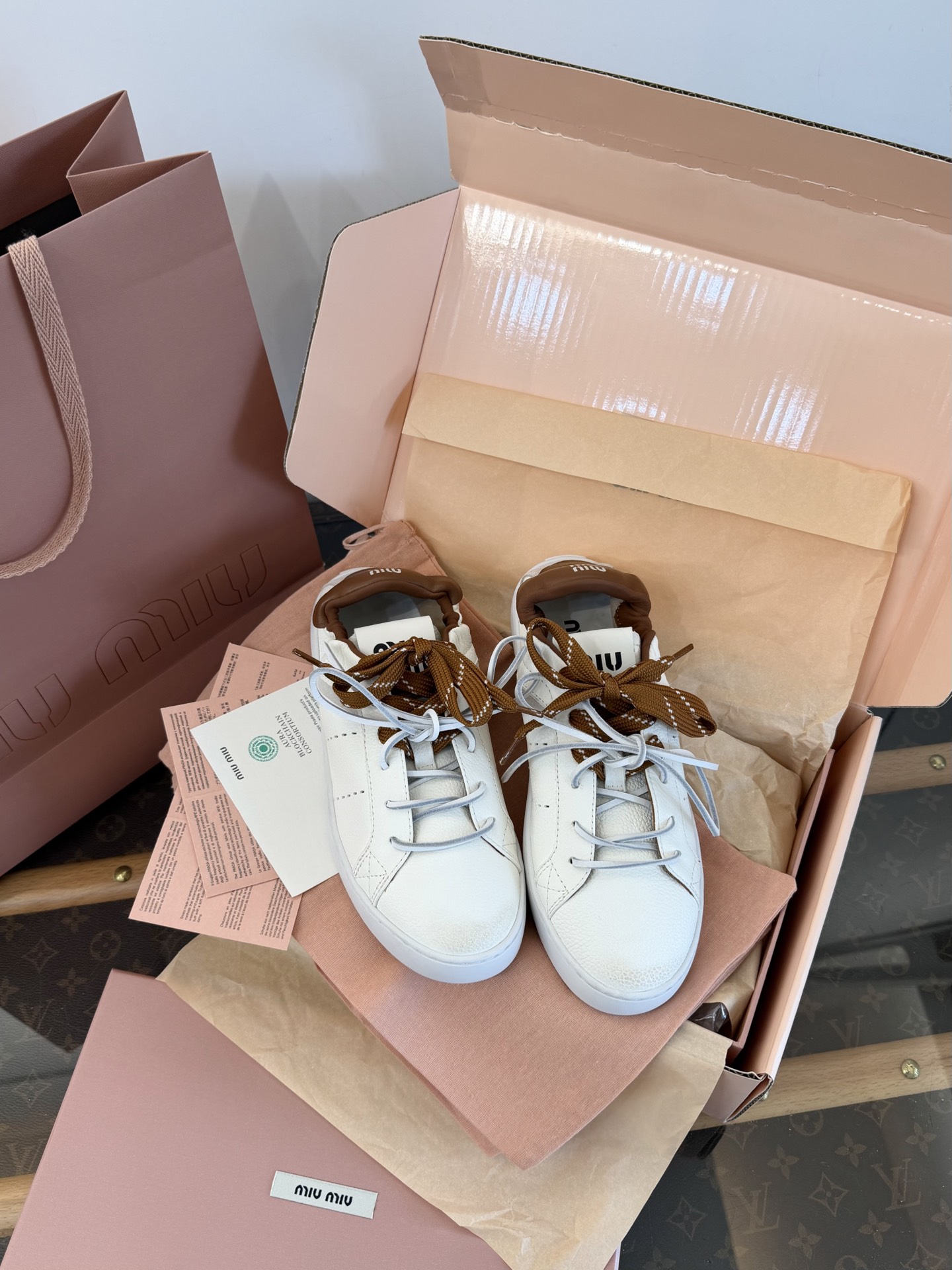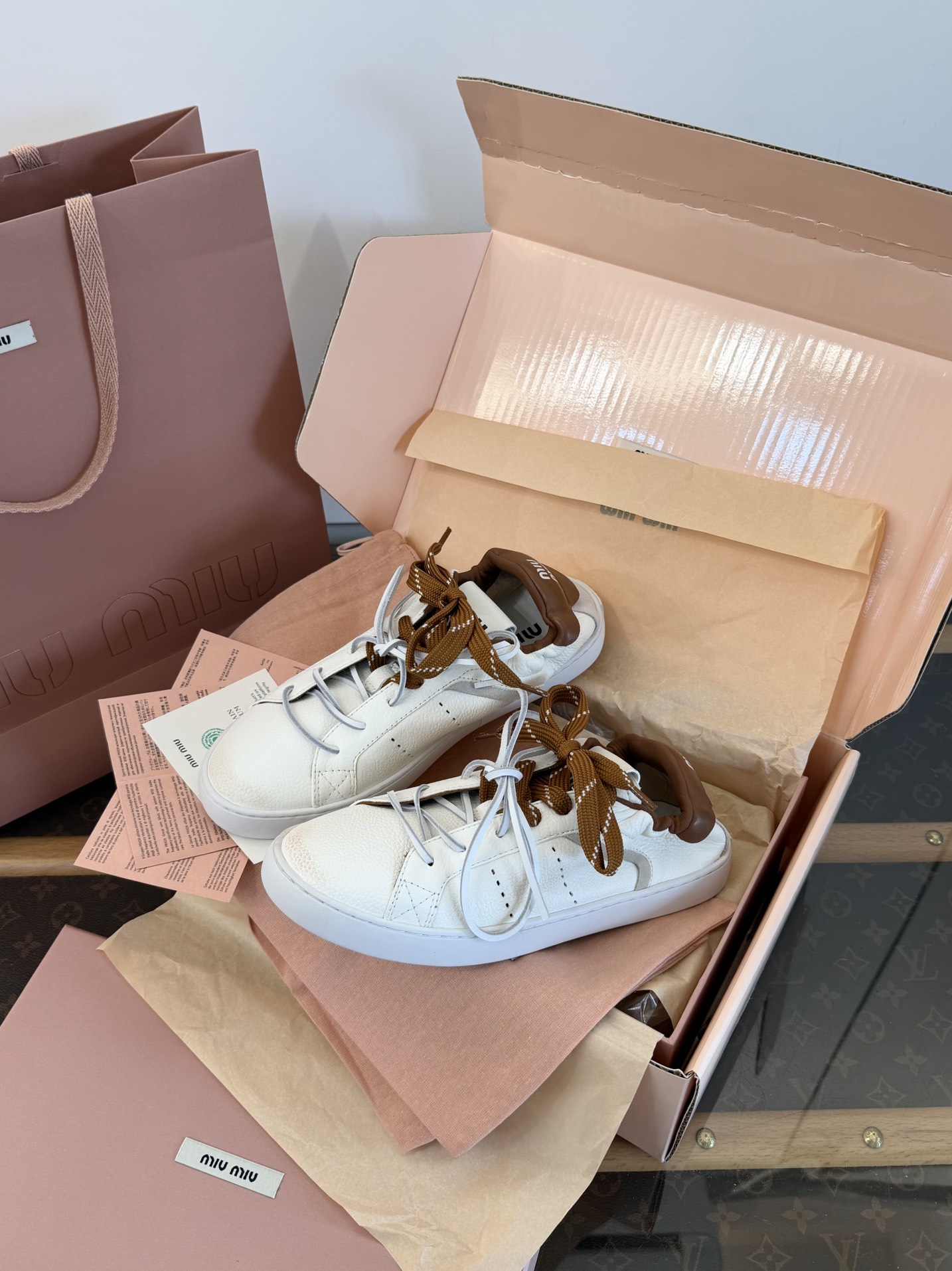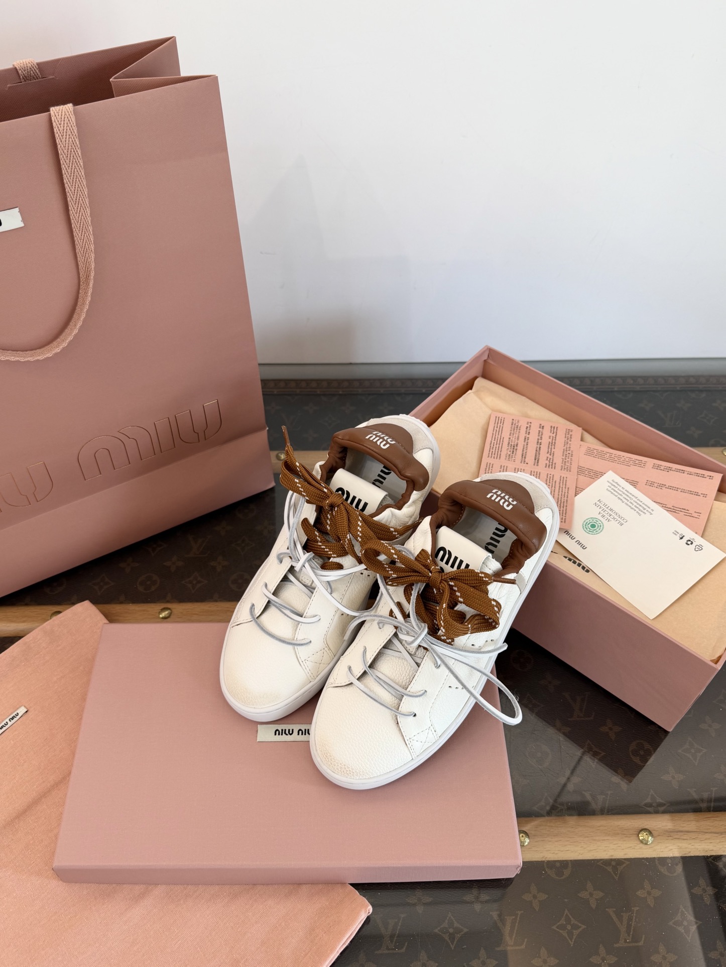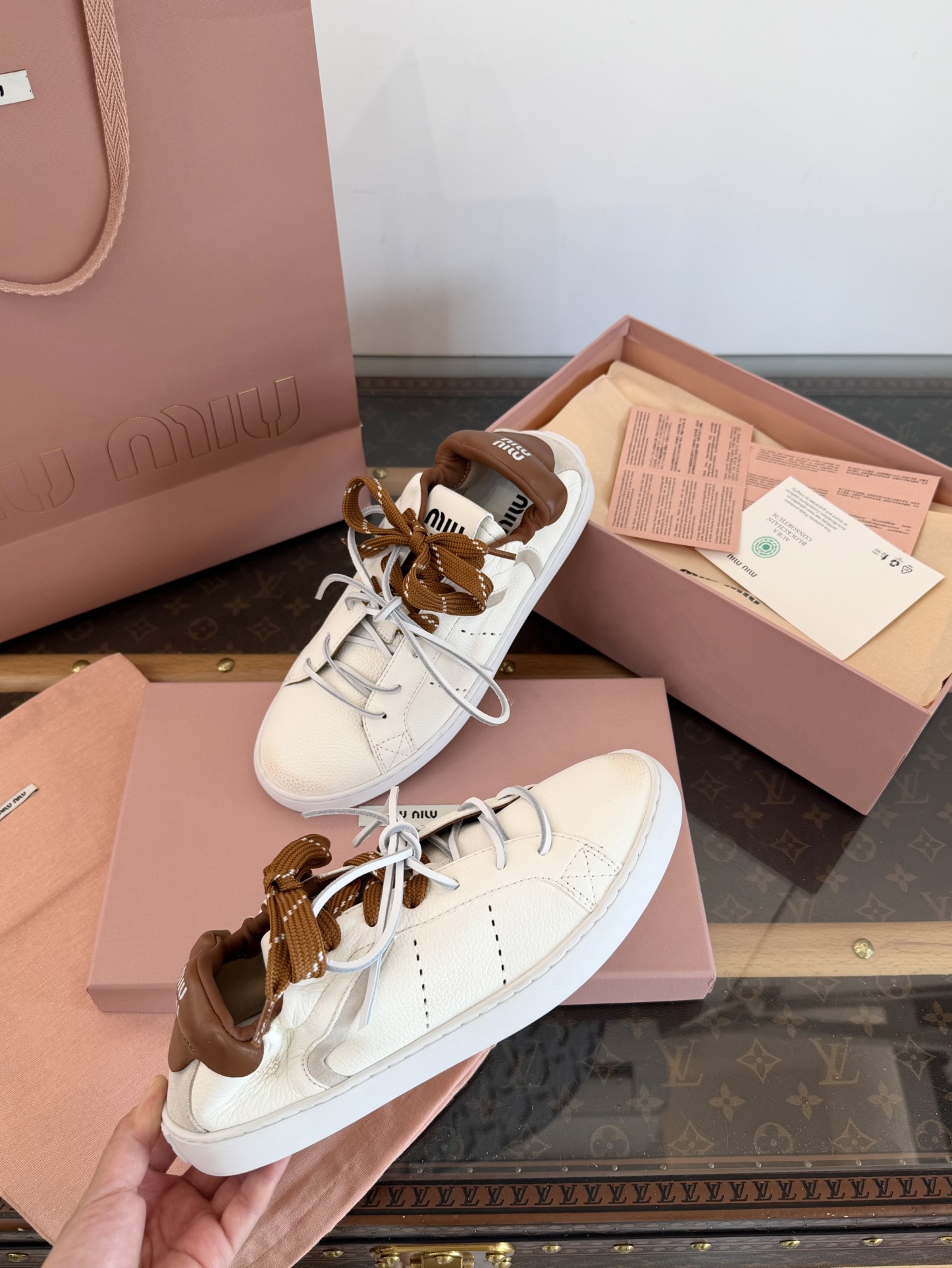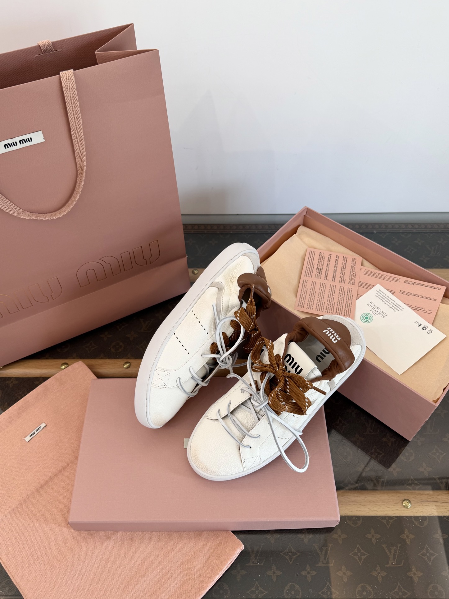這款鞋子是AAAAA 1:1 質量(非常棒). 使用了和原版一模一樣的材料. 商標部分也保持了和繆繆/Miu Miu一樣. 圖片拍攝是實物鞋子拍攝, 您所收到的實物保證和我們圖片一模一樣.