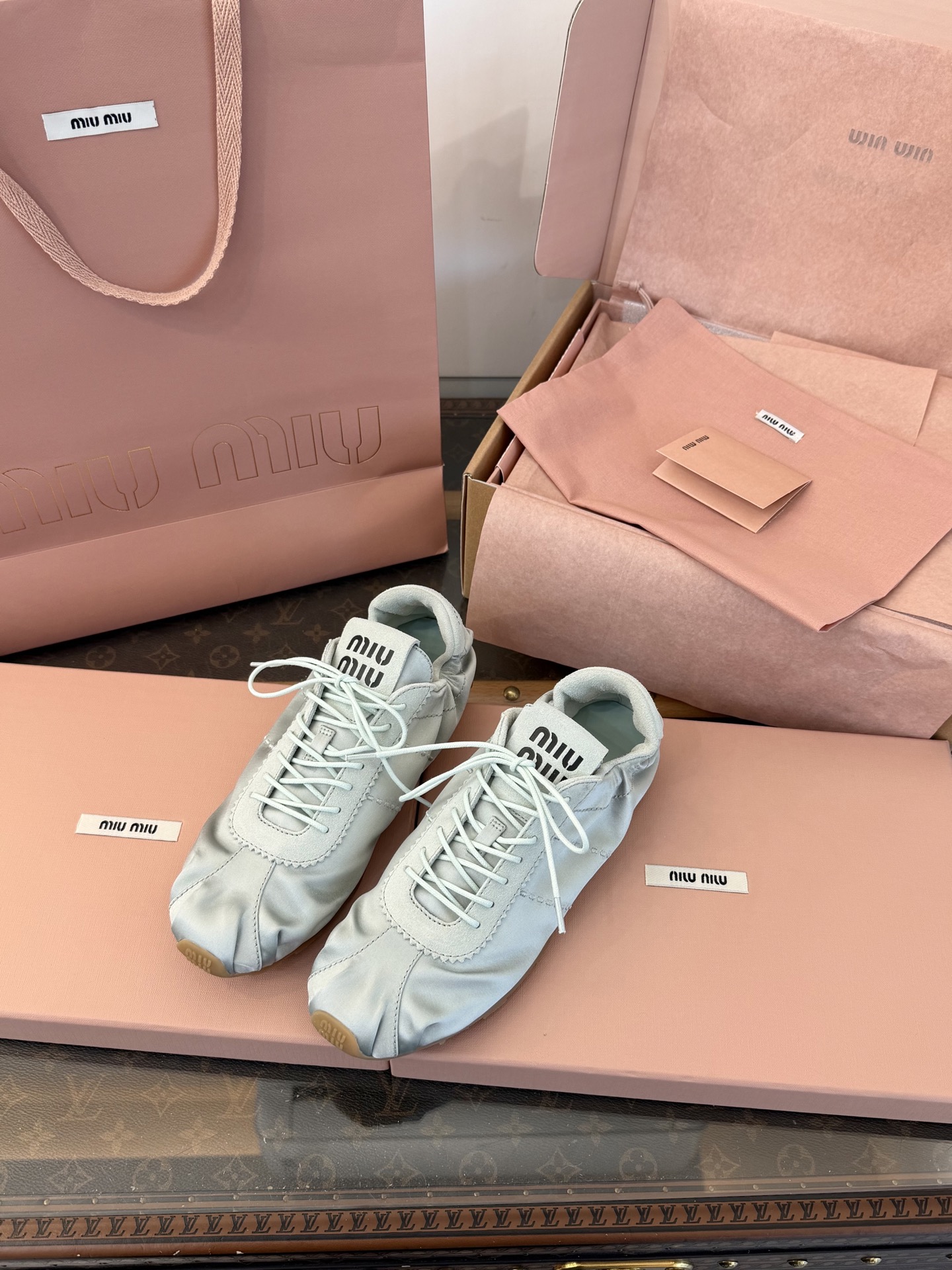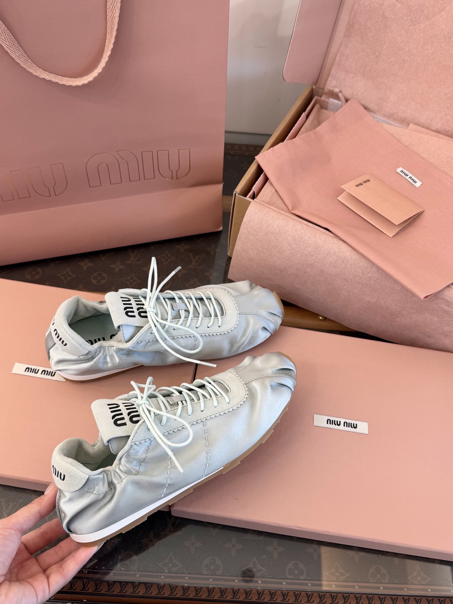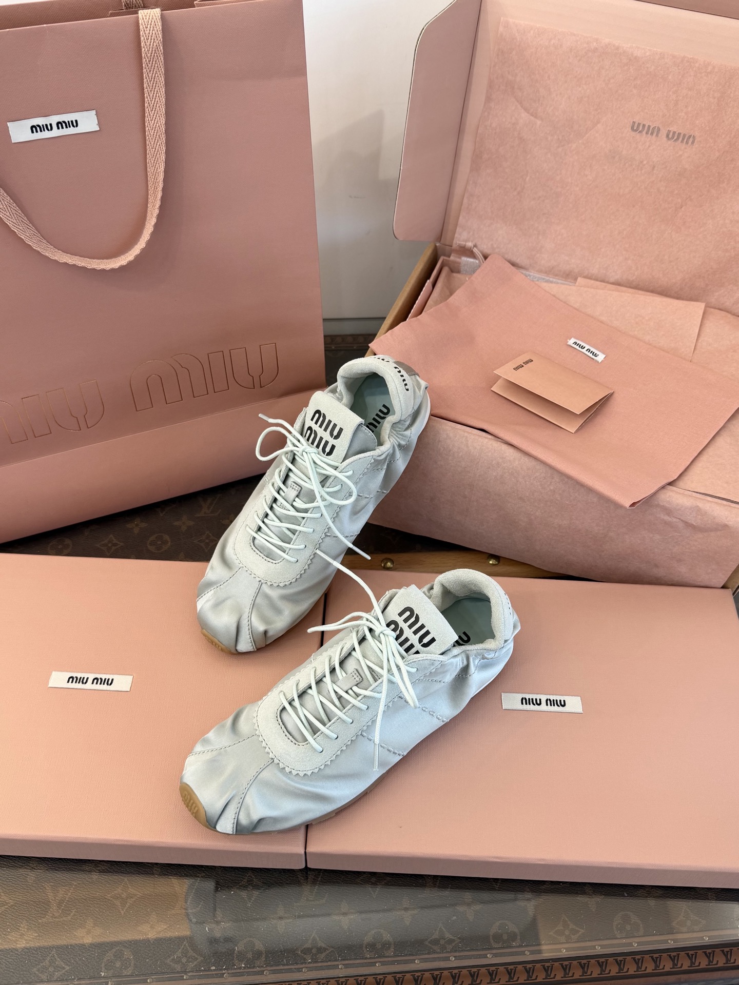 這款鞋子是AAAAA 1:1 質量(非常棒). 使用了和原版一模一樣的材料. 商標部分也保持了和繆繆/Miu Miu一樣. 圖片拍攝是實物鞋子拍攝, 您所收到的實物保證和我們圖片一模一樣.