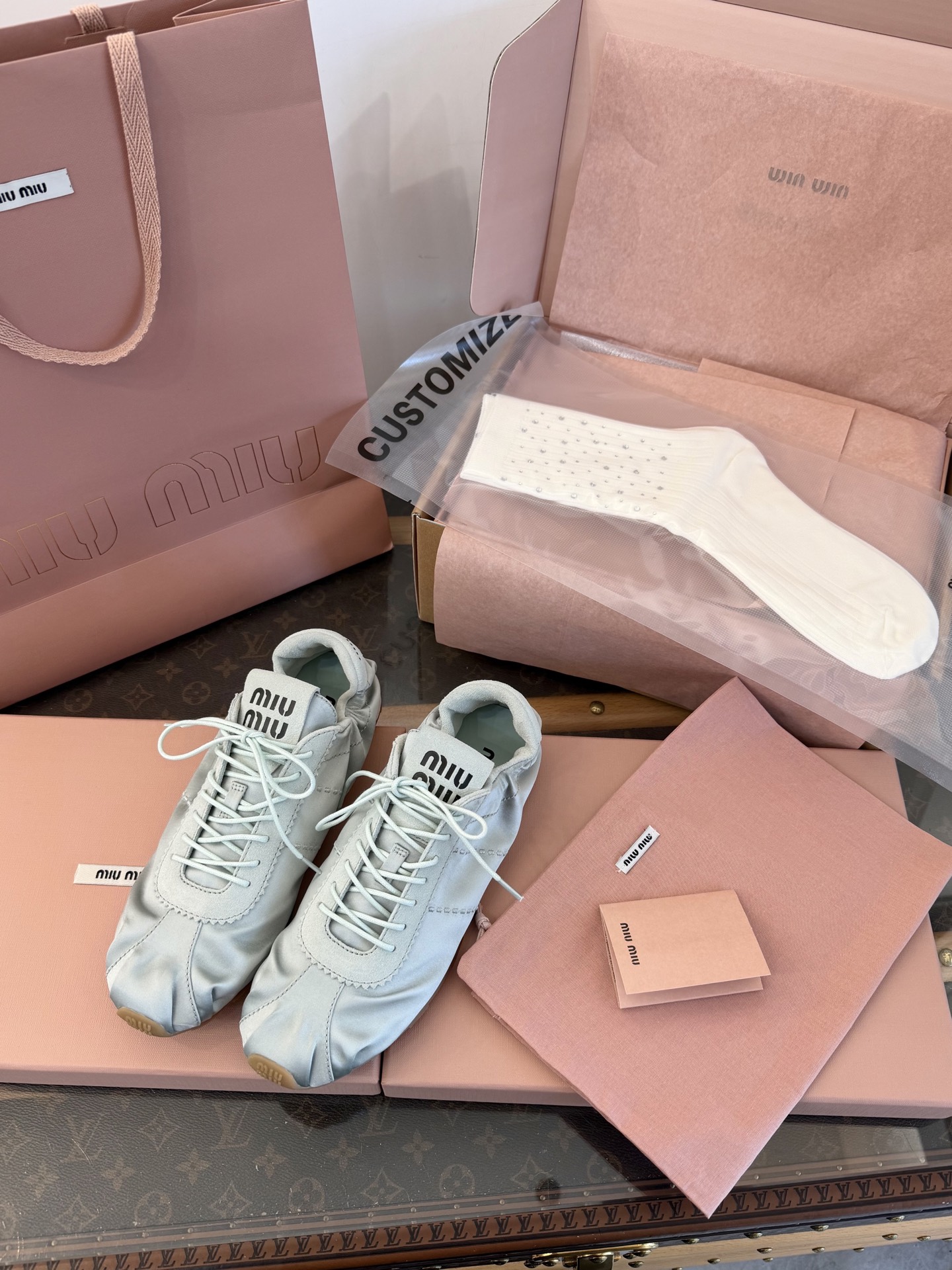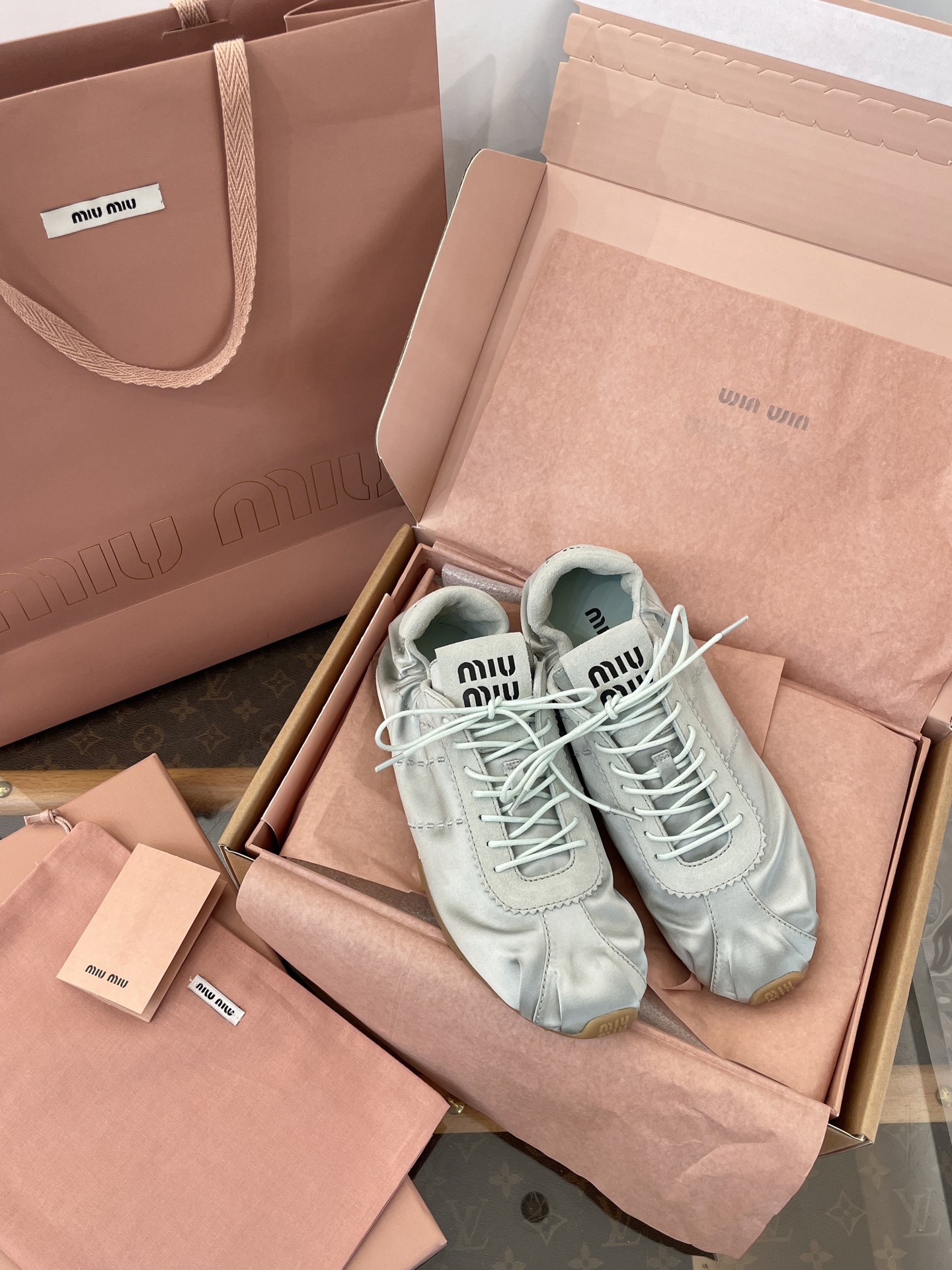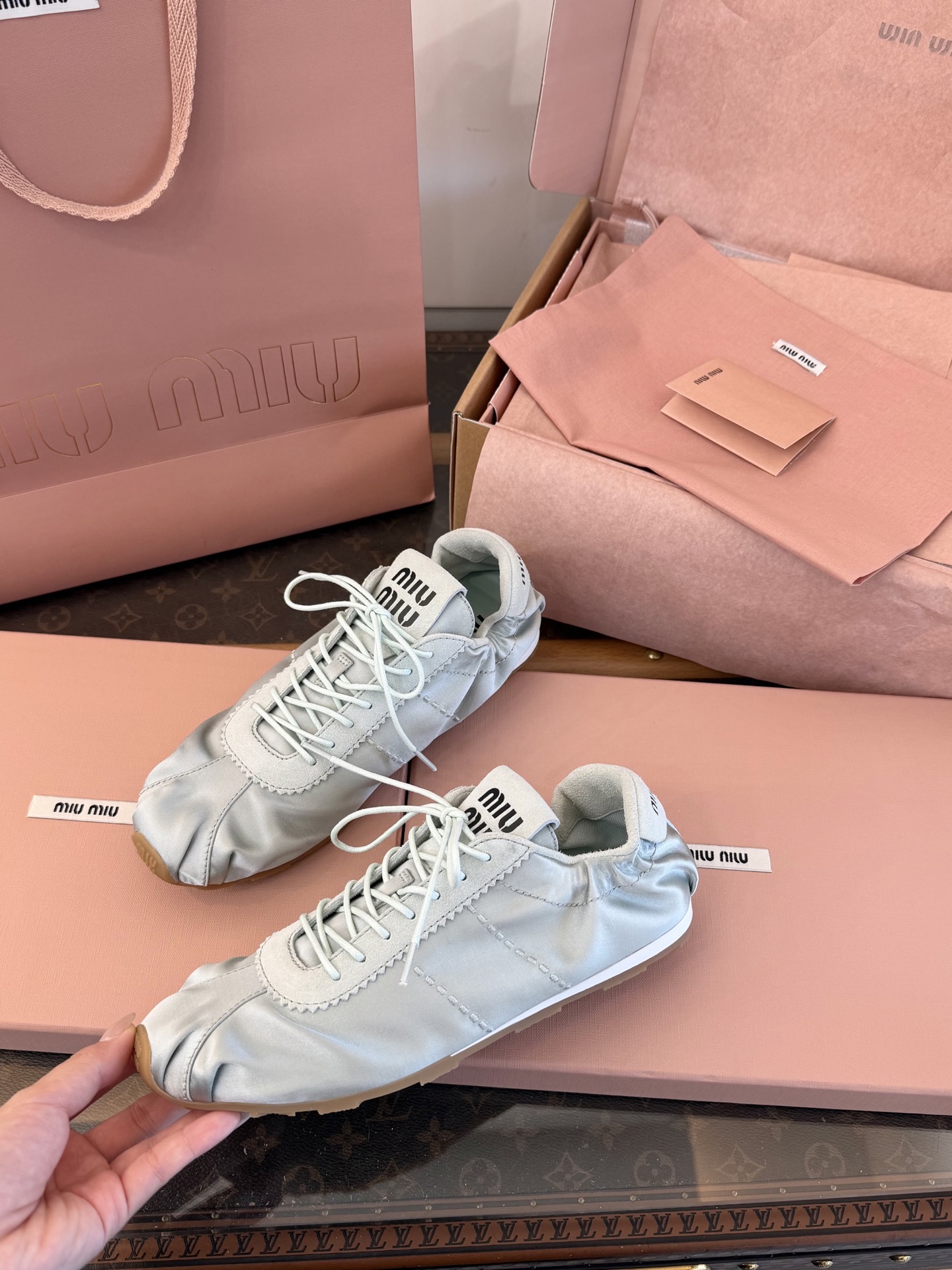 這款鞋子是AAAAA 1:1 質量(非常棒). 使用了和原版一模一樣的材料. 商標部分也保持了和繆繆/Miu Miu一樣. 圖片拍攝是實物鞋子拍攝, 您所收到的實物保證和我們圖片一模一樣.