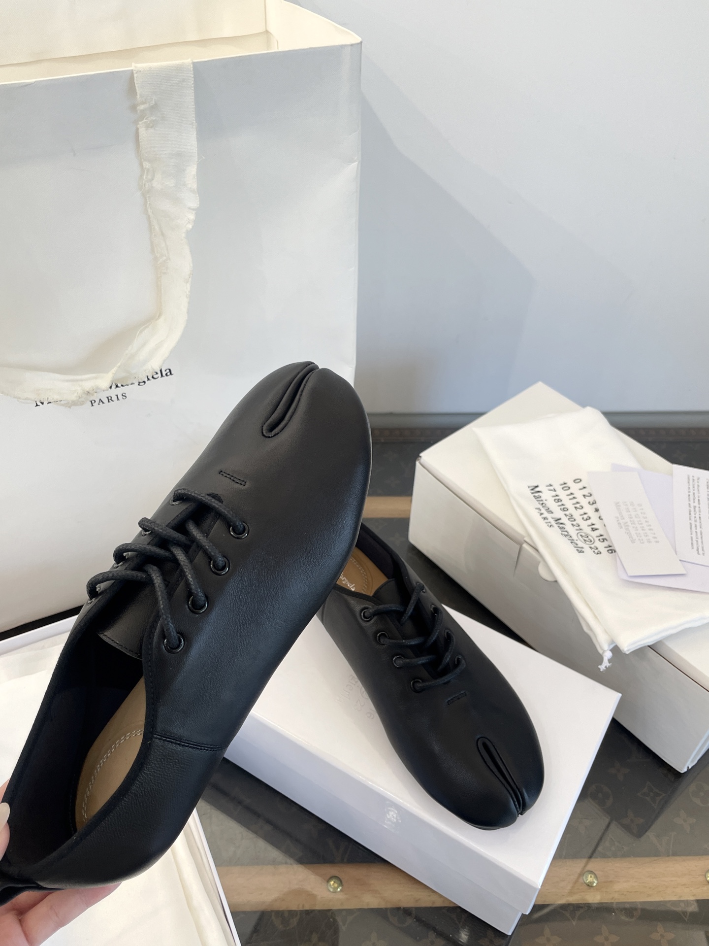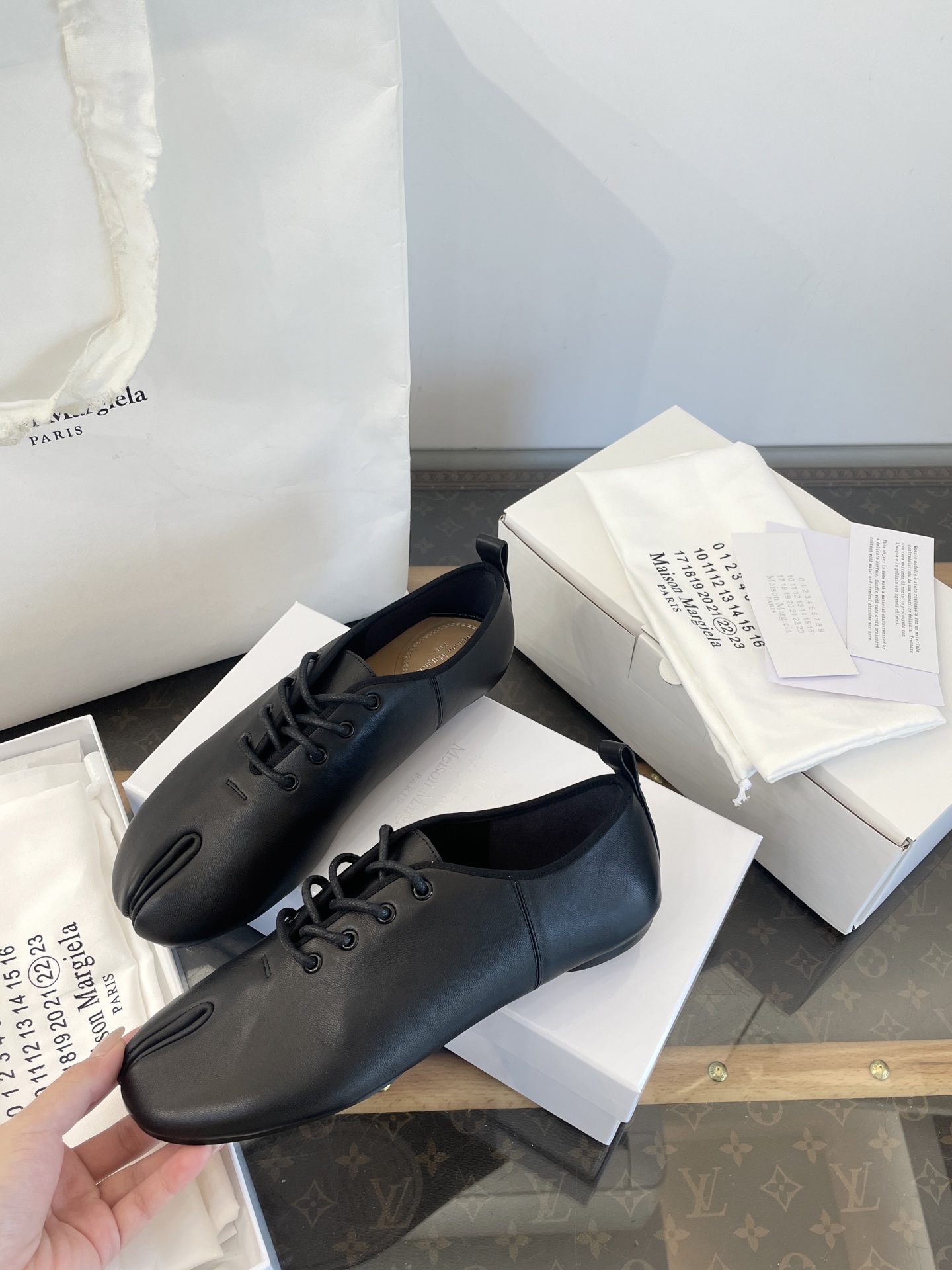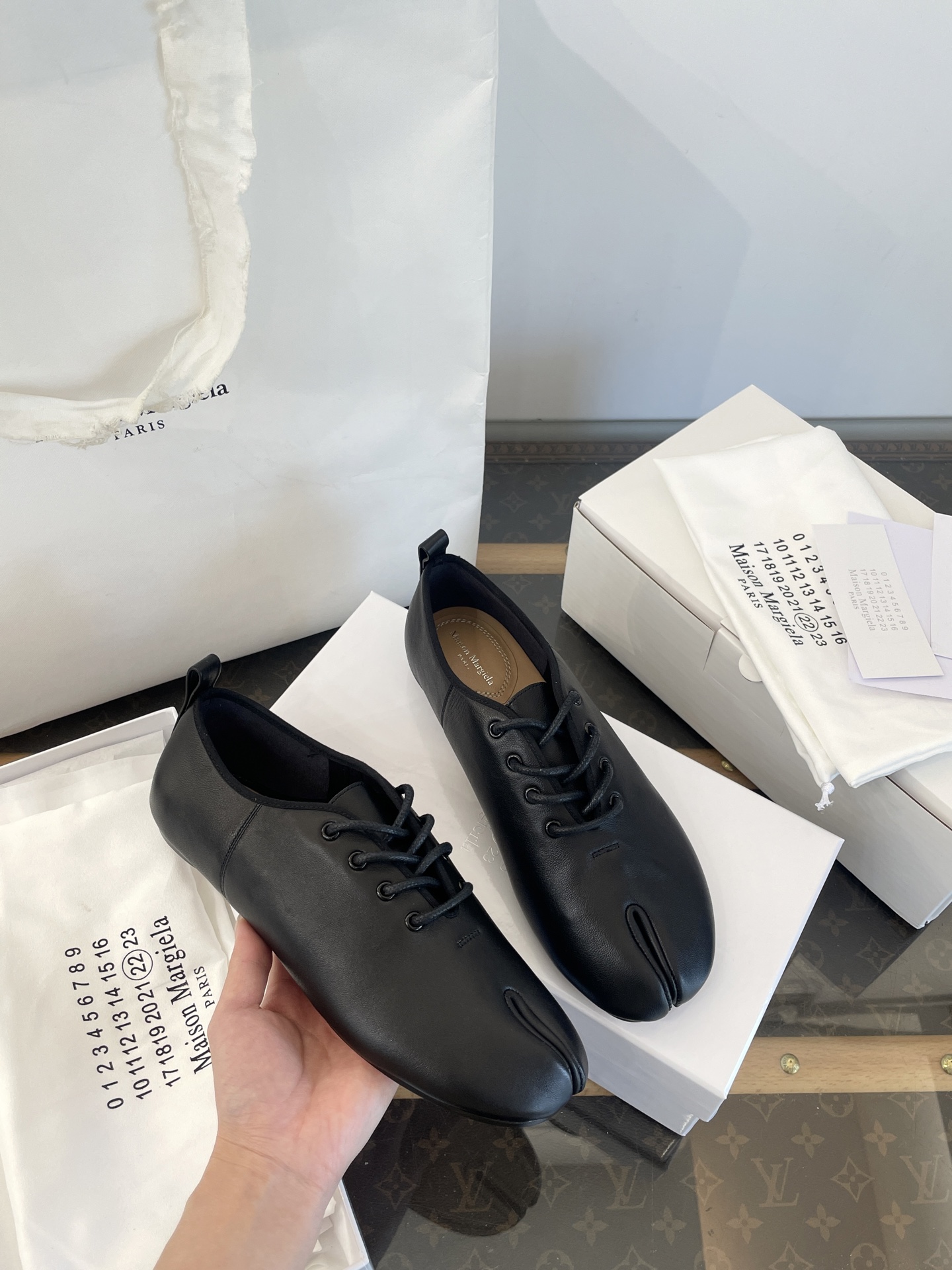這款鞋子是AAAAA 1:1 質量(非常棒). 使用了和原版一模一樣的材料. 商標部分也保持了和Maison Margiela一樣. 圖片拍攝是實物鞋子拍攝, 您所收到的實物保證和我們圖片一模一樣.