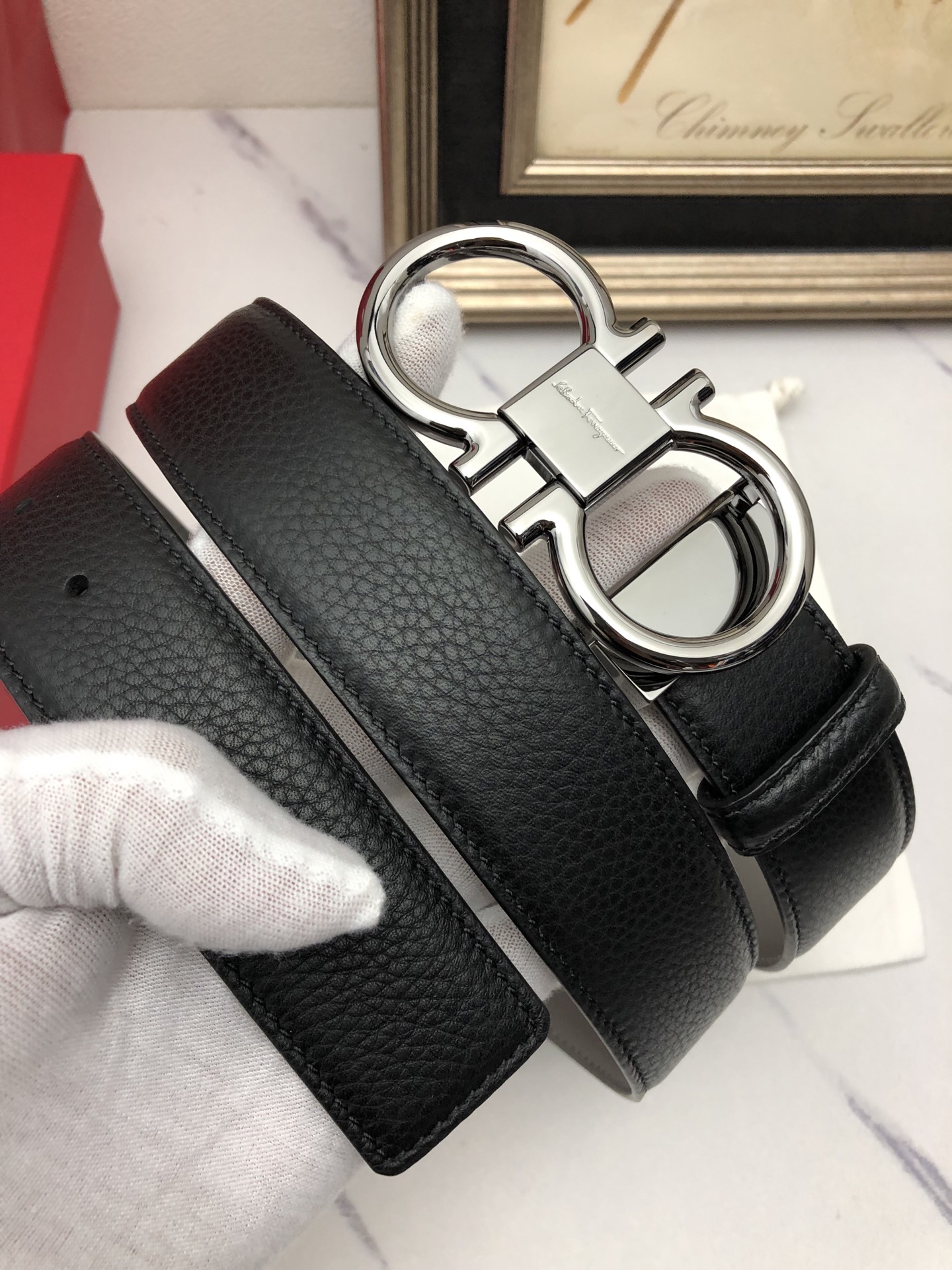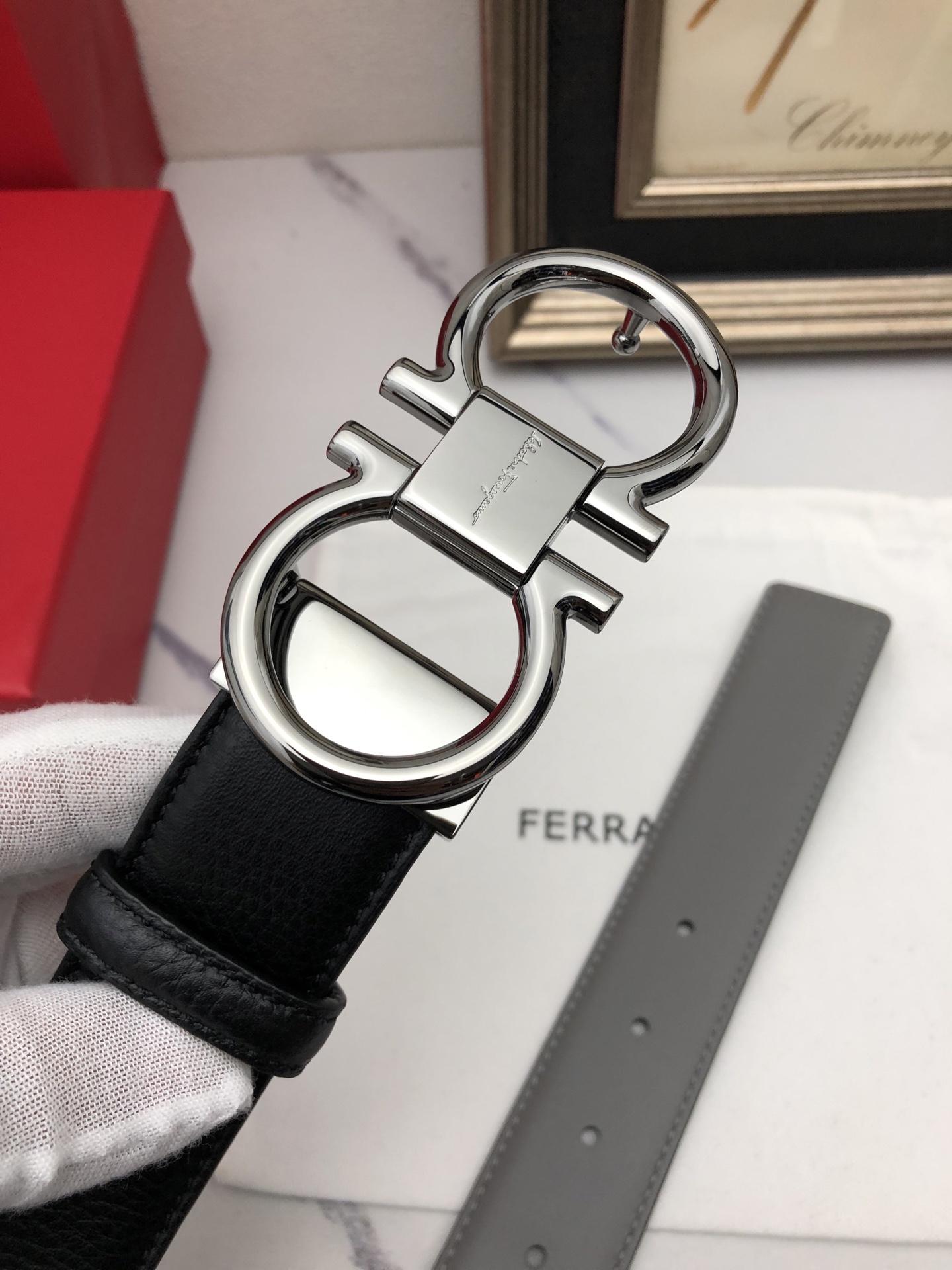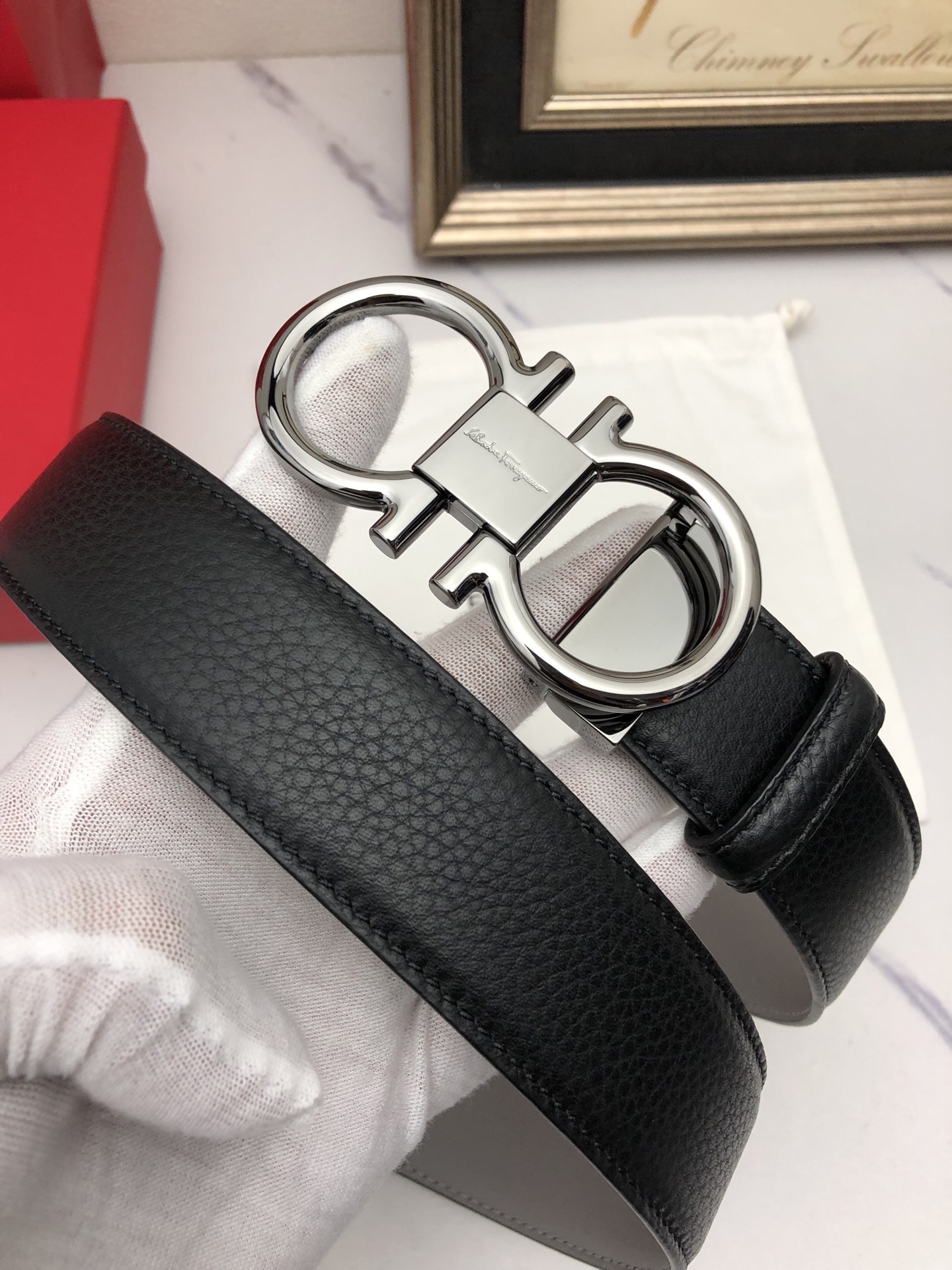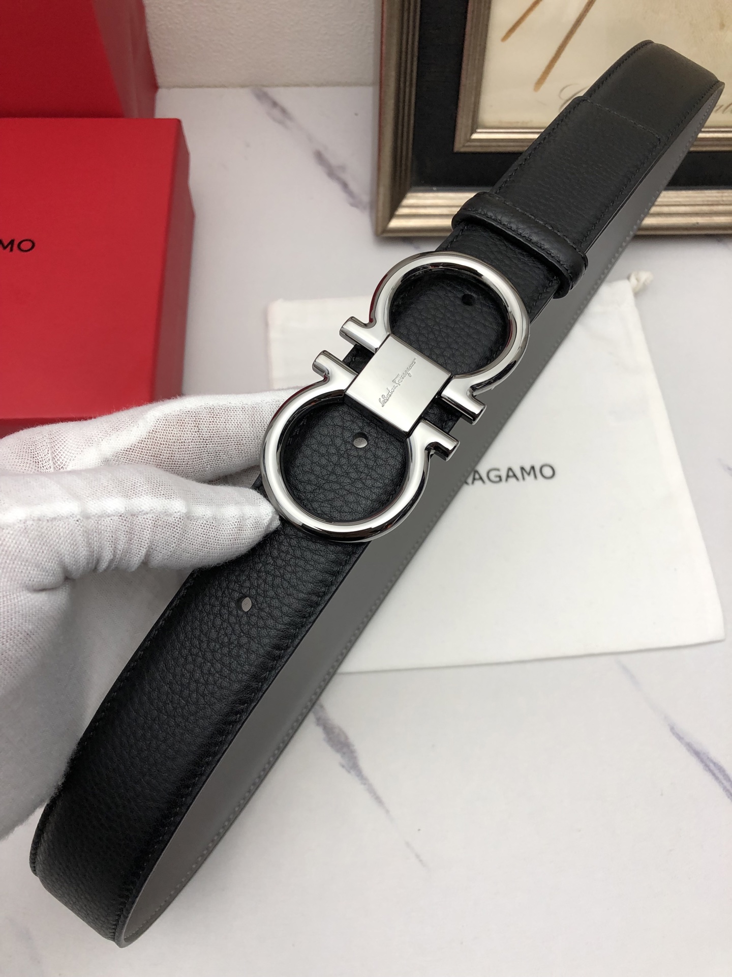 這款皮帶是AAAAA 1:1 質量(非常棒). 使用了和原版一模一樣的材料. 商標部分也保持了和菲拉格慕/Salvatore Ferragamo一樣. 圖片拍攝是實物皮帶拍攝, 您所收到的實物保證和我們圖片一模一樣.